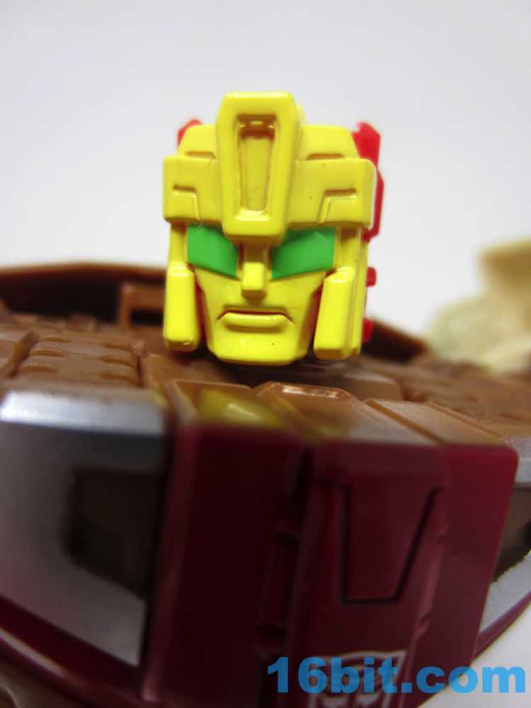 The Repugnus head mode looks like the cartoon design head with colors similar to the toy. You have a yellow face, big green lenses for eyes, and something of a scowl. It looks good, and it fits on the other bodies about as well as any other. It definitely leaves you wanting a full body to go with it.