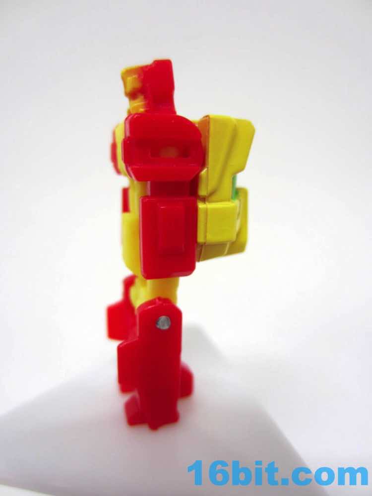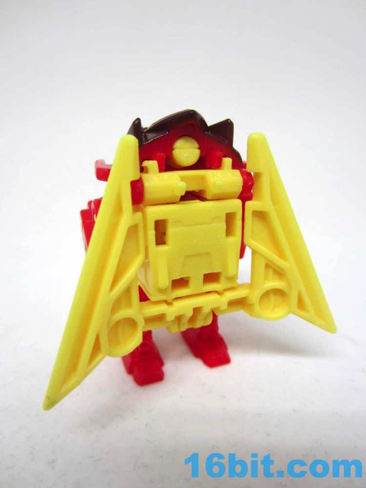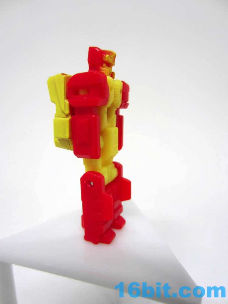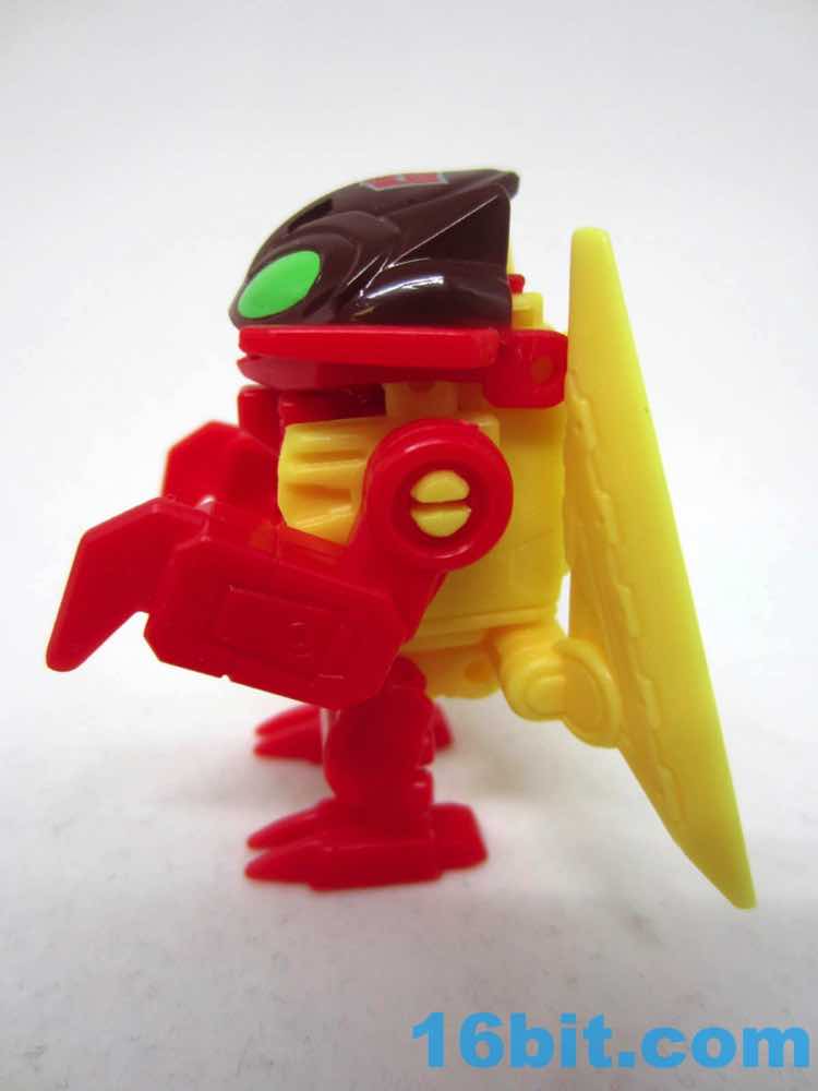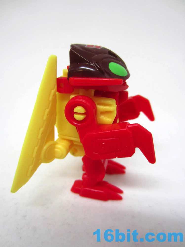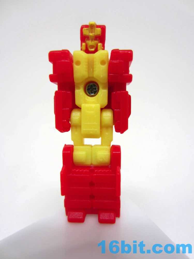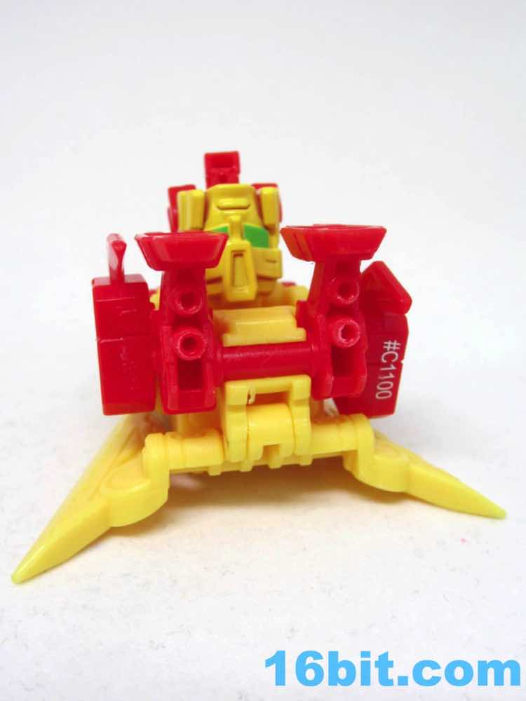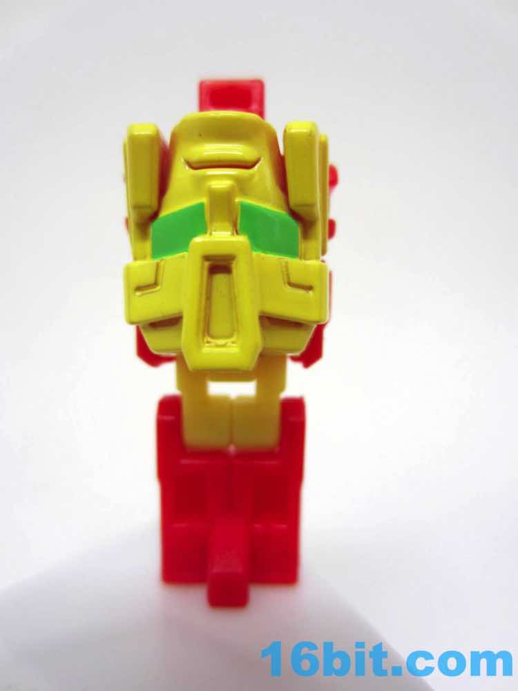This 1.5-inch robot has paint on his face, which is something you don't see much as this line goes on. The yellow face on the red body is going to make you think of 1980s McDonald's Happy Meal toys. Articulation is the same as the rest, with shoulders and knees and hips and a neck. The paint adds a little to the figure, but it's also a little rough. With those smaller details and this low price point, it's pretty good. It's not sculpted to resemble anything immediately obvious, but maybe the tiny robot is a tribute to something that will reveal itself in a subsequent redeco.