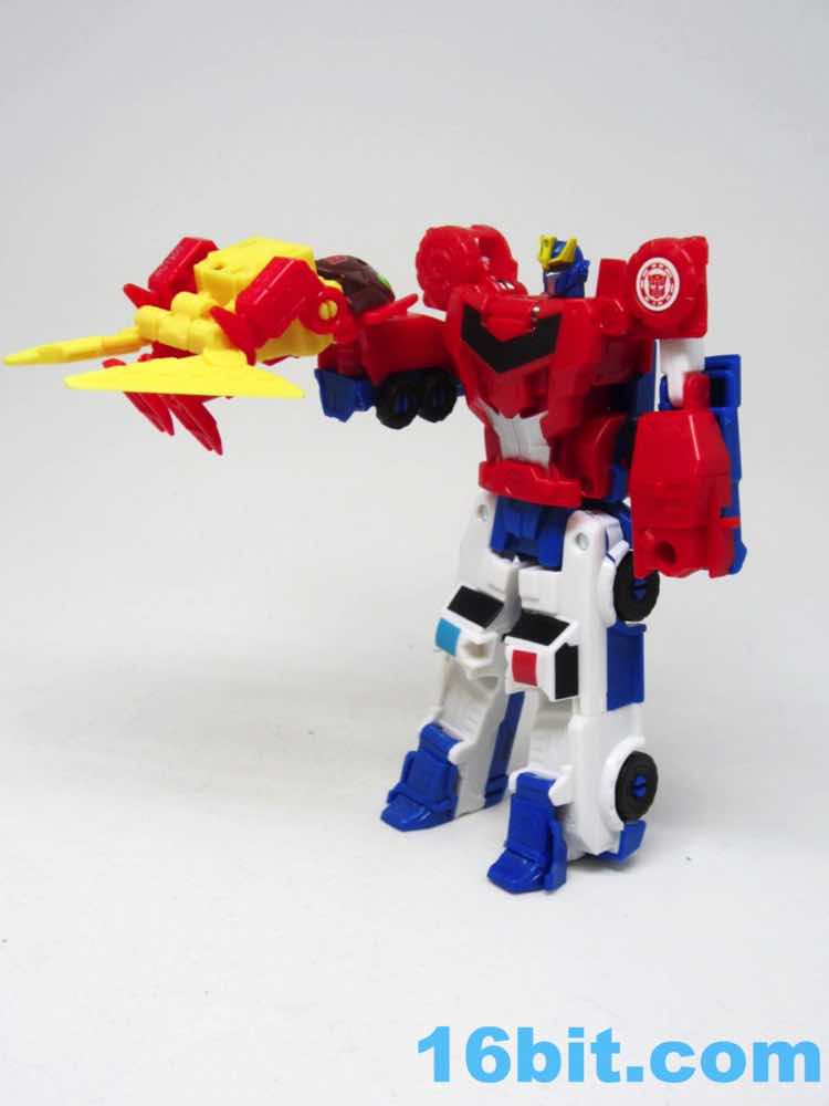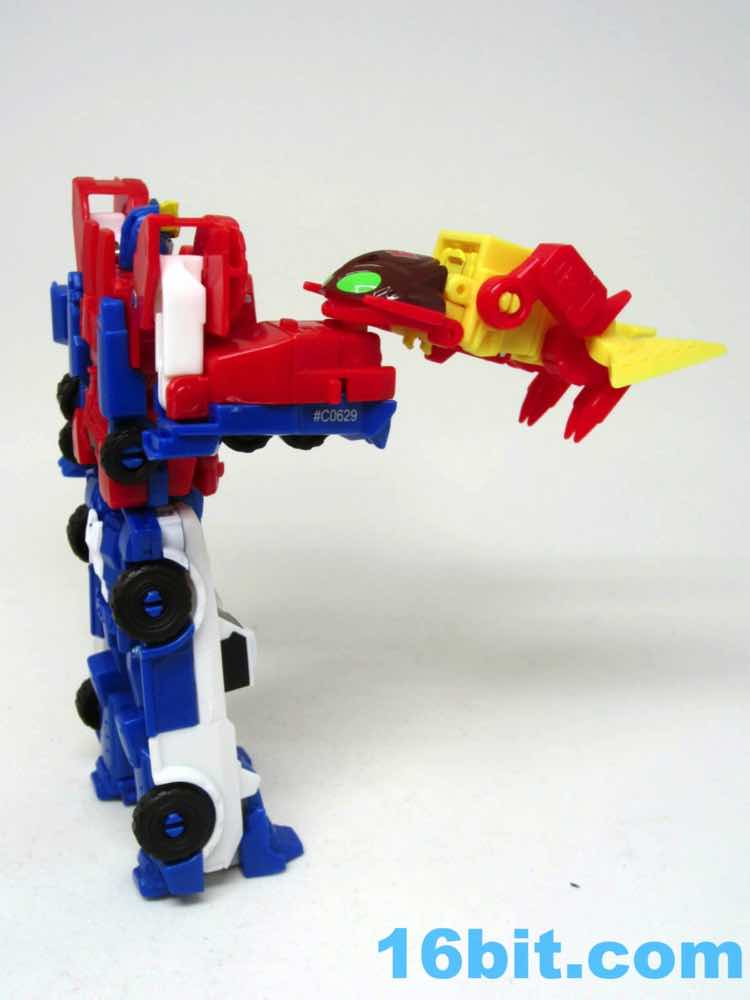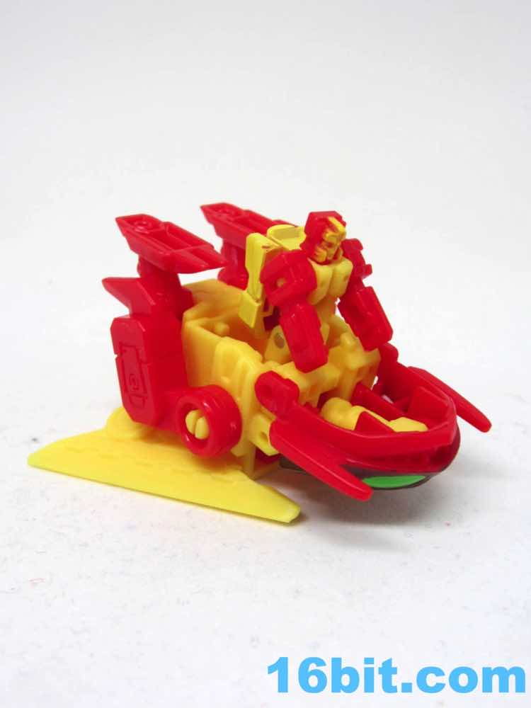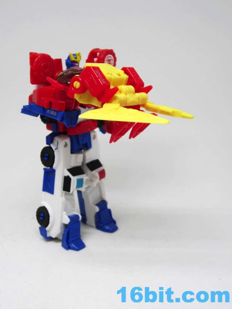 I'm not crazy about the jet mode - it's functional, sure, but it's one of those "this is a get because we say it is" modes. Other figures in this line have better dual vehicle modes, and in this case I can't help but think that giving the figure five modes actually hurt it a bit. I'm glad there are things to do with the toy, but without the instructions it doesn't seem like you would find the mode on its own. The figure has no problems piloting the tiny vehicle, were you so inclined..