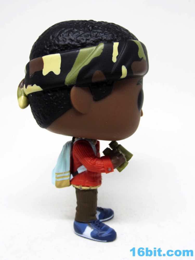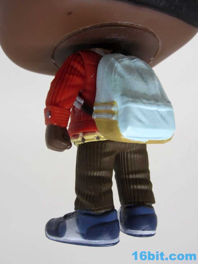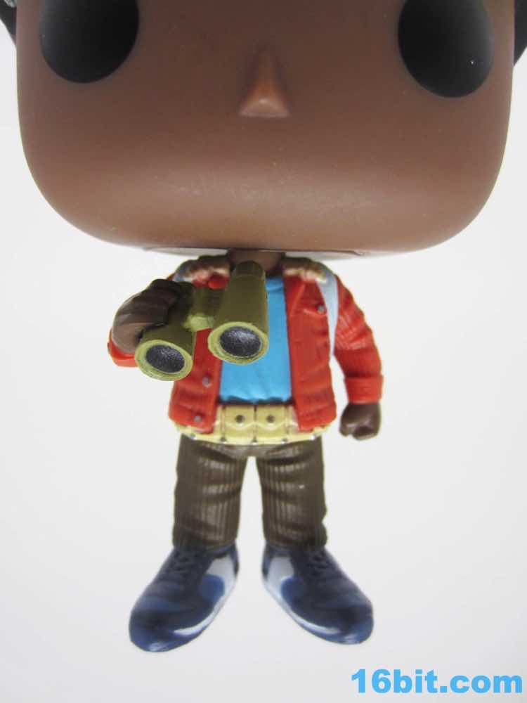 I don't expect these guys to have any arm articulation, although I had to check Lucas just to make sure. His right arm holds the binoculars in a way that looks like it just maybe just might move. It doesn't. Both arms seem to be sculpted as separate pieces, glued in place for whatever reason. I love that the binoculars have black lenses, as this sets them apart from the green casing. What really surprised me, though, was the rest of the outfit. The jacket has an awesome texture, and even has the collar painted and sculpted with the wool-like texture. You can barely even see it, but Funko made sure to put it there. His belt looks a bit like Batman's, with multiple pouches and painted snaps on each. His brown pants are also sculpted like corduroy, and his shoes seem to have multiple shades of blue and a surprising amount of sculpted detail. These look like someone modeled them after real sneakers, rather than more or less fudging it. (I'm no sneaker expert, so you'd have to chime in here.) Short of sculpting treads underneath, there's not a heck of a lot Funko could probably do to enhance this figure and keep it true to the Pop! Vinyl Figure aesthetic. You've got a jointed neck, and anything else would probably be considered against the natural order of things.