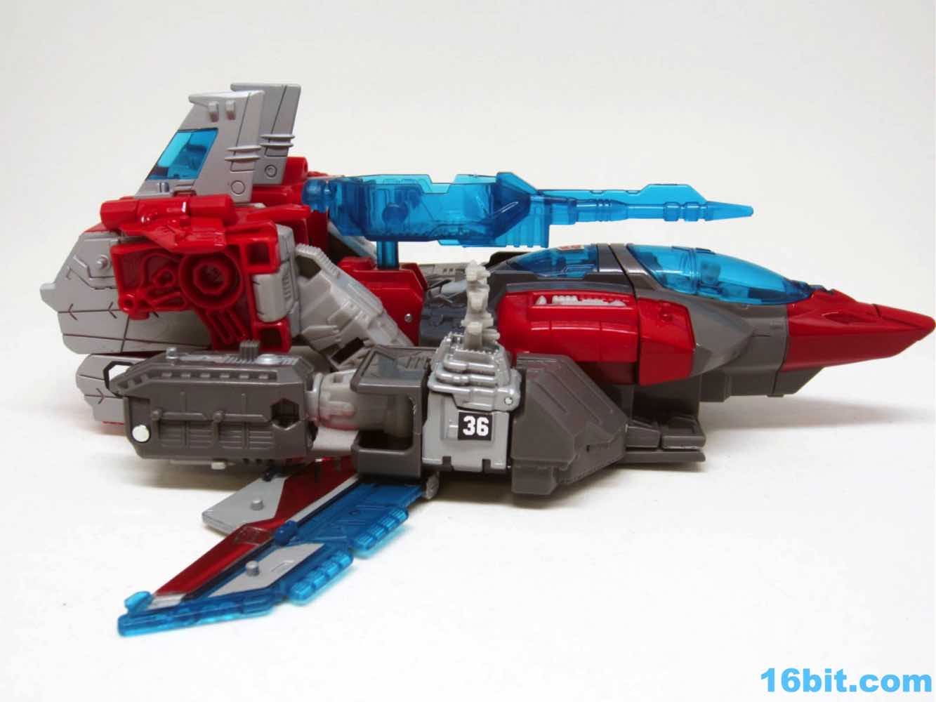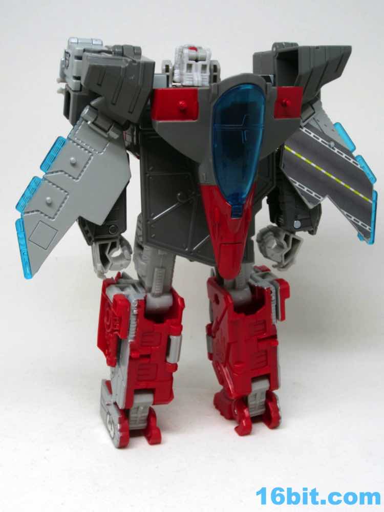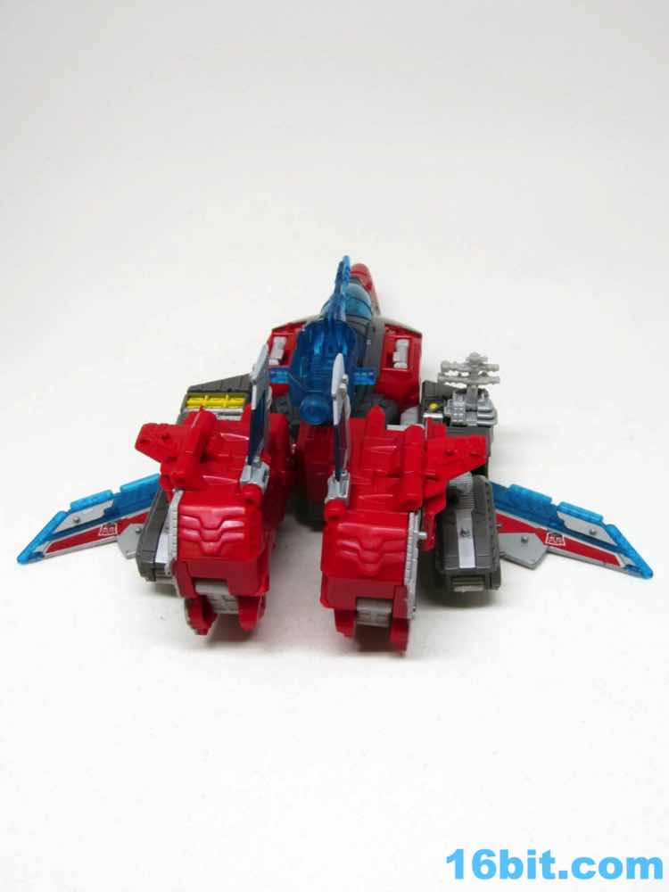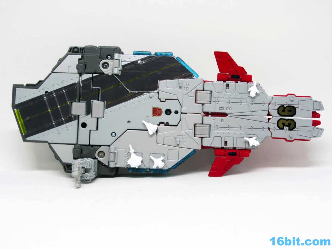Transformation isn't as wonky as Alpha Trion, but that's because it's more intuitive - mostly. You know what an aircraft carrier looks like, and while you know what a jet looks like I don't know if the engineers really do. Everything folds away nicely, mostly, although some pegs and slots don't play as nice as one might like. With reference photos, you can probably figure it out without the manual.