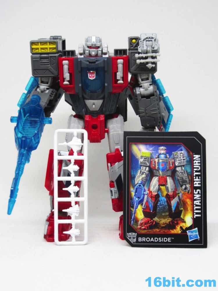 It's hard to believe that a new Broadside exists. The whole "classics" line started about 12 years ago with 4 deluxe toys and 2 voyager toys, and this would barely be expanded before Hasbro put them to bed in 2007. Many of those toys have since been remade and replaced by better figures, but a stunning amount of the releases represent fairly obscure characters that probably won't strike a chord with the nostalgia class. Hasbro and TakaraT-Tomy's uncanny ability to reuse parts to squeeze multiple characters out of one design no doubt helps us get less popular characters like Broadside, as so far the mold has been used for Leo Prime in Japan and Alpha Trion in the USA - with tweaks. A redeco with a new head will be released as Tidal Wave fairly soon. I'd say two of the modes are pretty good, and one is so hilariously mistransformed in the official photography that it casts an argument against itself.