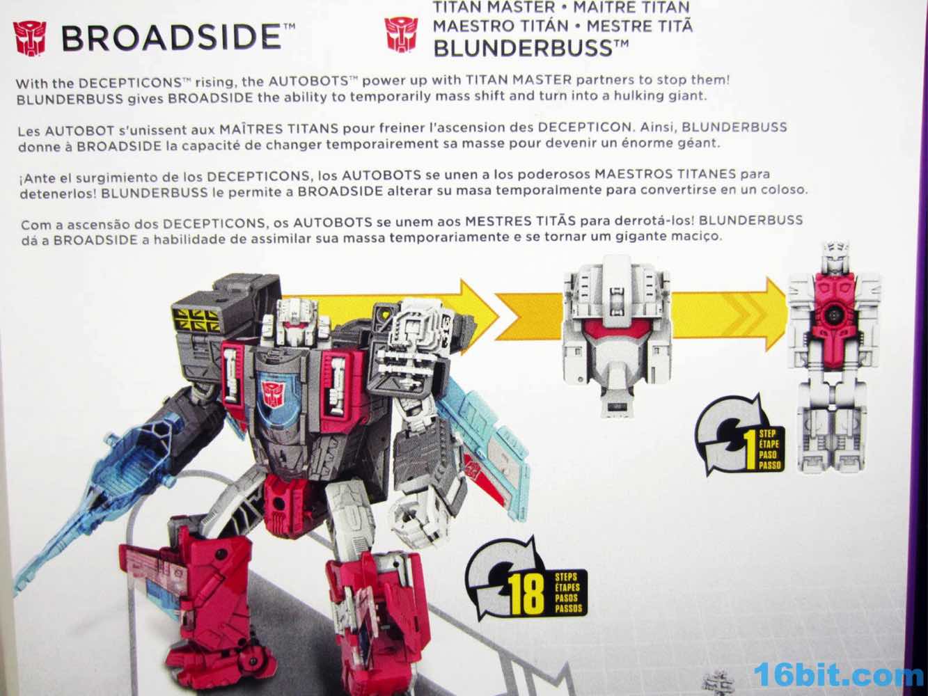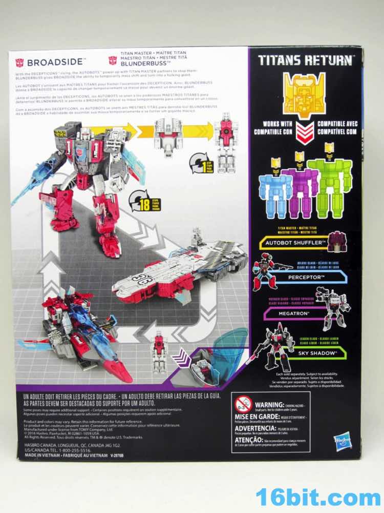 Item No.: Asst. B7769 No. C0277 Manufacturer:Hasbro Includes:Blunderbuss, Superion micro-jets, pointy blaster, card Action Feature:Transforms from head to robot, also robot to aircraft carrier to jet Retail:$24.99 Availability: March 2017 Other: 33% Less Brick than G1