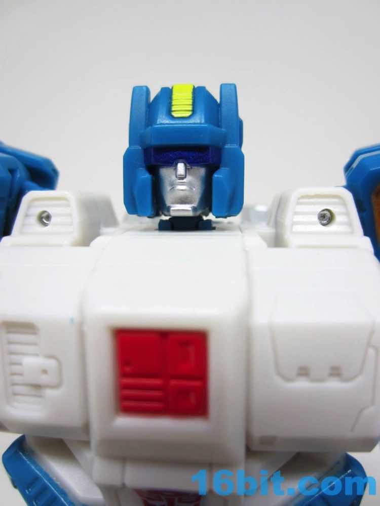 The head mode is fantastic - it looks like the original toy, which looks like the comic, which doesn't look like the cartoon because Topspin was left out of that whole fame and fortune racket. The silver face has blue glasses, with a yellow stripe for contrast. Could you ask for more? Maybe. You don't deserve it, though, so just enjoy this surplus-to-requirements update.