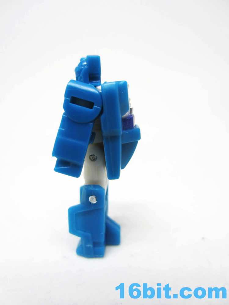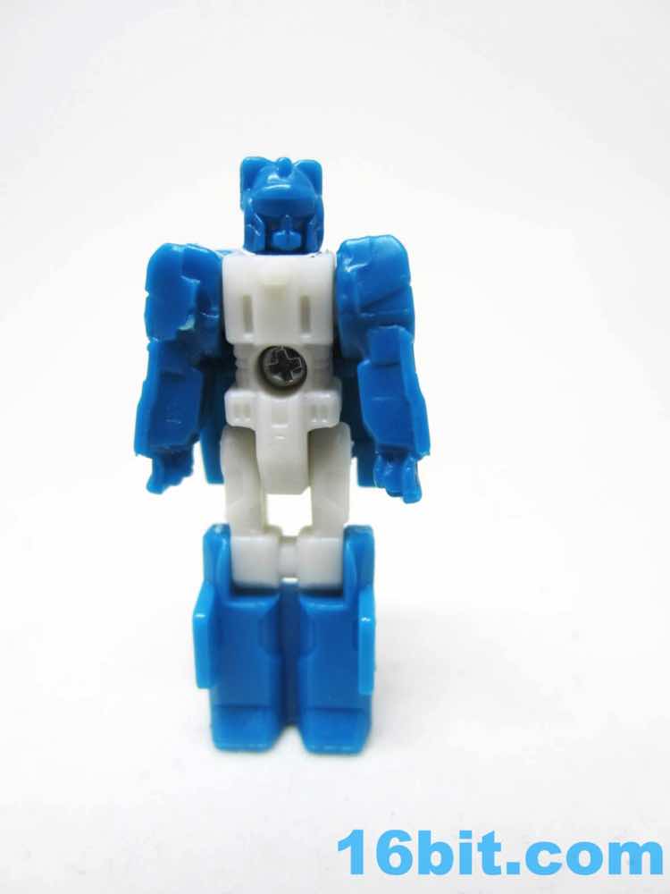 This 1.5-inch Freezeout (new to Generations, previously a Kreo creature) robot serves as Topspin's head and pilot, and it's just the tops. Even though the tiny robot has no paint on it, the plastic colors show Hasbro seems to be trying harder to make the head look like a head - rather than a robot with a faceplate. The blue helmet of Topspin matches the blue on Topspin's arms and lower legs, grating a cohesive helmet look. Since Freezeout doesn't have a previous toy, it's not like anyone is going to scream about inauthenticity.