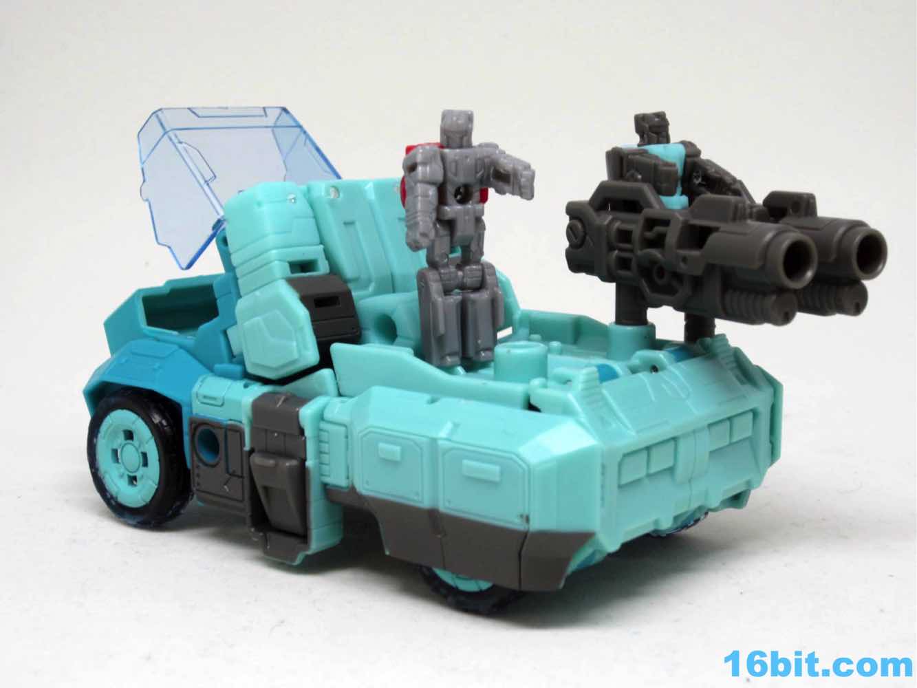 Deco is pretty great - the Autobot symbol is nice, I dig the painted wheels, but the teal vs. teal seems weird. I'm just not feeling it as a cohesive unit - it's weird, but's chunky, and it's made of tons of cool elements. This is feeling rambly.