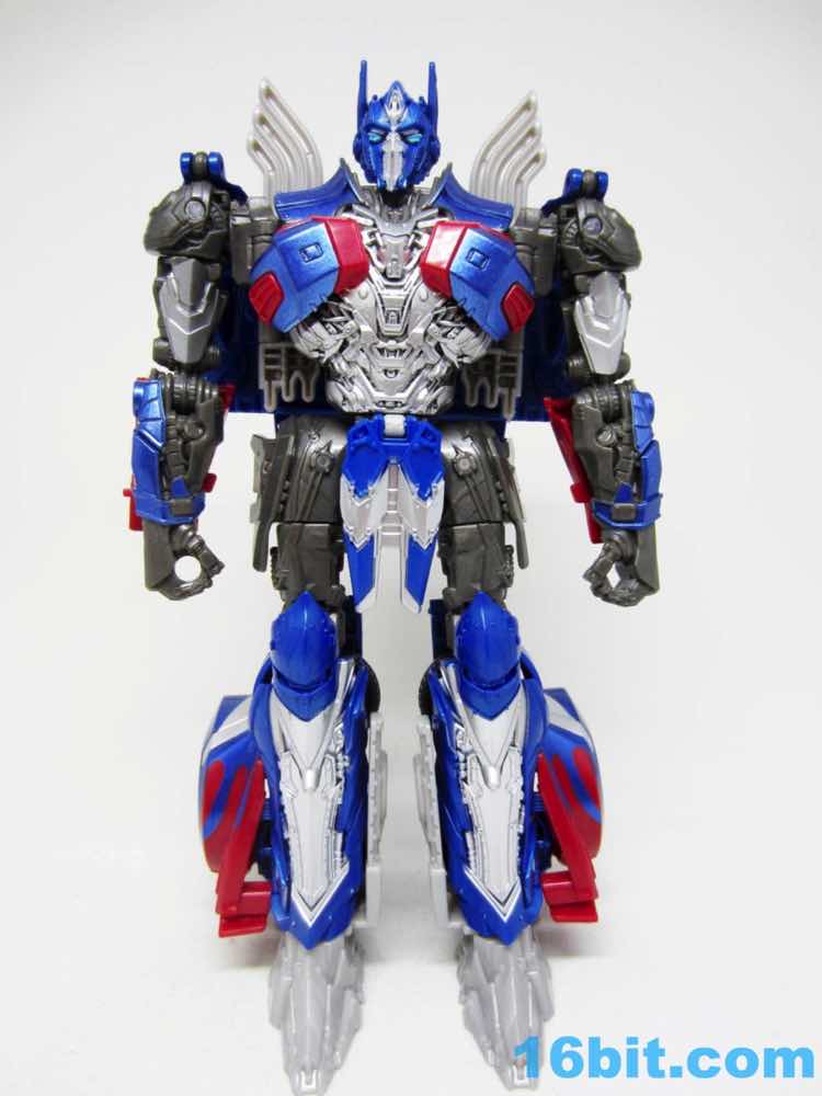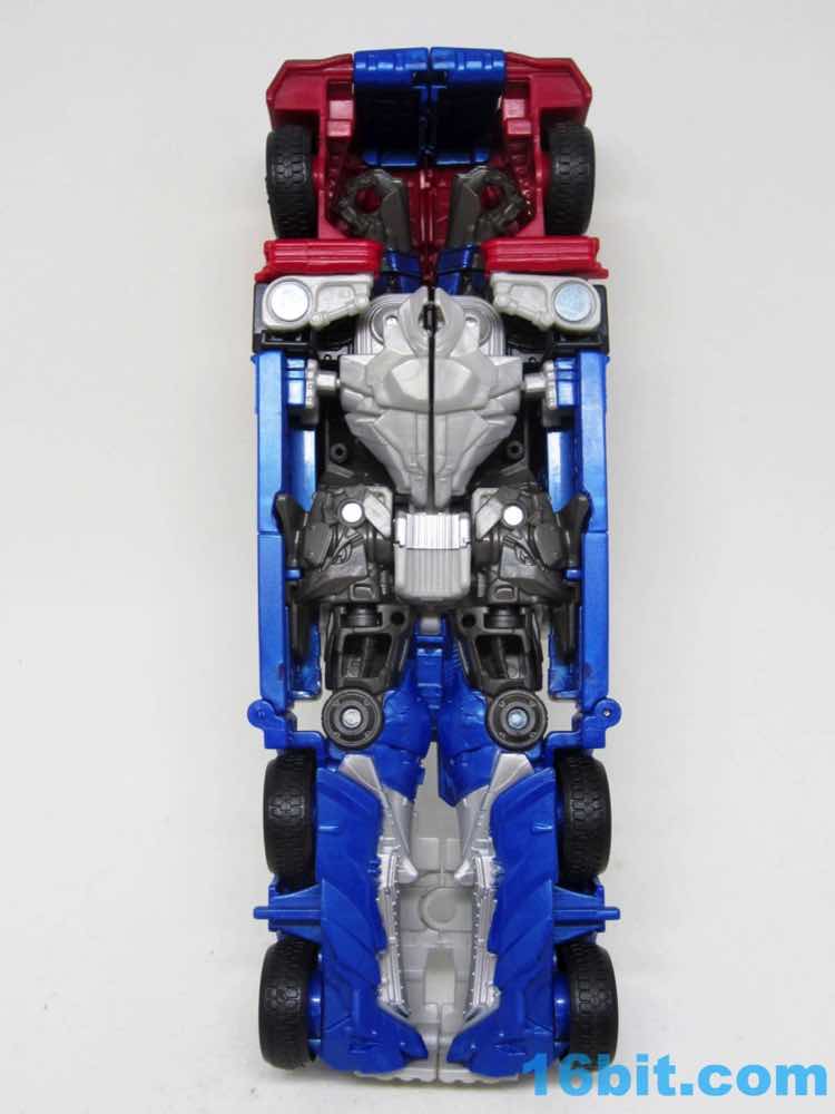 Somehow I always wind up buying a new Optimus Prime for each new movie. I've never actually seen one of the entire movies, but somehow I get sent one, or get a cheap one, or have a chance to get one early, or just bought one. It varies. When I first saw this new Premier Edition one - think "Generations," as "Premier Edition" is the new "Black Series" for collector Transformers right now - I didn't much care for the deco sheet or early test shots, but it grew on me. I picked up a wave 1 case from work, which came with a Grimlock, which I kinda really don't think I need. Optimus is an all-new toy that threatens a 30-step transformation. While some steps are pretty brief, it's not hyperbolic. Hasbro's push-and-pull with the idea of simplified toys has seemingly completely abandoned the premise of this being for the tiny tots, as the transformation is incredibly involved and you're probably going to want the instructions. I don't doubt the age rating of 8 and up is accurate, but this is one complex little robot in disguise.