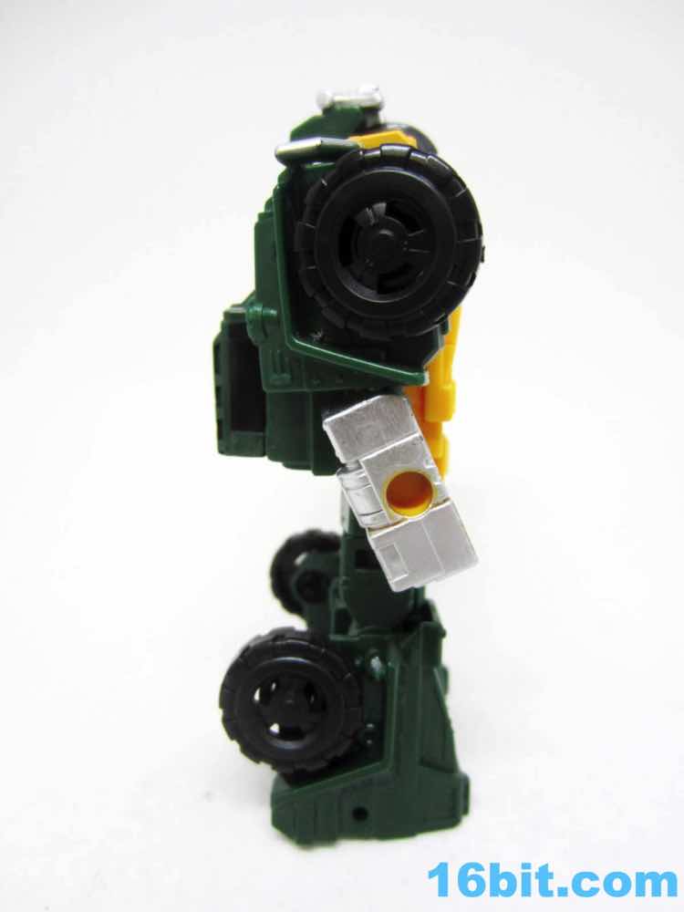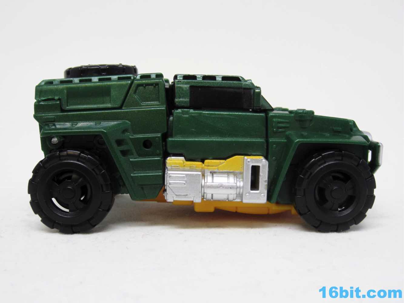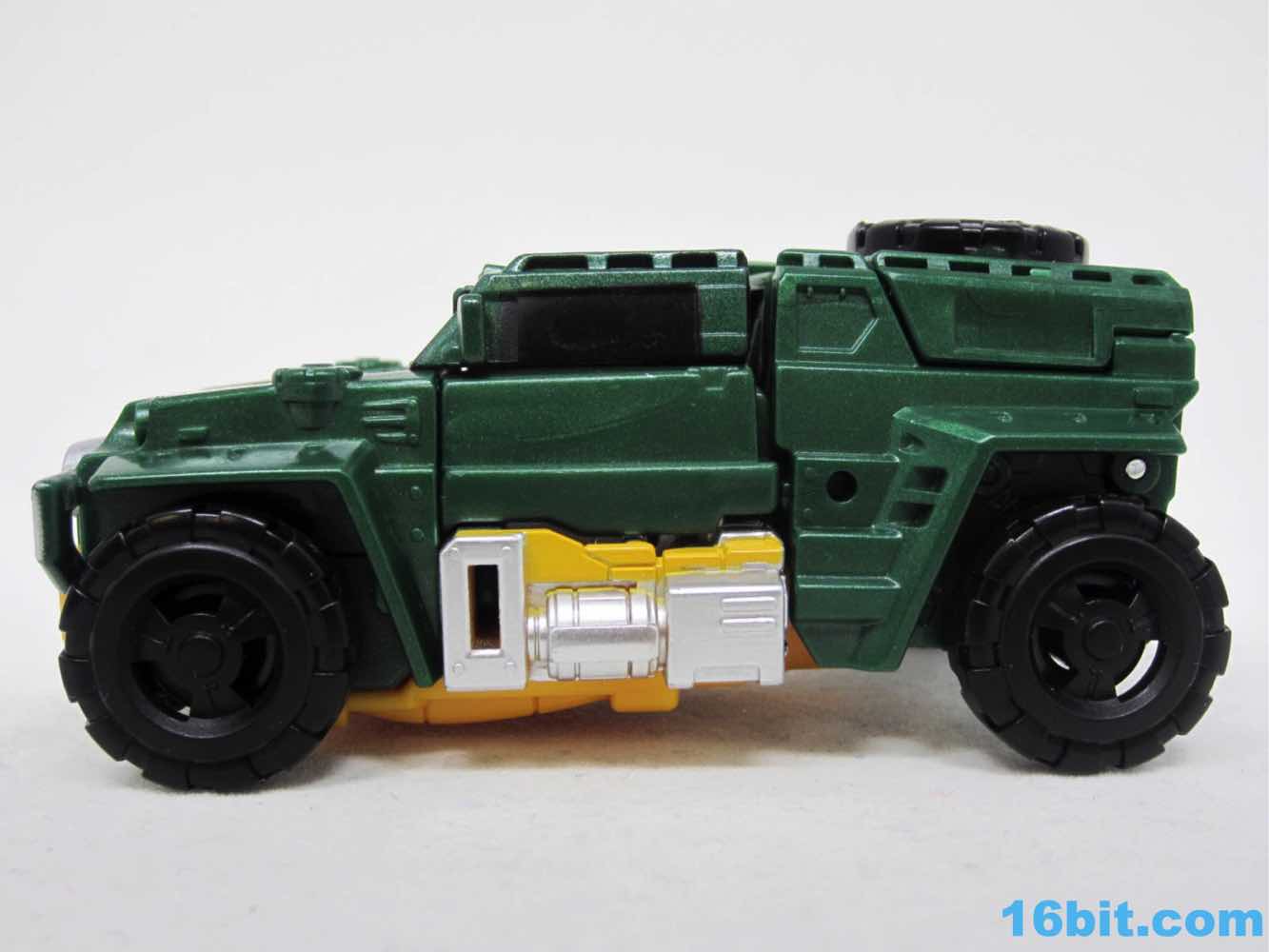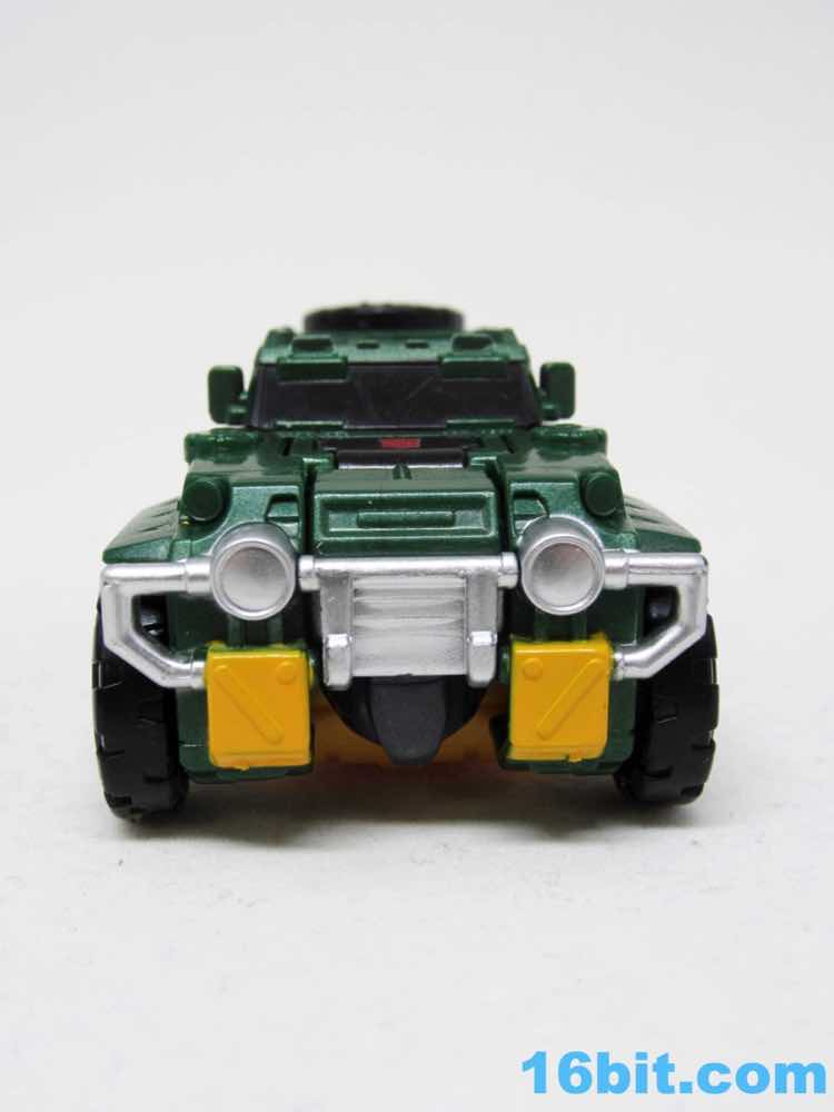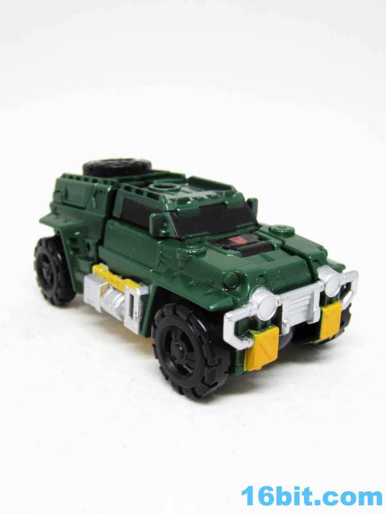 The vehicle mode is very good, but it's a departure from previous takes. The colors are right and the basic elements are all there, but it's not quite as boxy or tall as the original toy. The weird spare tire panel fits snuggly over the back of the off-road vehicle, and if I didn't know better I'd say this toy could potentially be a stealth pre-sculpt for a new Swerve, Outback, or someone else - there's enough of a formed, different vehicle under the panel. The wheels spin adequately, unpainted and as good as wheels can get on a toy of this size these days. A couple of boxes are painted, as are some silver bits and most of the windows. I'm willing to bet someone ran the abacus and decided against painting the window parts that wound up on the feet.