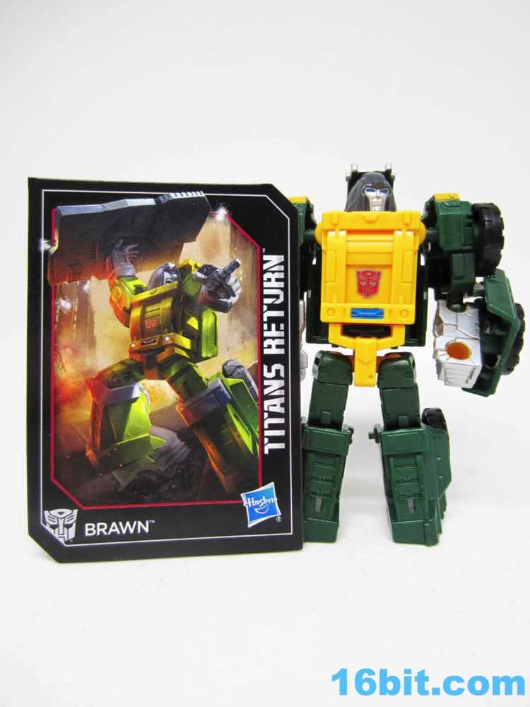 Since we got a tiny Titan Masters toy last year, it seemed unlikely that Titans ReturnBrawn would arrive so soon - if at all. We had a much smaller Legends-class toy (Legion-class by modern standards) almost 10 years ago, back when that seemed like it would be the standard "minibot" scale. Since 2014, Hasbro shifted the likes of Swerve, Bumblebee, Warpath, and the rest to this larger 4-inch robot size - and they've done a good job updating most of them. (I'd argue no to Warpath, Huffer, and Pipes.) Brawn is one of the better ones, if not the best one - it's a bigger toy than the G1 original, easier to transform, and basically more fun. Unfortunately it's also a toy with kibble that you can lose, which I see as a nasty flaw on an otherwise perfect toy. But yeah, you need this one.