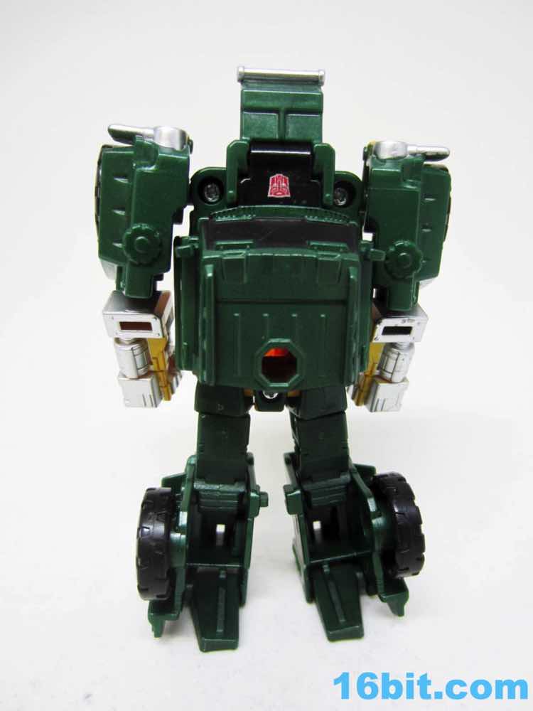 The range of motion is fantastic, as Brawn can easily look like he's punching somebody or put his hands on his hips. As this kind of robot toy goes, it's almost infuriatingly fantastic - it's not like Bumblebee who has slightly awkward arms, or Wheelie where getting the robot chest to hold together can be fiddly. This is just so simple and perfect, you wish they could all be just like him.