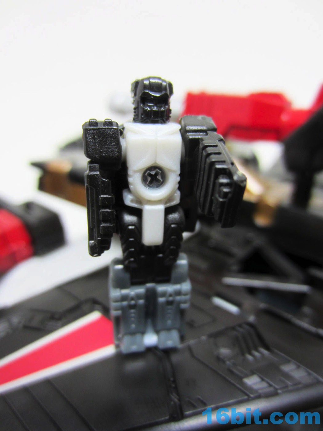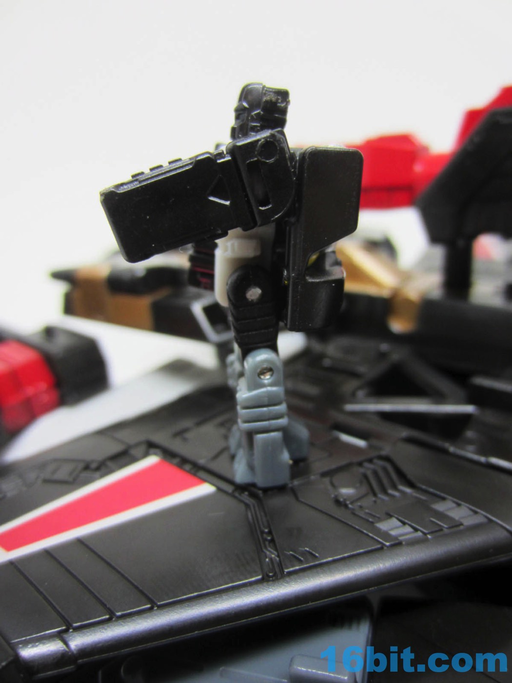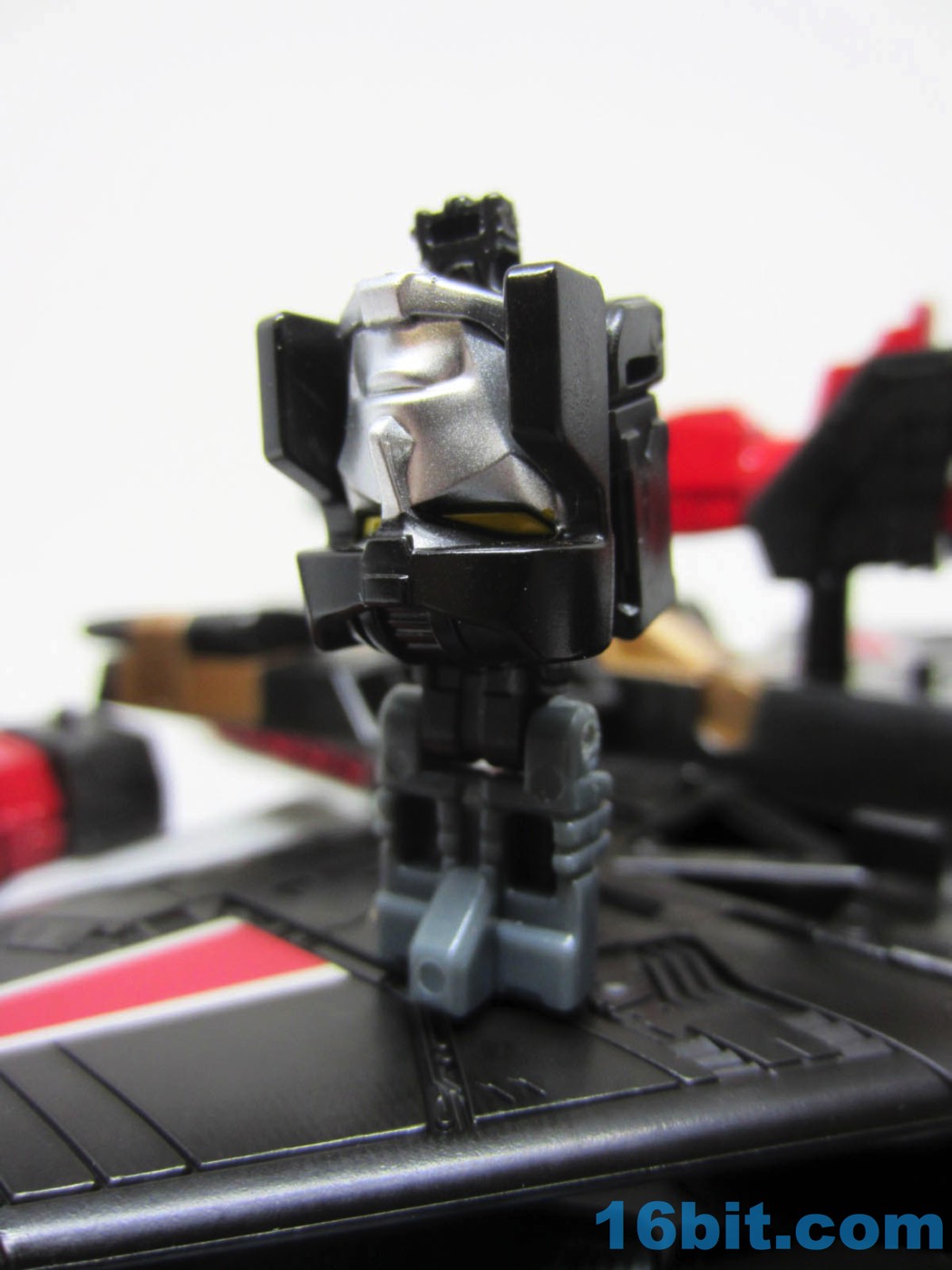 The 1.5-inch robot Titan Master Ominus is black and grey with minimal deco. Actually, none at all outside the face plate on the back. Ominus has 5 points of articulation and can master everything a Titan Master can master. The figure serves as a head for Sky Shadow as well as a driver for the tank or jet modes - it'd be even better if we had two figures so all of them could have a driver. But I digress - it's a fine little gimmick, but if they left it out I really don't think I'd miss it. It's just a nice extra on an already good toy.