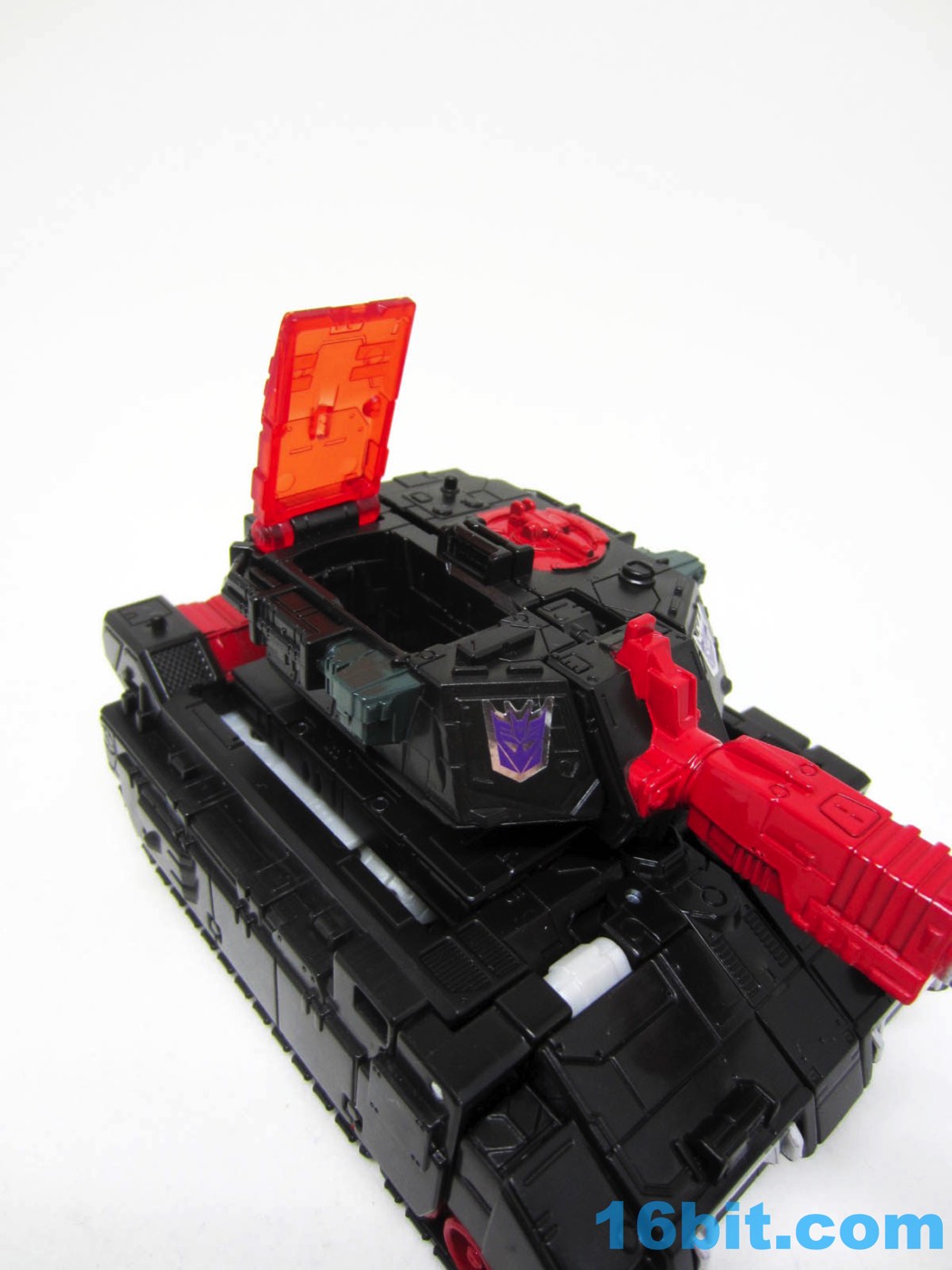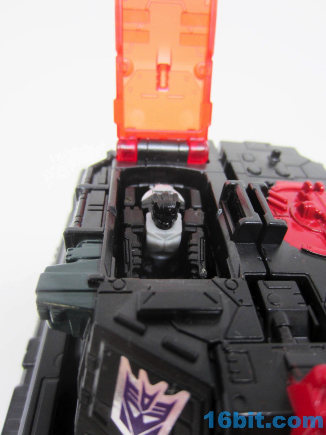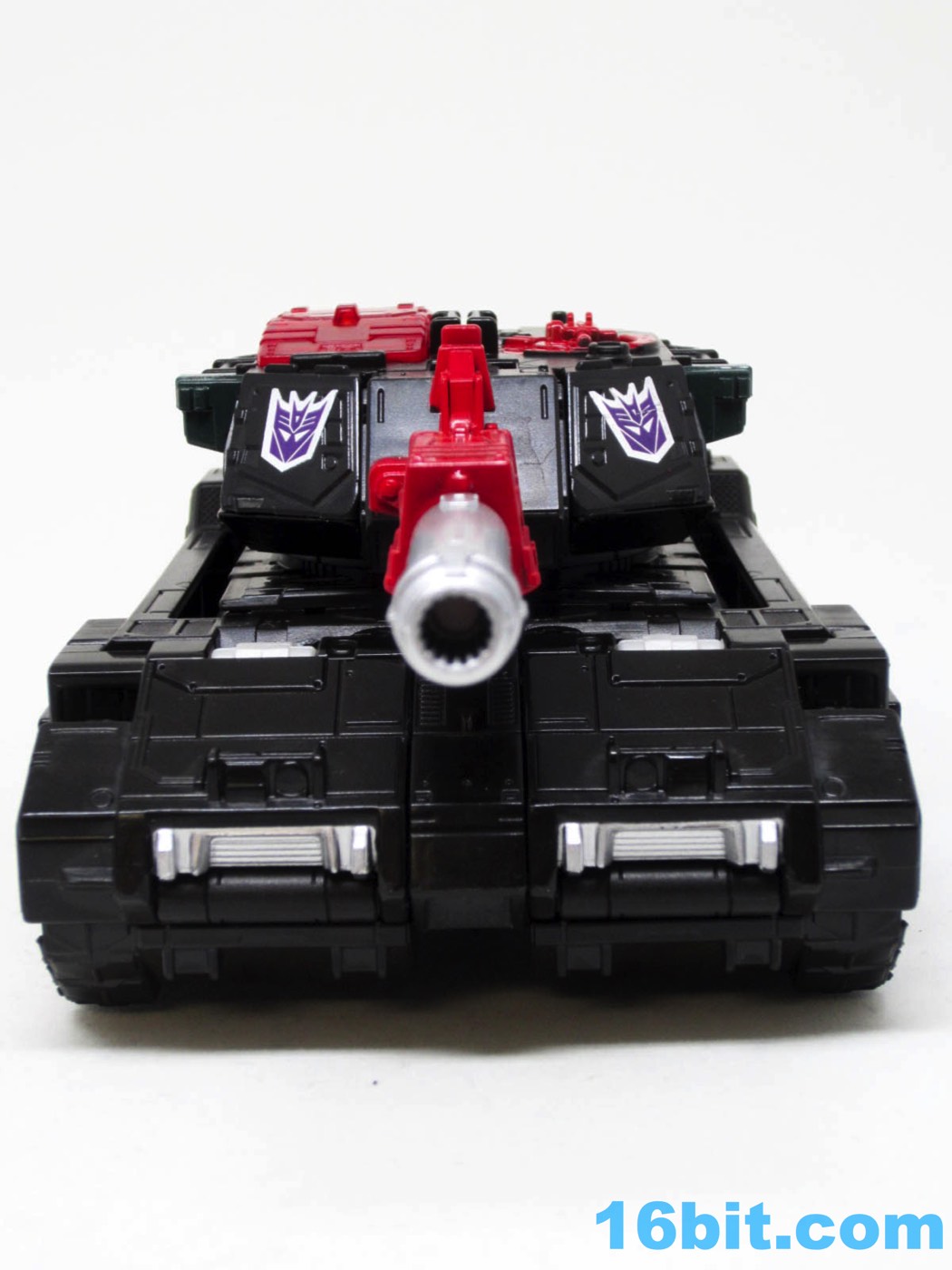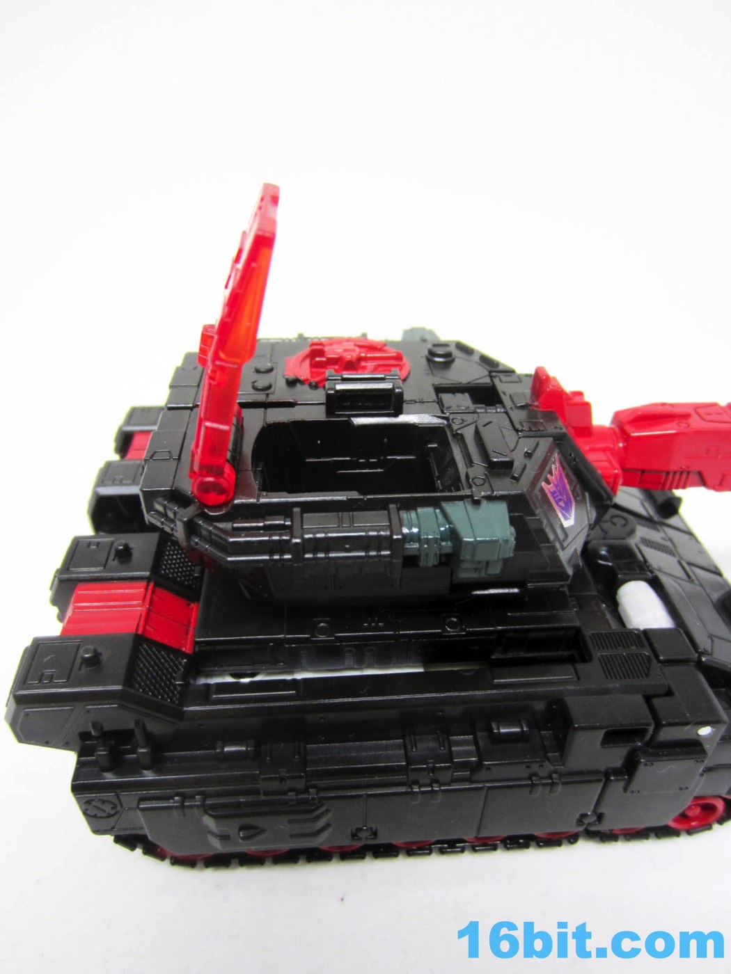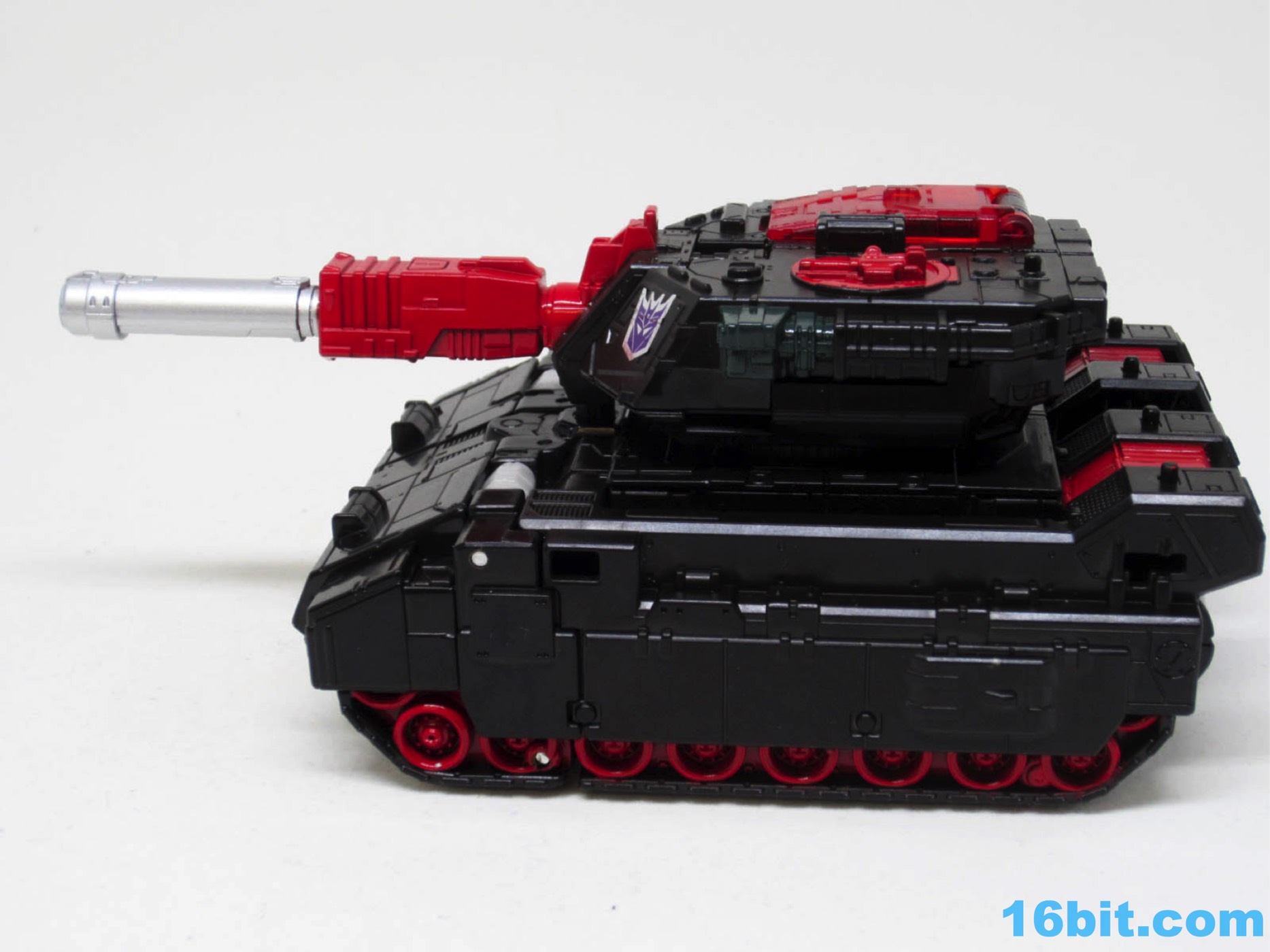 Tanks for the bonus vehicle! The turret doesn't turn because it has to also become the robot legs, and getting the gun out of the turret location is tricky. Not as tricky as getting the base mode connectors out of the feet, but it's still a challenge for even seasoned toy manipulators. There are little rolling wheels under the treads, but they don't do a lot to help movement. They're small but nifty, leaving the tank mode as a not-too-meaty armored vehicle with a clear red seating area for a Titan Master of your choosing. The colors are perfect, and for some reason the clear red parts send a signal to my brain that this toy has electronics. (It does not have electronics.) A firing rocket would've been nice, but I assume they can't factor in everything and still make a profit. A pity.