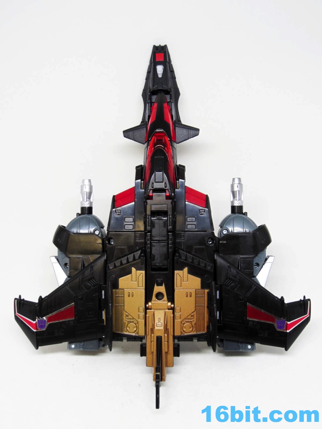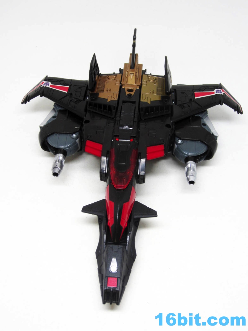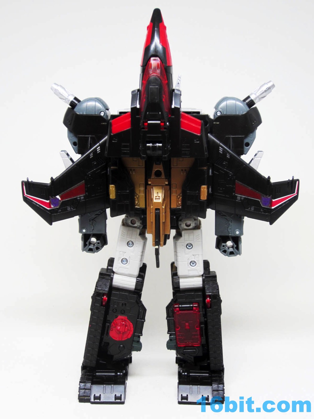 Last and hardly least is Sky Shadow's impressive robot mode. Standing about 9-inches tall, he looks a lot like the original toy from the waist on up. It's notable that the aforementioned 2011 Generations Sky Shadow does a better job of replicating the original G1 toy's legs and skirt elements. Both of the 21st century toys lean on the fiction representations of Black Shadow's head, as they had sizable horns rather than itty bitty ears. They're impressive, andtuck nicely into the jet mode when transformed. Angled shoulder cannons are now decorated - unlike the original toy - and foil stickers are back once more. His chest layout is also much closer to the original toy, although there are bits that may seem truer to the original on the other take on Sky Shadow. I prefer the newer one.