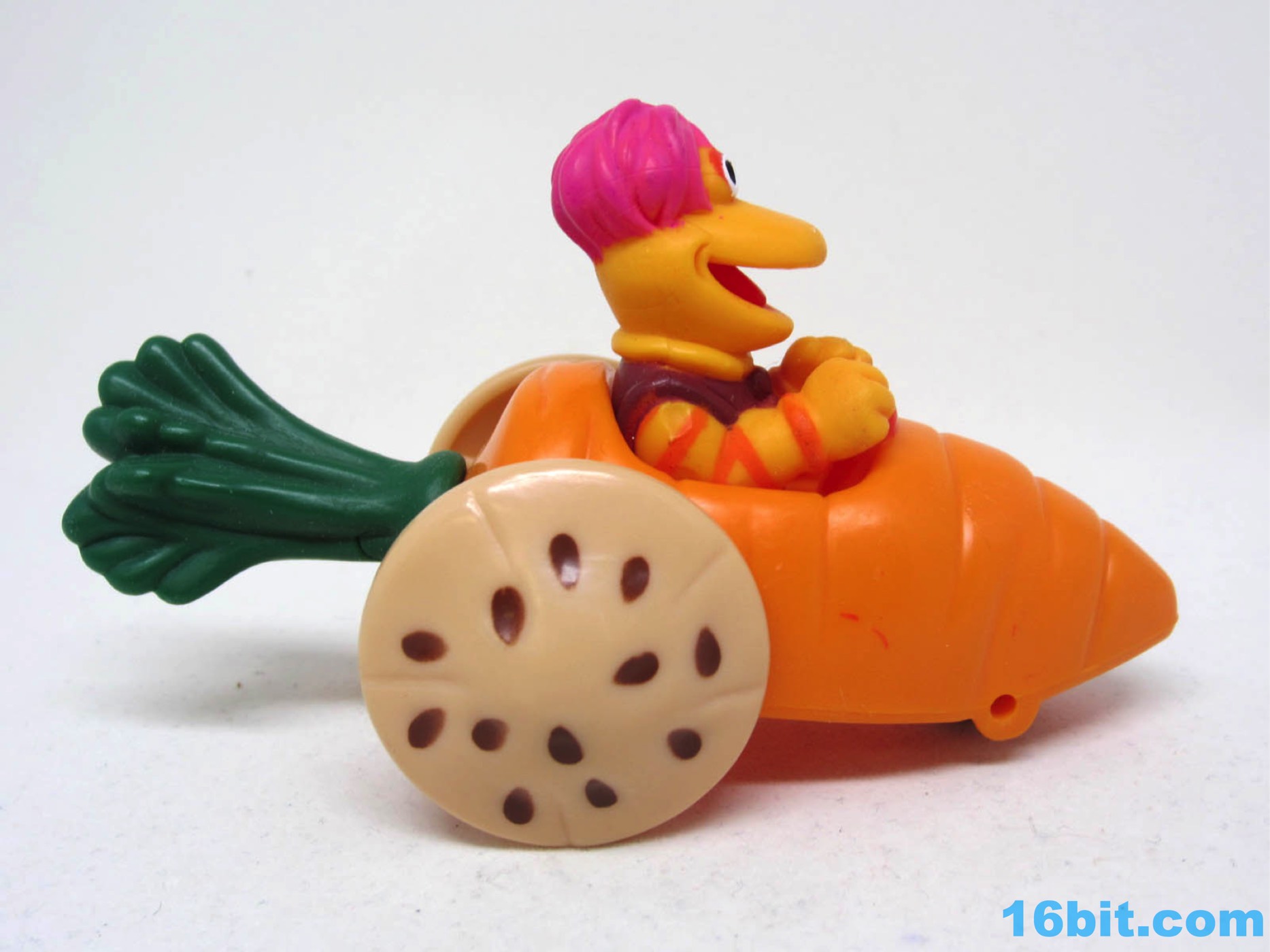 It's a sturdy, durable toy that held up in some boxes being battered around for 29 years. The carrot is a hard, orange plastic with tan wheels featuring painted markings. A green top to the carrot extends out the back, with wheels that roll better than pretty much any toy vehicle I've bought in recent years that aren't Hot Wheels. None of my Transformers are anywhere near this roll-friendly, as the metal axle on this toy rolls freely and gives kids a zippy and above-par toy.