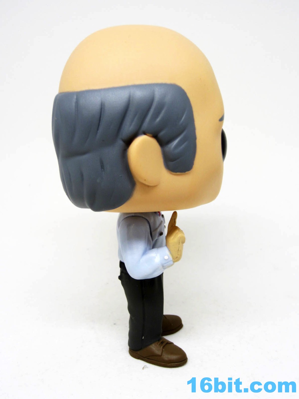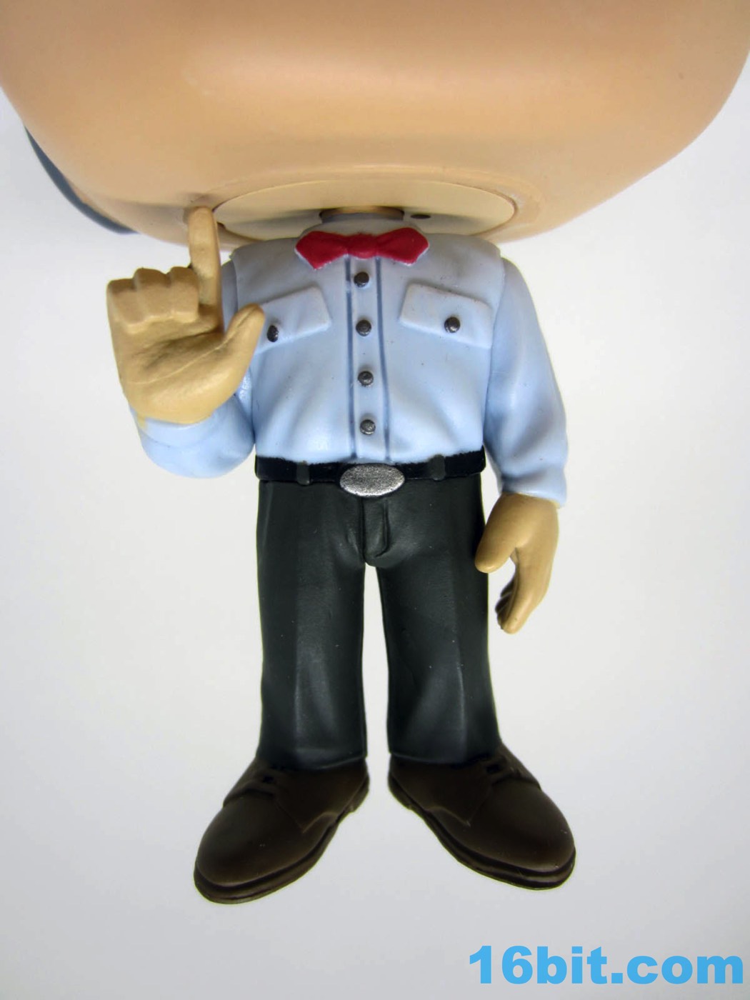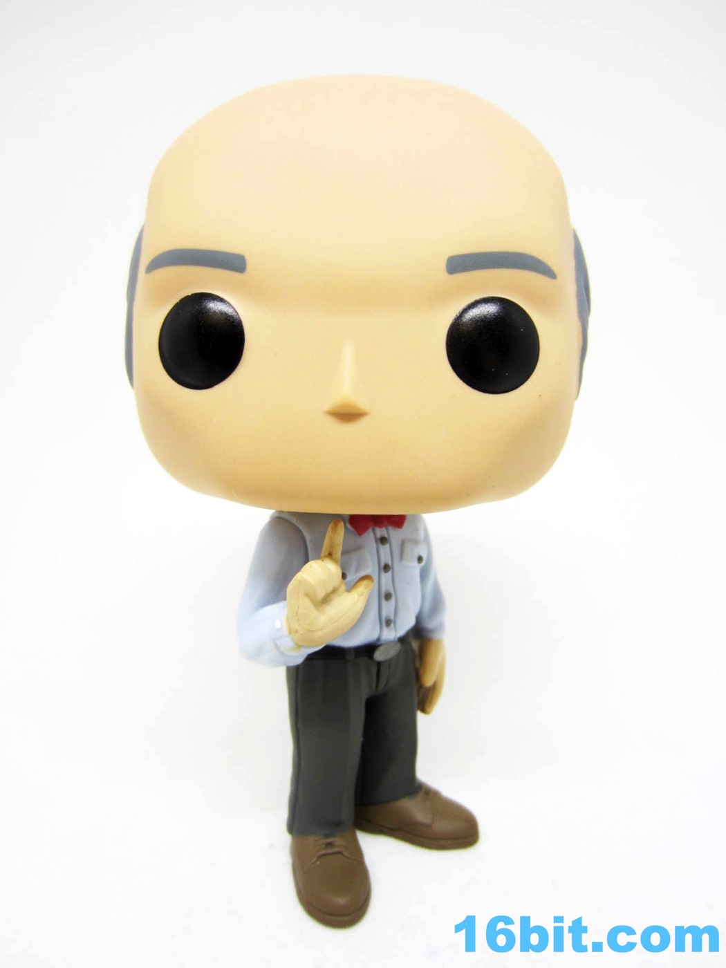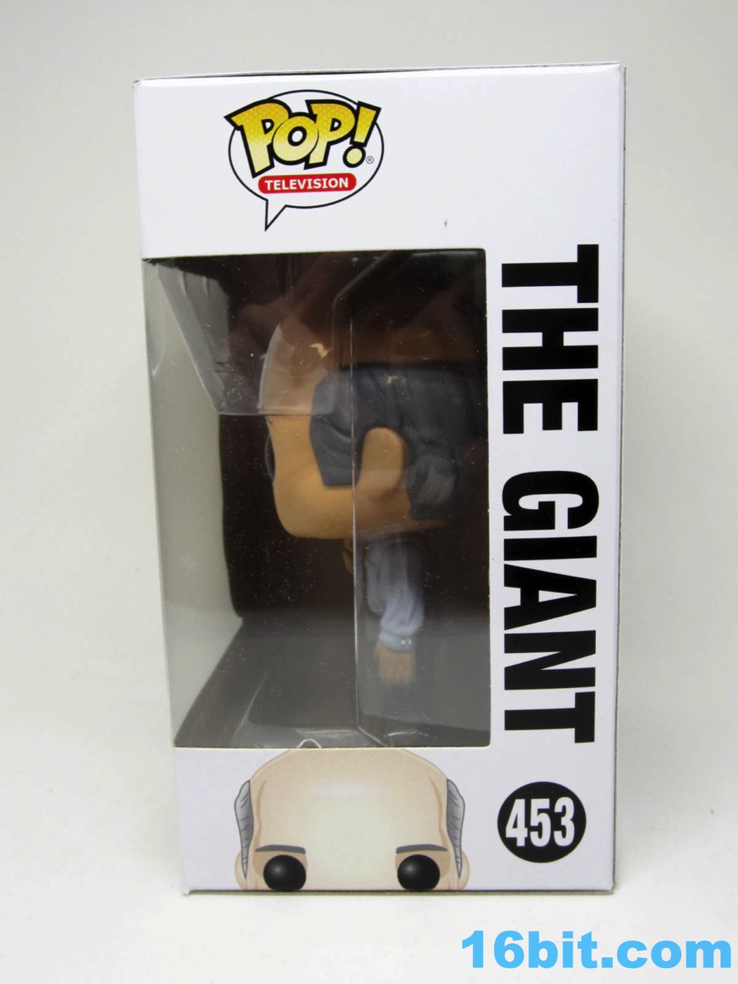 This 4 3/4-inch-ish figure has a jointed head and a lumpier-than-usual face. Most Pop! figures of all strains have a pretty boxy, smooth head but the Giant has a pronounced brow. The figure retains the actor's receding grey hairline and matching eyebrows, and the generally benevolent - if large - appearance. He holds up his finger on one hand for this release, because there are things you must remember. The Giant retains the character's blue shirt and red bowtie, plus sports painted buttons down his shirt and on his wrists. The belt is painted with the loops remaining grey to match the rest of the pants, and deep grooves around his fly give the impression of deco where there is none. Nicely done.