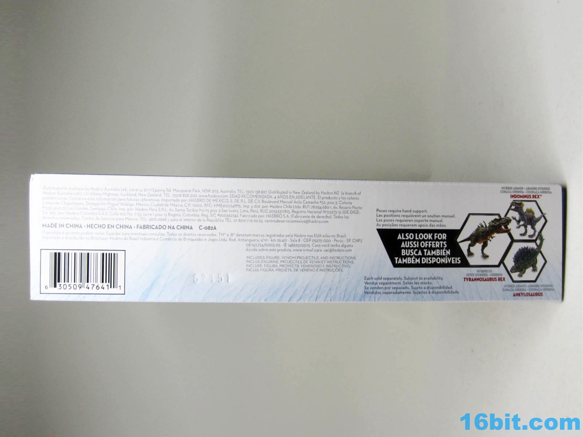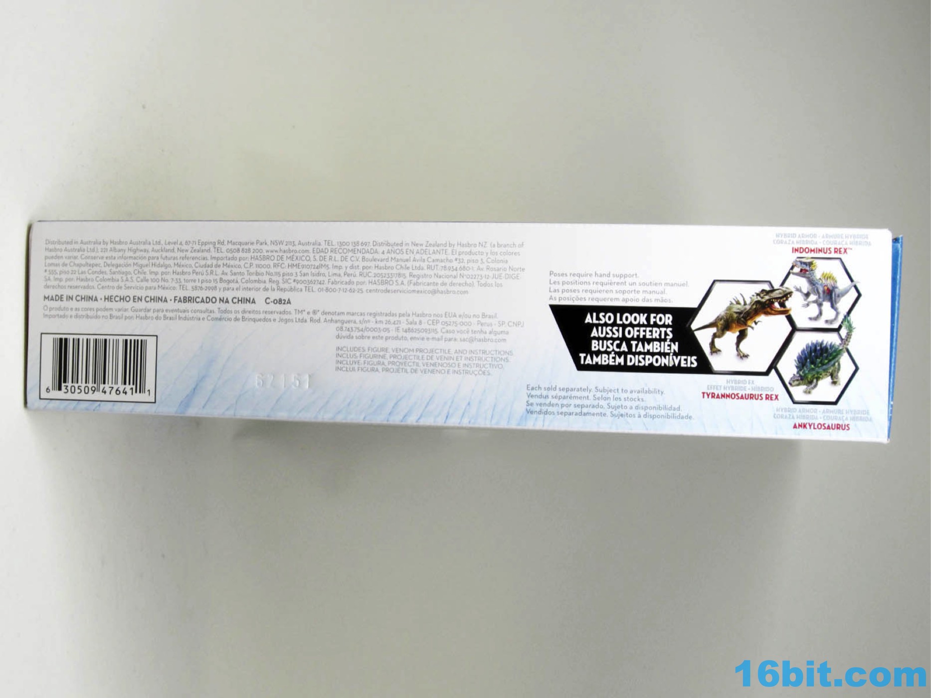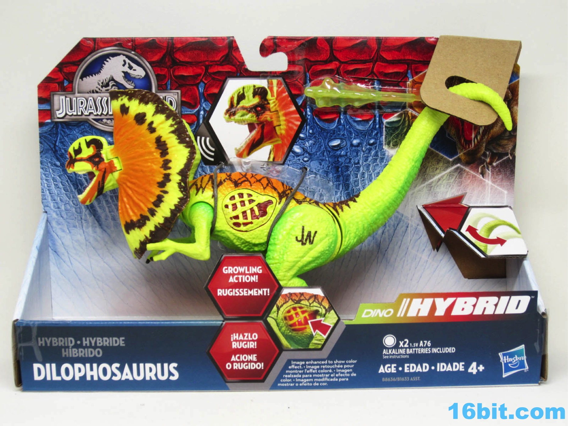Item No.: Asst. B1633 No. B8636 Manufacturer:Hasbro Includes:Spit projectile Action Feature:Wound lights up when pressed, move tail for spit and sound Retail:$14.99 Availability:September 2016 Other: Lean, Green