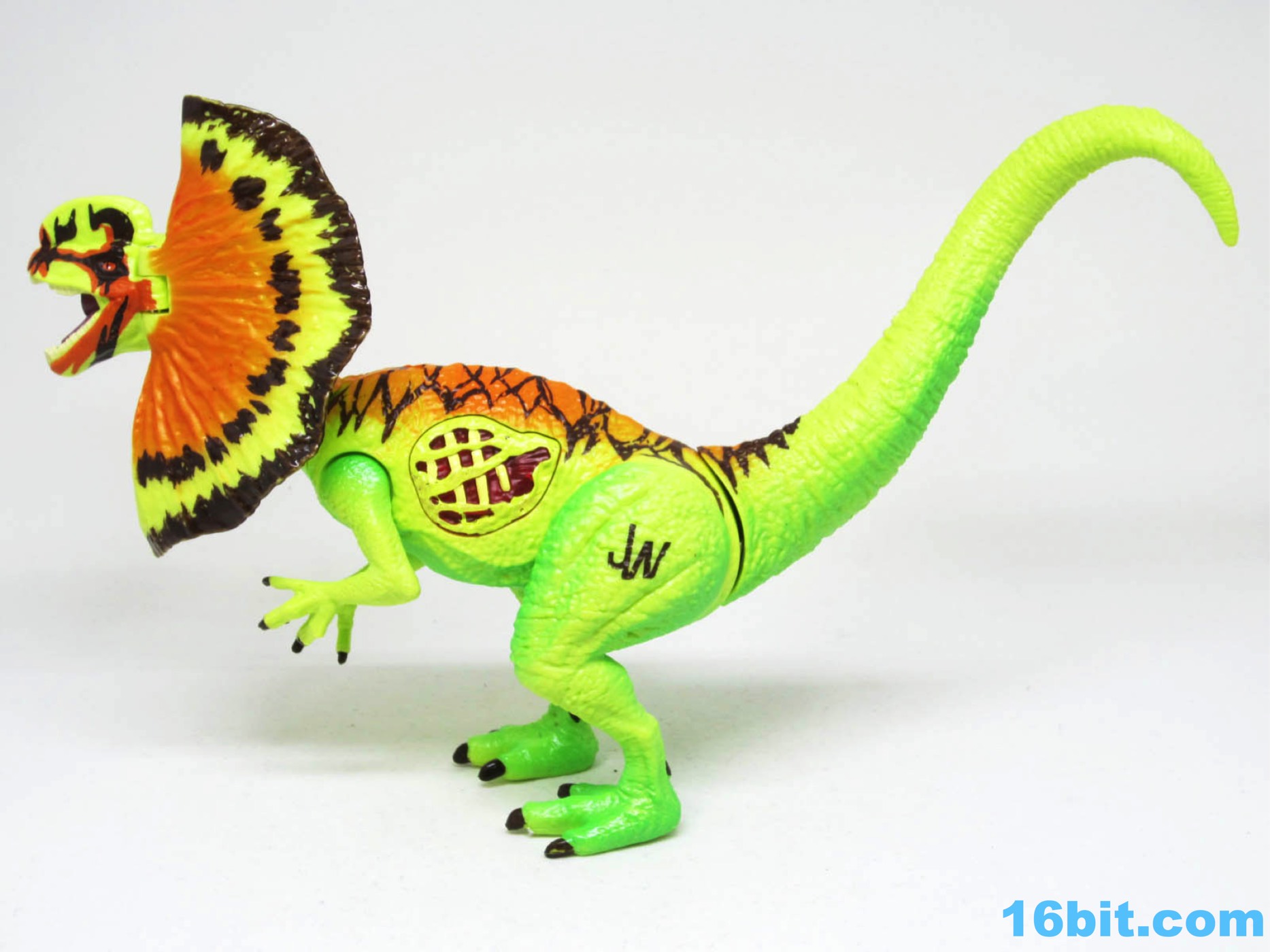 Another tribute to the The Lost World: Jurassic Park: Chaos Effect dinosaurs is the Hybrid Dilophosaurus. It's just a bright green and orange redeco of an existing toy - which as of right now, is more expensive on the secondary market - but I like neon. I do bright. All night.