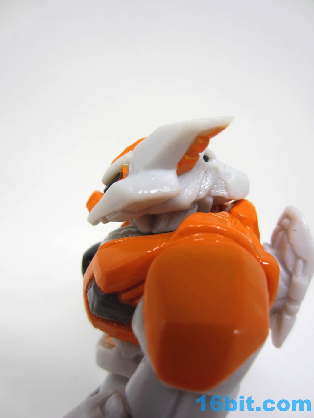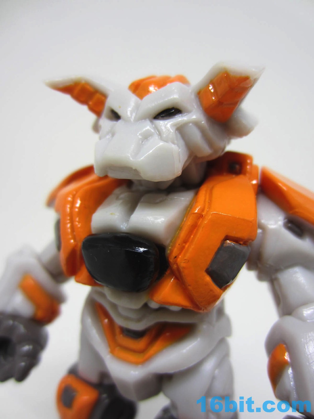 Onell Design cast this figure in a very light, pale grey color with tons of paint. Tons. I'm assuming this is costing Mr. Doughty a fortune, as the hands and lower legs are coated with dark grey and orange highlights. The head of the Neo Granthan is almost completely coated in paint aside from a tiny bit of the neck, complete with his grey face and orange helmet. The wolf head is mostly unpainted save for a couple of details and the eyes, and the backpack just has a bit of black on it. If you'll forgive the pun, it's an impressive beast.