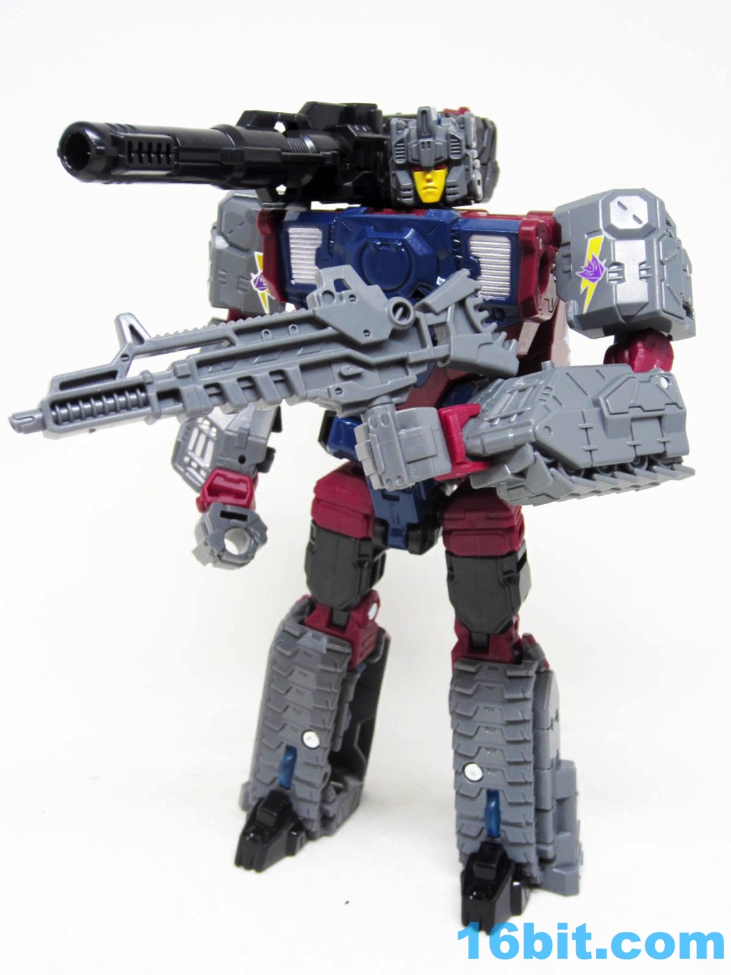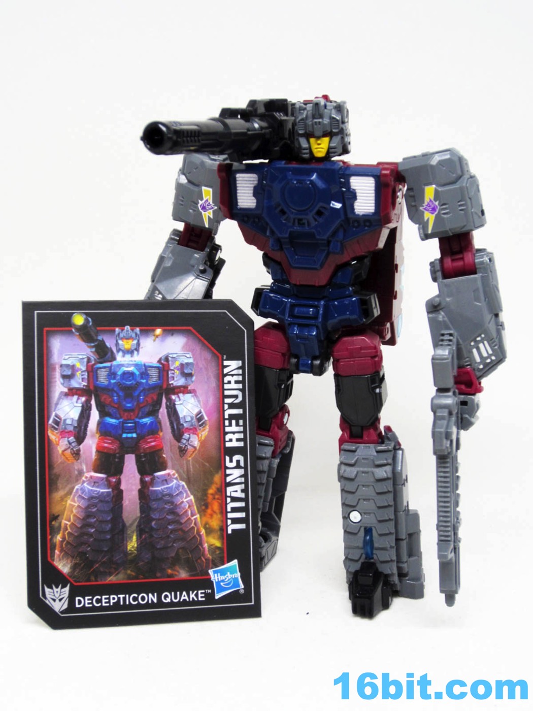 The last time someone tried to make a Quake, the old Tankor mode was being considered for the honors. It would've been a swell tank mode, but the robot mode would have been a bit off - particularly the head. Since Hasbro got the basic deco and most of the form factor correct, it's a decent upgrade. Sure, the big shoulder cannon was originally purple - and not a shoulder cannon - but it looks good here and it's fun to futz with. It's clearly an update-slash-quick-and-dirty way to bring this character to the main line at one per shipping carton. He doesn't quite have 20 points of articulation, but there are plenty of arm joints and some added paint missing from Hardhead that make this a pretty snazzy toy. If this were a BotCon exclusive, you'd probably kind of want it... and kind of want Hasbro to do a better version later. It definitely scratches the itch for a Quake, and it's good enough for now. And probably for a long time, I can't imagine we'll ever see a new update for quite some time.