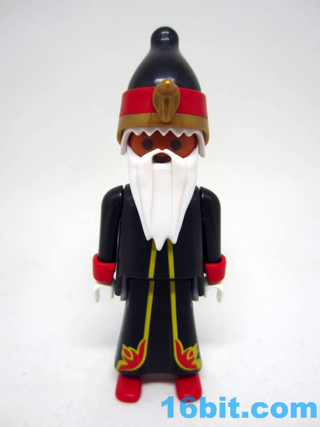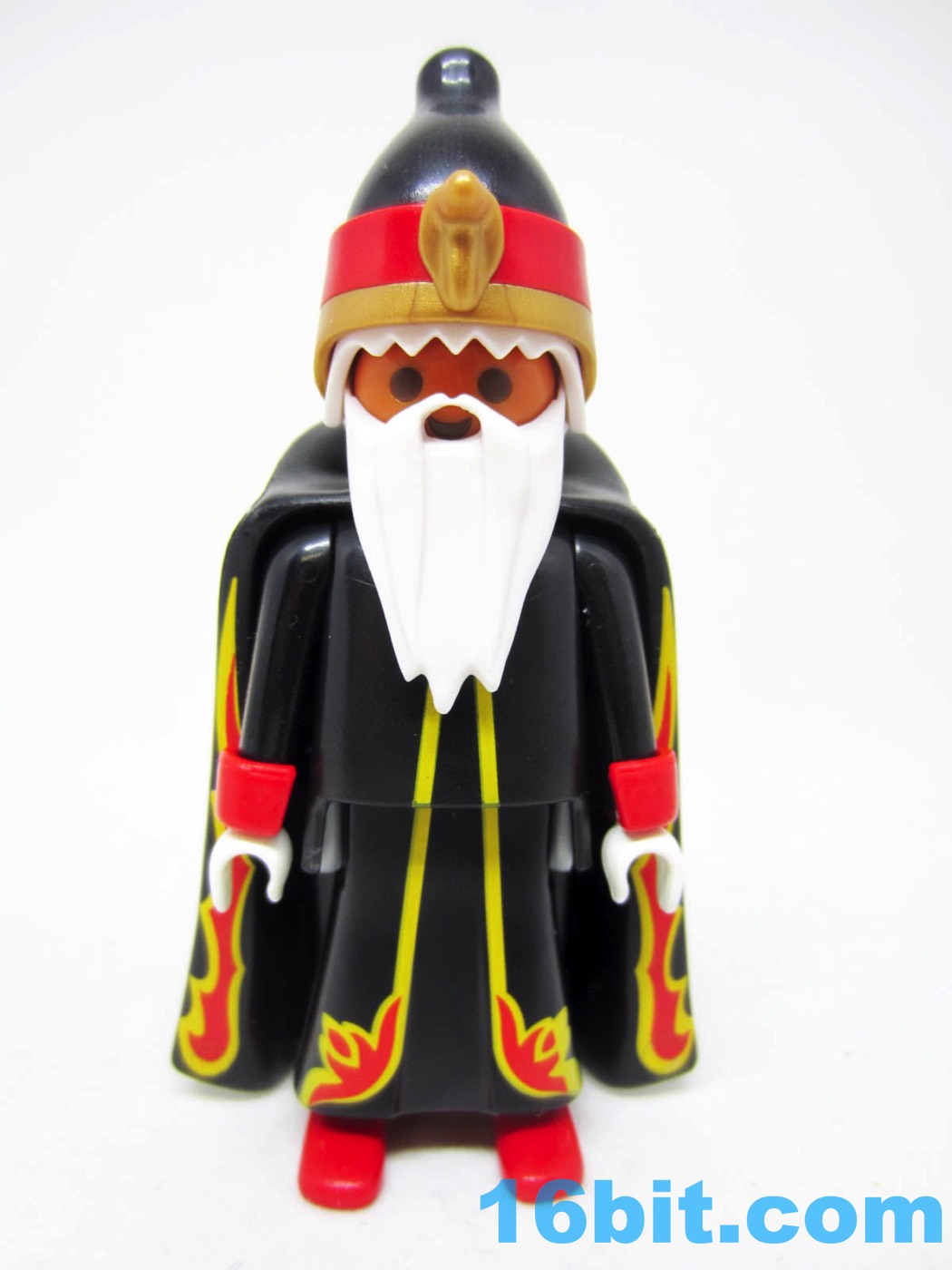 What makes this figure compelling is how weird it is - a Wizard in robes is a sensible thing. Giving him a tall hat with a snake on it... that's creativity. Adding in the orange skin, white gloves, long beard, and flame motifs? Now that's something really original.
