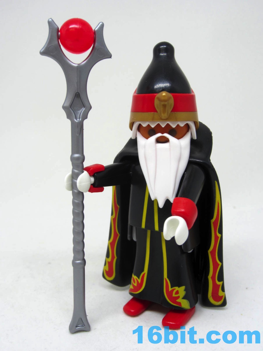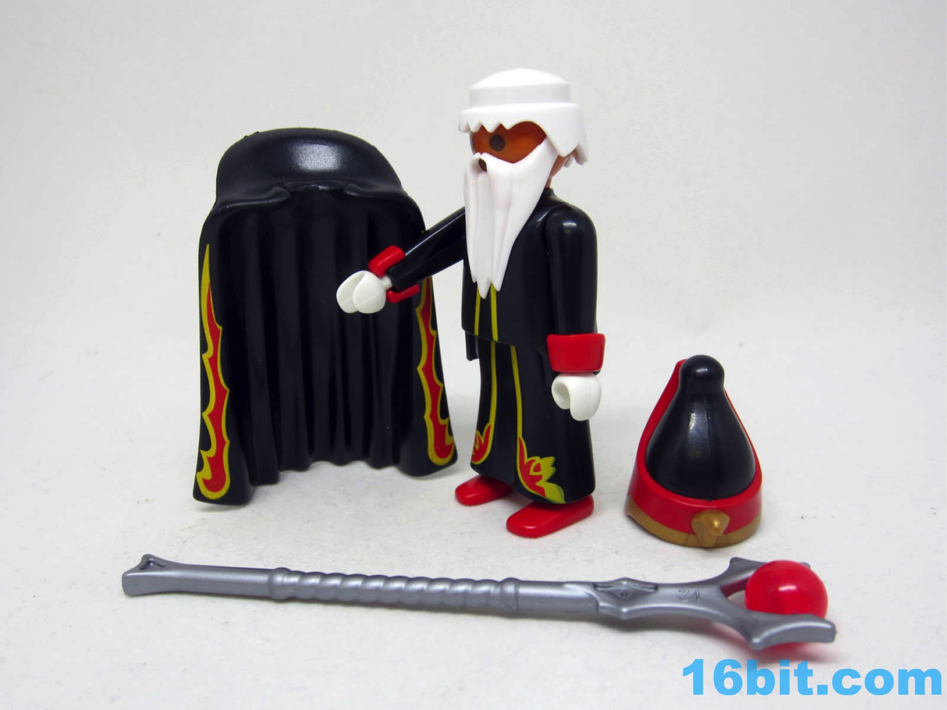 Item No.: No. 6840, #12 of 12 Manufacturer:Playmobil Includes:Red cuffs, black cape, hat, staff Action Feature:Makes your figures nervous in alleys Retail:$3.99 Availability:Fall 2016 Other:Fire Good