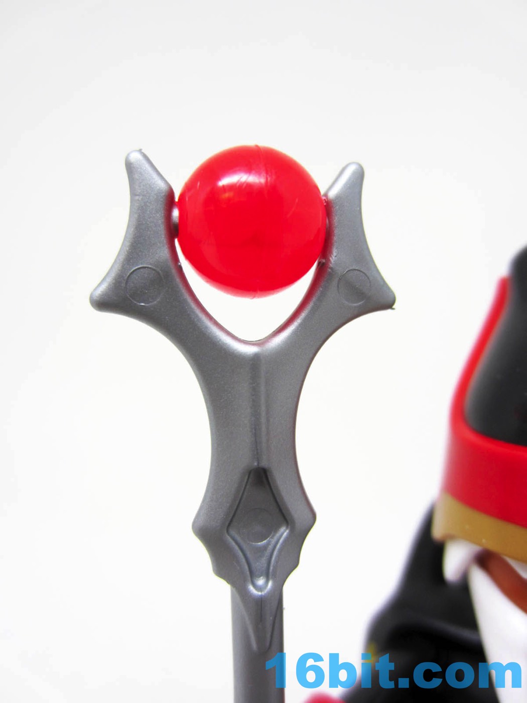 Assembling the figure is pretty easy, with standard Playmobil articulation. The only real obstruction is the long snap-on cape, which prevents the figure from sitting unless you pop it off. Otherwise, you get six joints and he has no problems standing or holding his really cool staff. The somewhat Sauron-esque staff has a red orb in the middle surrounded by metal that looks like something of a mix of an animal skull and bat wings. I'm digging it.