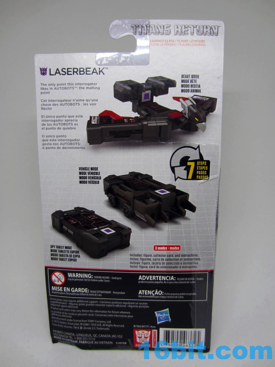 If you got Buzzsaw, you don't need Laserbeak. He costs about the same and isn't as colorful. He's functionally identical - but the stickers and deco are a bit more subdued, and a lot of adult collectors prefer subdued to wacky. I can't help but get both and since the birds seem to hold together in device mode the best you might want them to store in the chests of your Soundwave and/or Blaster. There's nothing particularly groundbreaking here, Hasbro just cranked out a slightly improved redeco of a character that you probably already knew you wanted. I still see these hanging around at Toys R Us stores, but rarely elsewhere. It's not as fancy as the cars, but having three modes to shuffle through make it a fun desk toy - and mine has been hovering around my desk since it came out nearly a year ago.