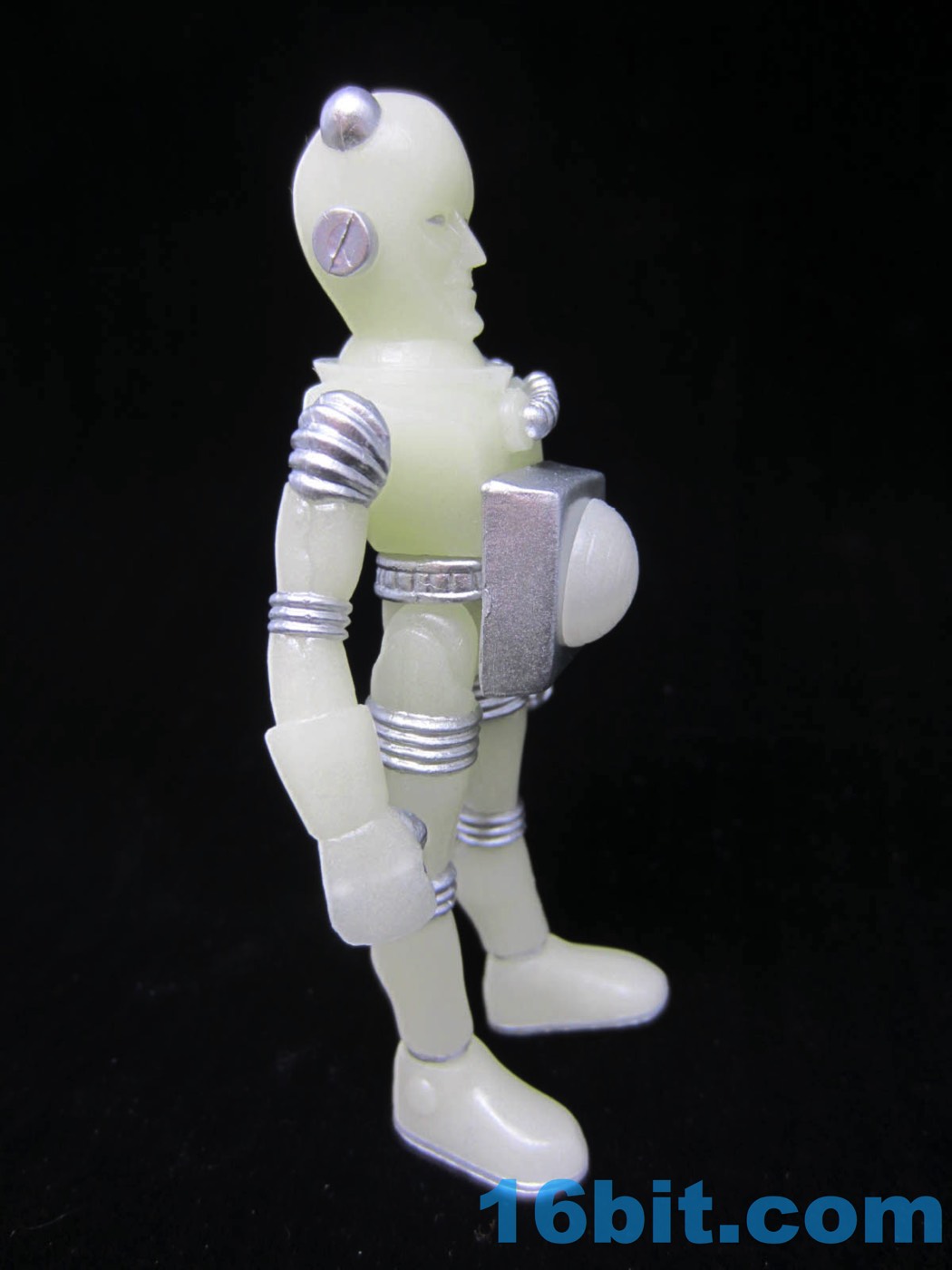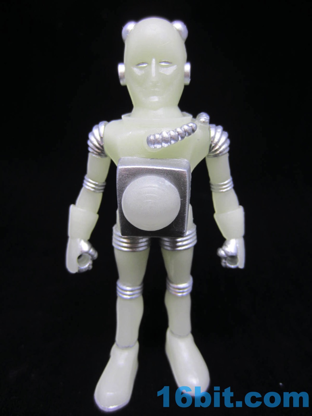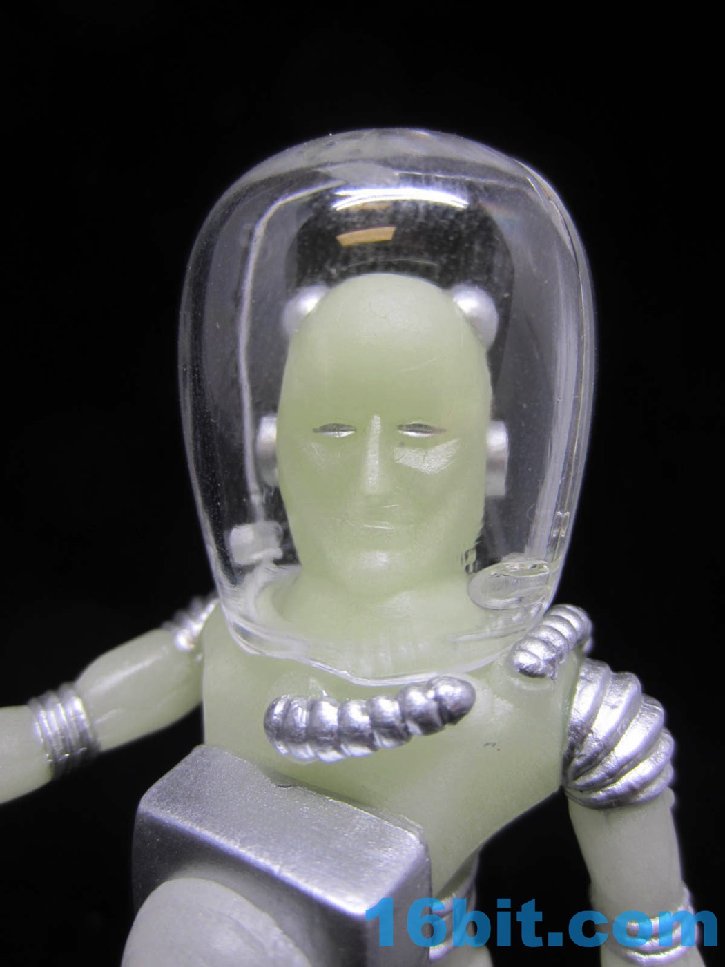 Electron+ the man from Pluto, which used to be a planet until people started getting angry at Neil deGrasse Tyson for telling us that the moon is a more massive object than the former ninth planet. Nobody likes hearing that their favorite planet - or a fact they learned in school - isn't as accurate as it once was, but the important thing is we're all learning something about Pluto now. It's also a pretty safe bet there aren't any bubble-helmeted energy beings on Pluto, so this figure is also arguably scientifically wrong... but it's a nice figure. The arms can be removed and swapped for straight or bent elbows, mercifully included with a glow Electron+ for the very first time.