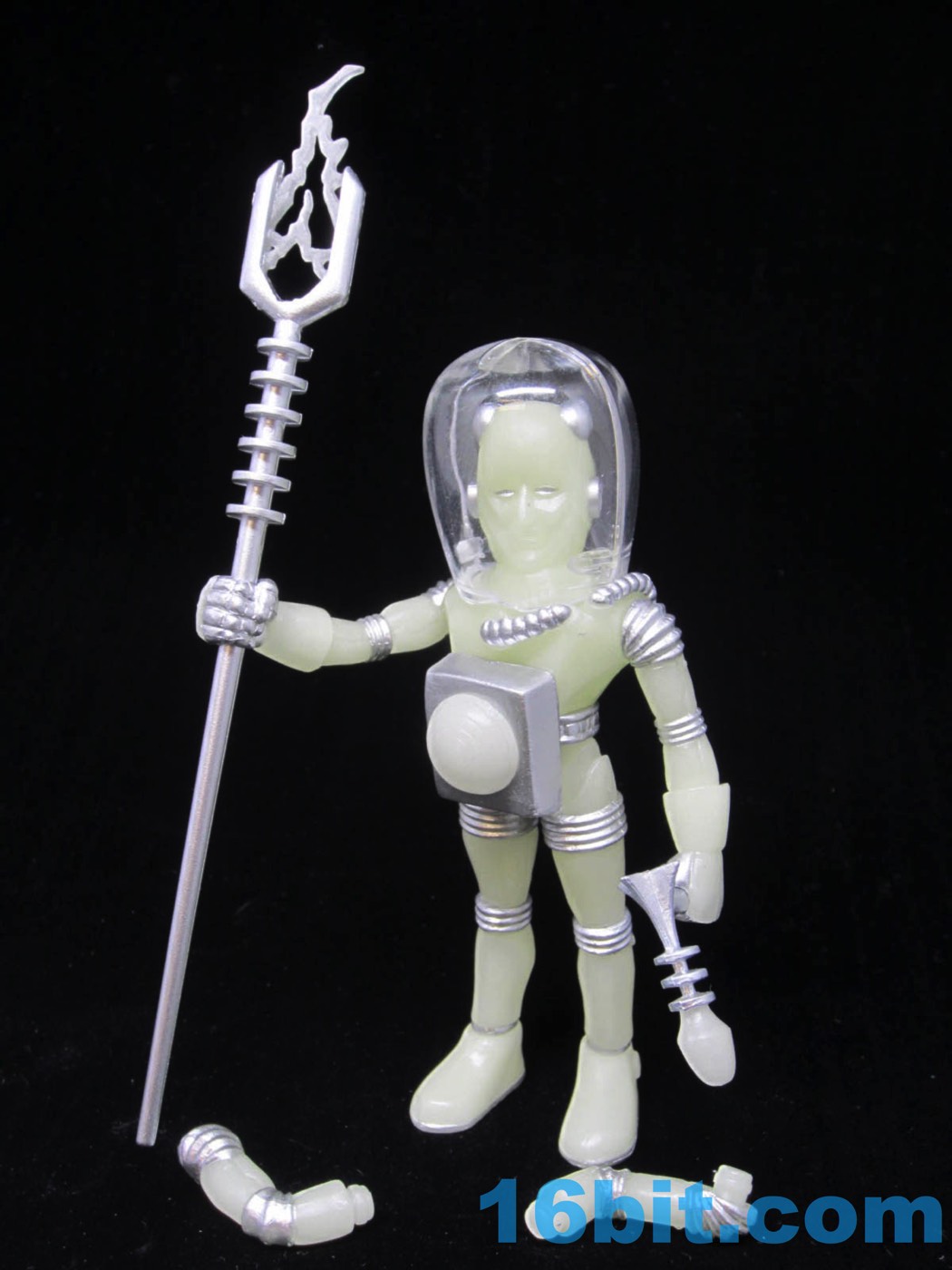 Item No.: n/a Manufacturer:The Outer Space Men Includes:Staff, 2-piece helmet, alternate glow arms, ray gun Action Feature:Glows, pops apart Retail:$20.00? Availability: July 2017 Other: Brings the total to 7 Electron+, 8 if you count weapon variants