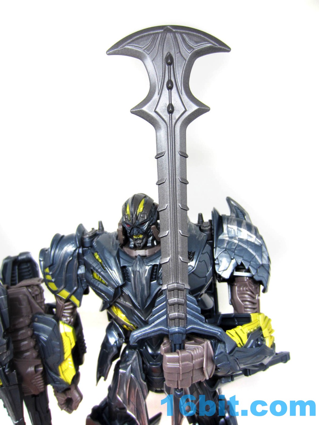 As accessories go, Megatron is a real winner. His giant sword appeared in stills from the movie, and it's superbly cool - I wish I had more of them! It looks good with other figures, even smaller ones. The blade has a big, heavy look while fitting perfectly in any 5mm hand. It's patently absurd that a giant robot from another planet would need a sword out of a fantasy video game, or it's telling that these robots are really just like us - giant dorks. For a character famous for being a gun and having an arm cannon, increasingly large and ornate melee weapons give the figure a sort of preposterous charm that I want to see on all of my toys. He has nearly two dozen points of articulation too, and while his range of movement is superb - really, truly fun - his sword is too small for him to grip with both hands.