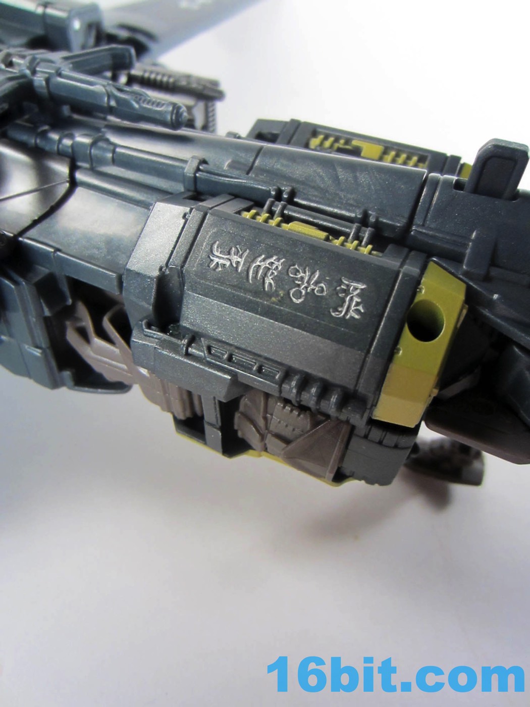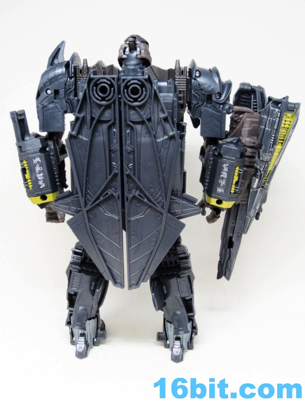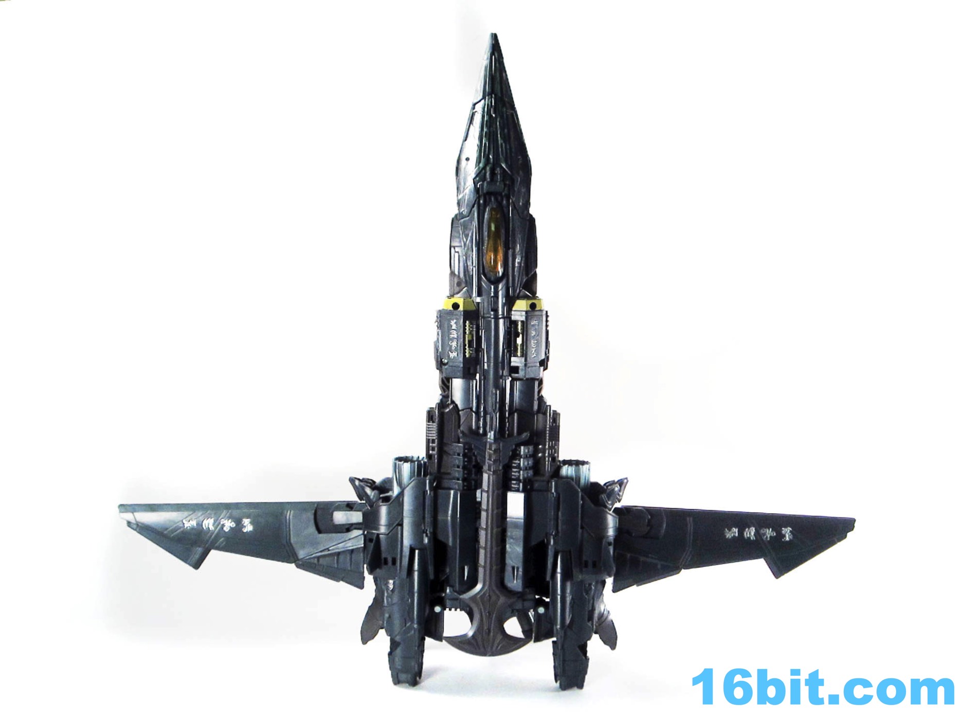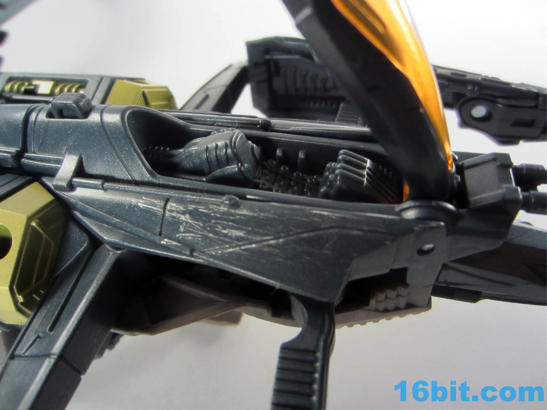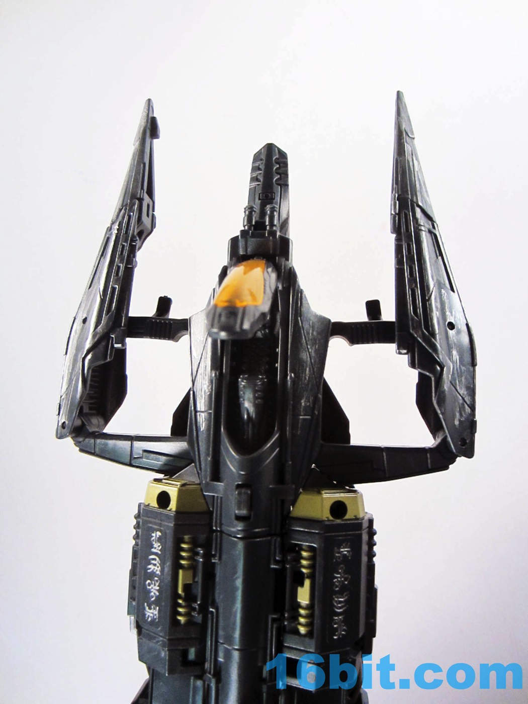 I don't completely understand why an alien would be able to turn into a weird space plane with a cockpit, but it looks cool. It looks sharp and pointy, with a button the front that causes a cannon to pop out and the front of the jet to split open. It's large and impressive - also complex. Obviously it's not as complex as a Masterpiece Edition toy, but it's pretty amazing with gold and silver detail painted in spots. Having said that, it's mostly grey so the sheer size of the item will probably convince you that you got your money's worth. I rarely go "holy cow, this is huge" but here we are.