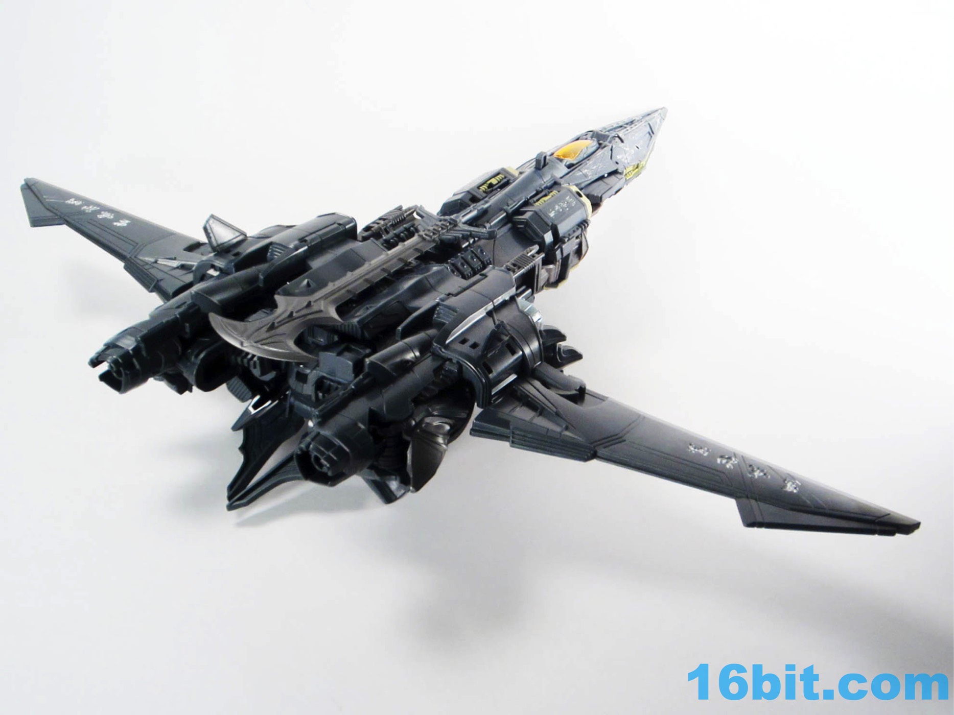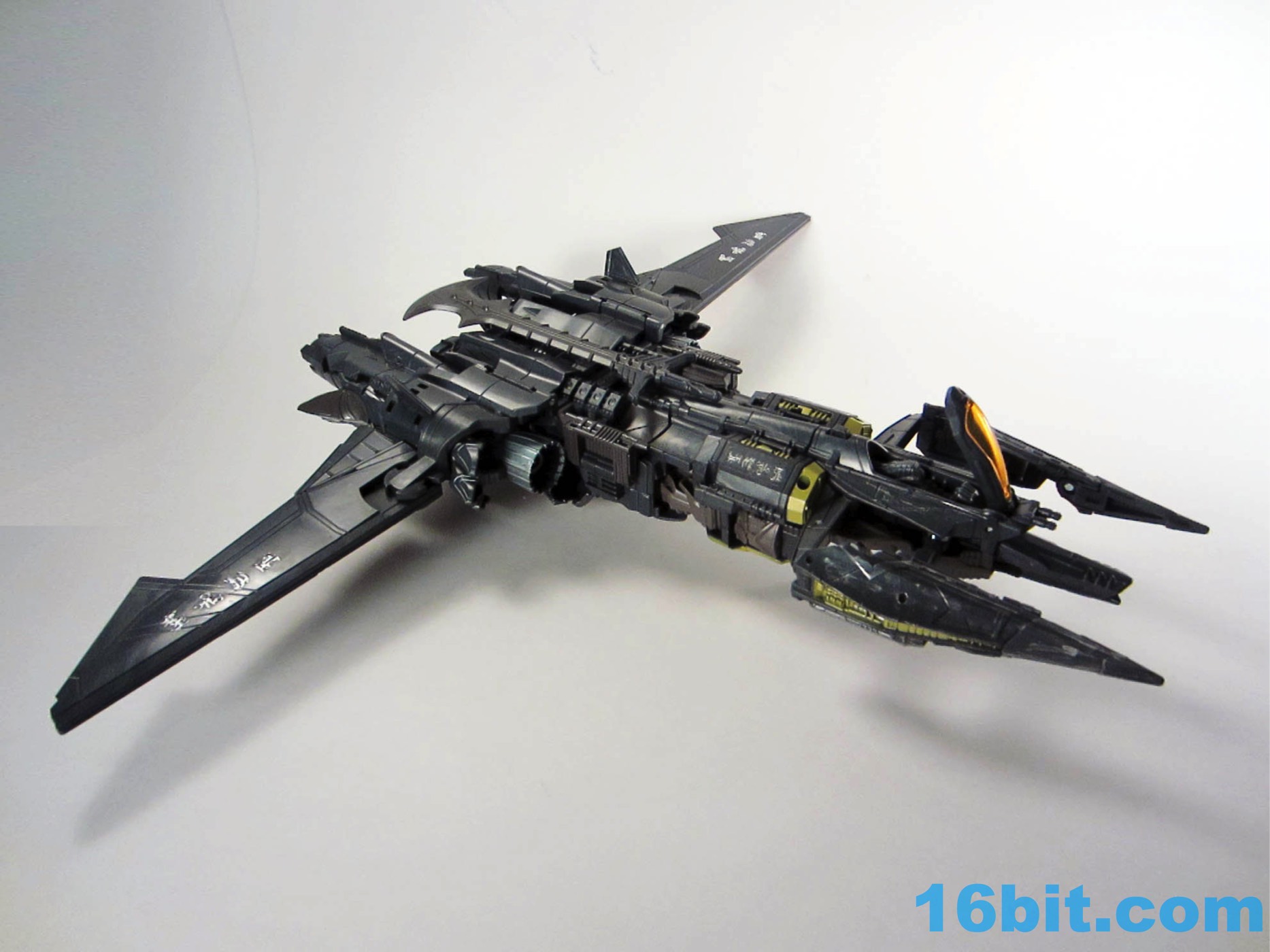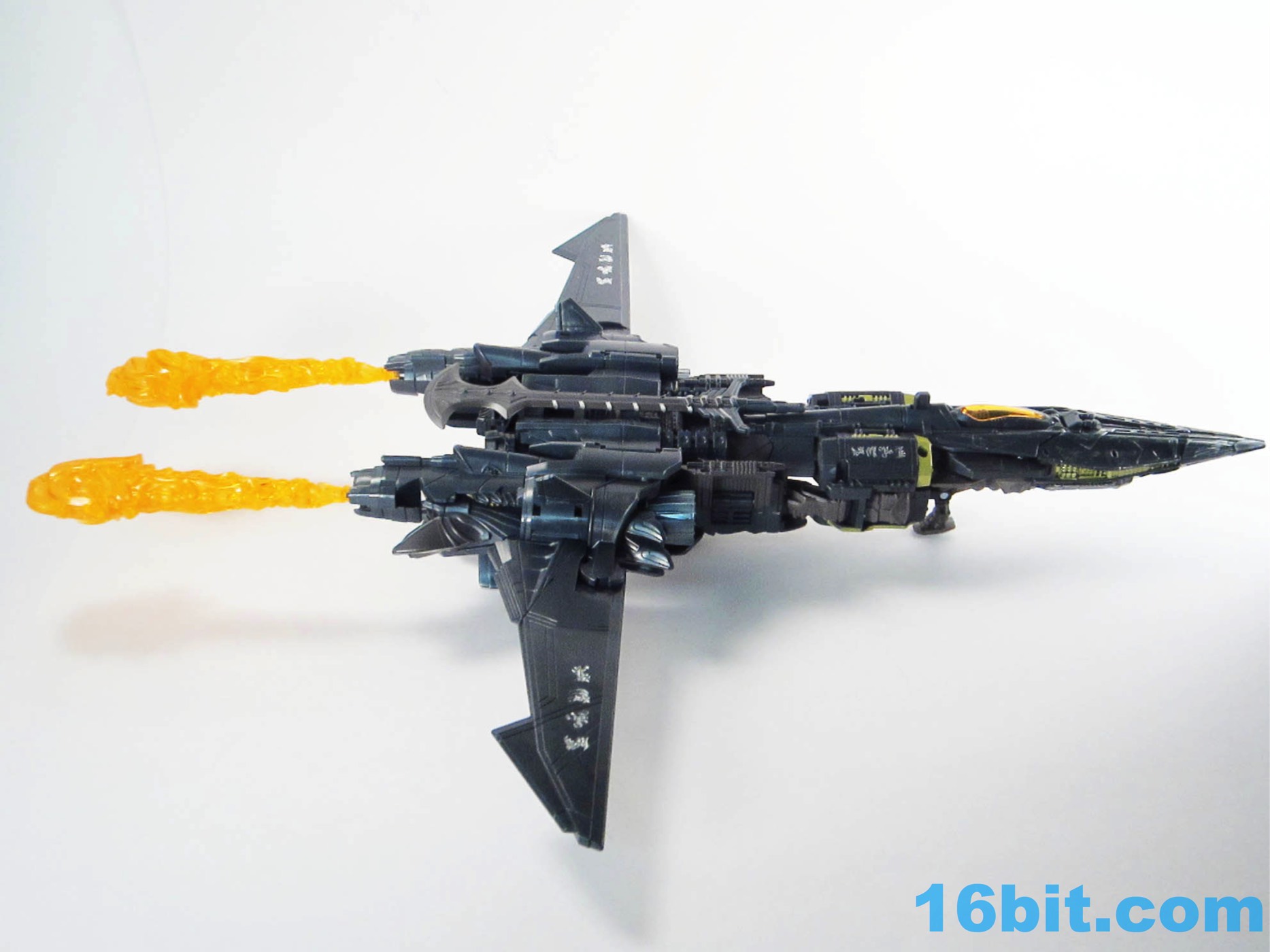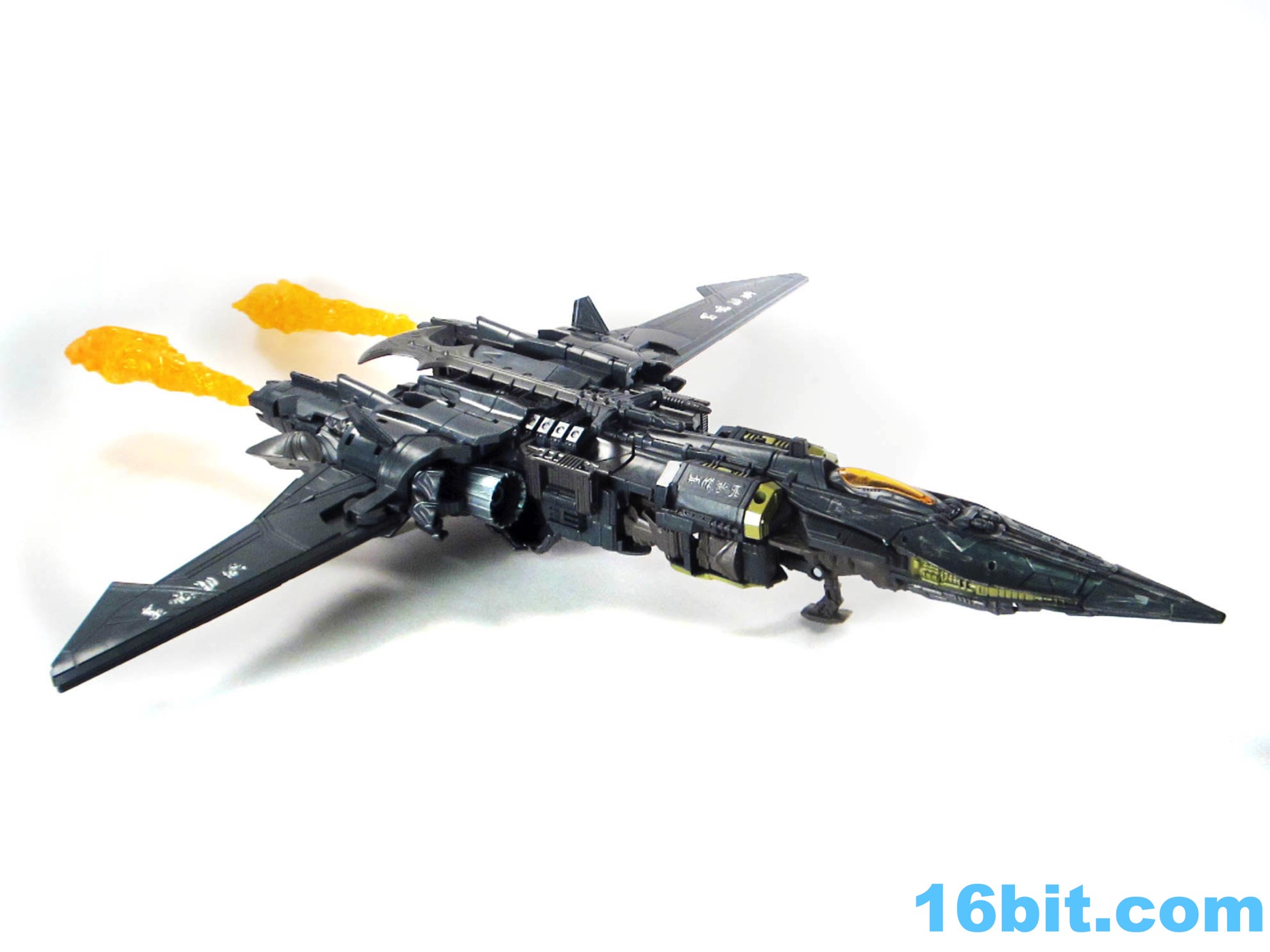 The vehicle mode is big. Really, really big. The wingspan is about 16-inches. With the flame effects, he's even longer. I'm irritated because I had to tweak my photo studio just to get the dumb thing photographed! The toy itself even has a few action features in addition to its top-notch decoration. It looks cool, and it does stuff - this is what we all need.