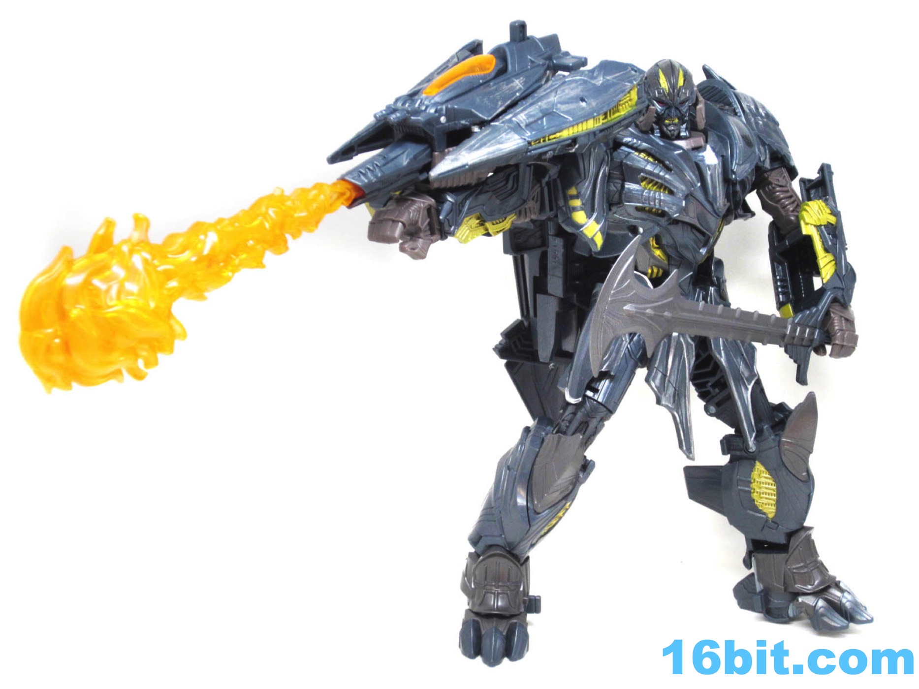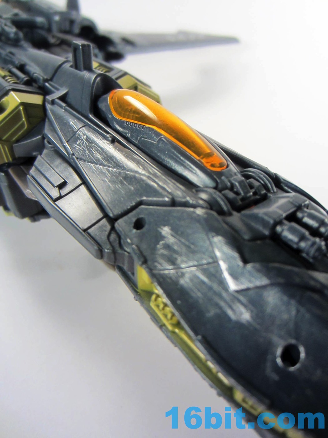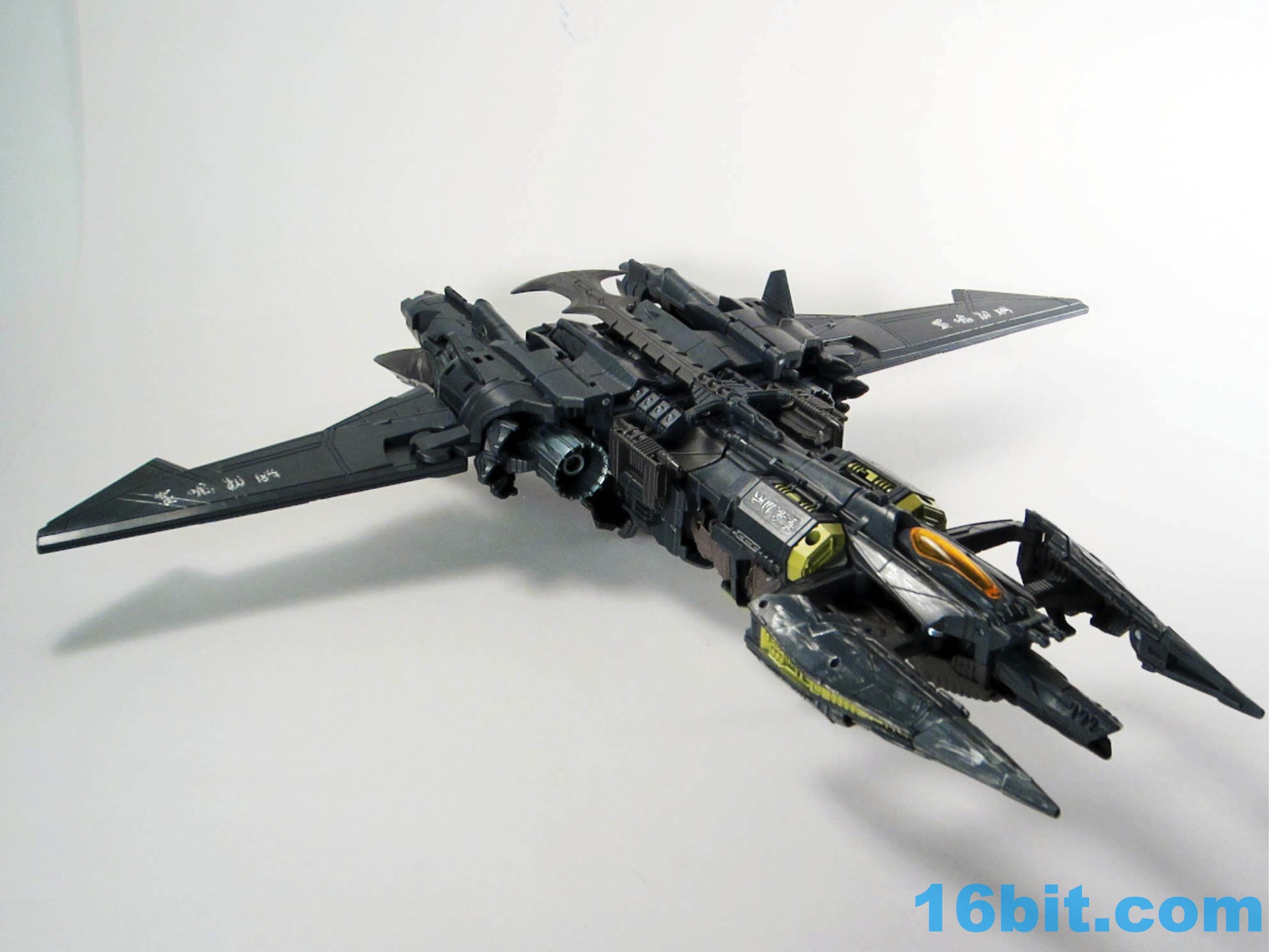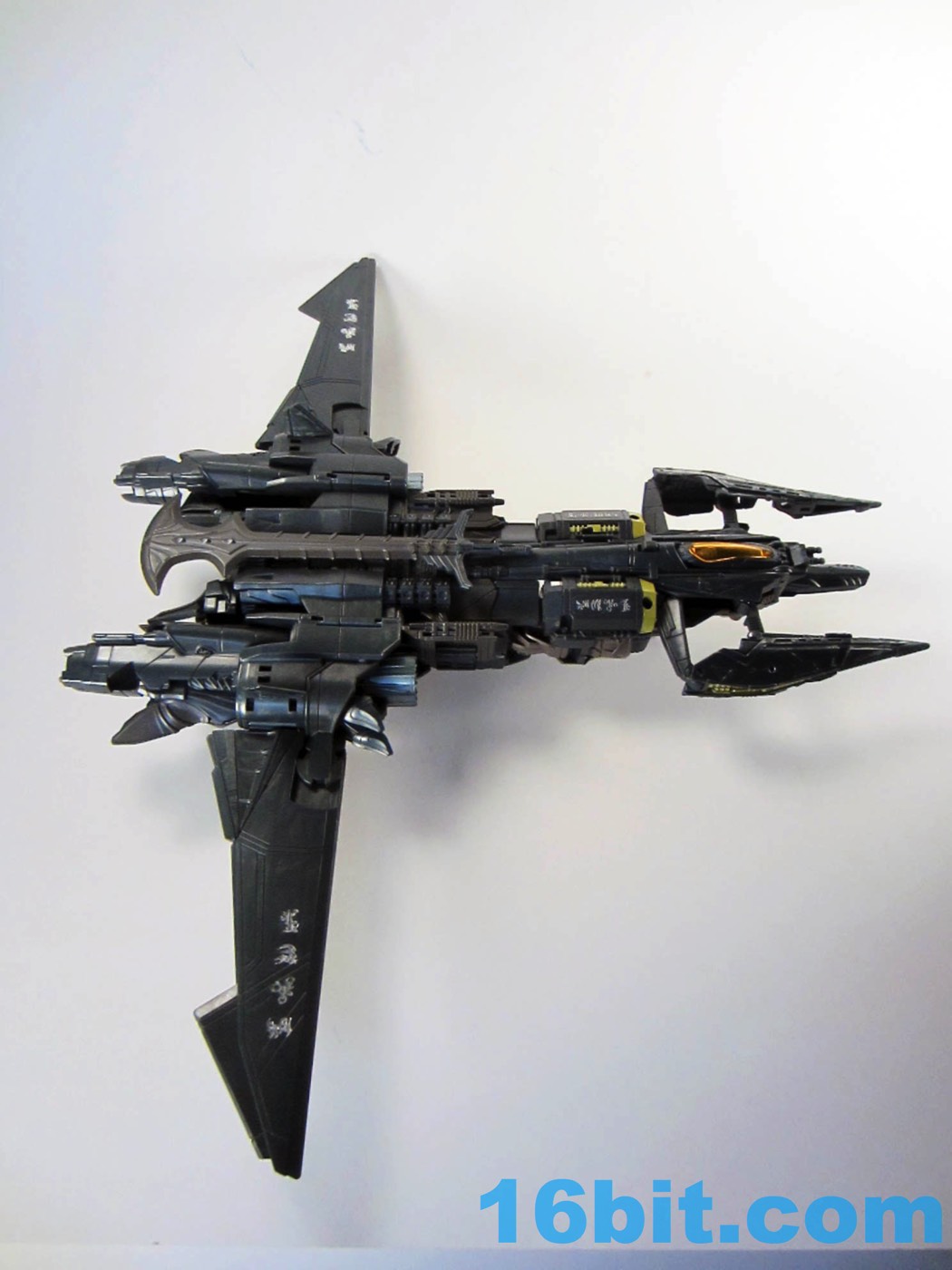 The vehicle mode is big. Really, really big. The wingspan is about 16-inches. With the flame effects, he's even longer. I'm irritated because I had to tweak my photo studio just to get the dumb thing photographed! The toy itself even has a few action features in addition to its top-notch decoration. It looks cool, and it does stuff - this is what we all need.
