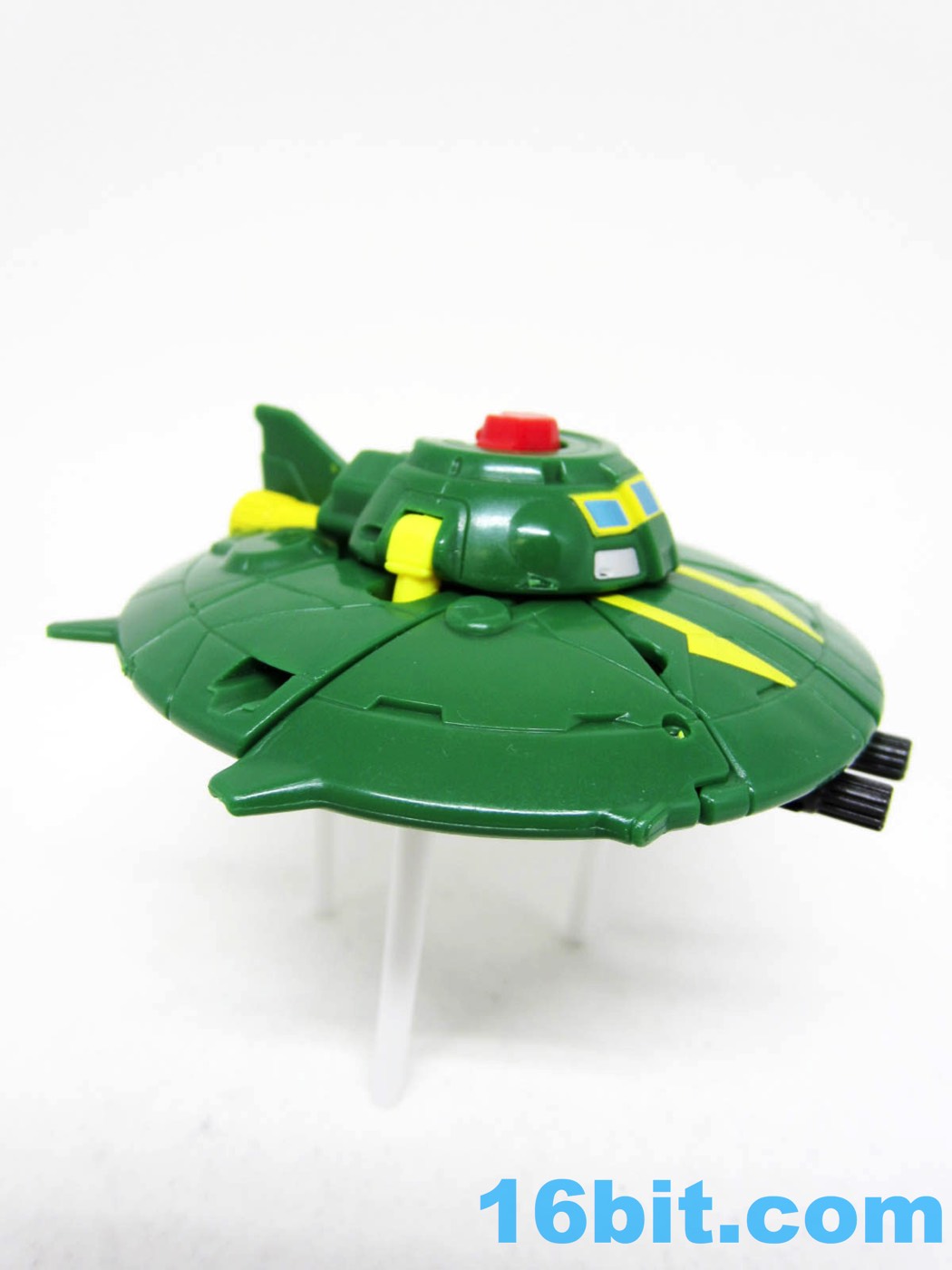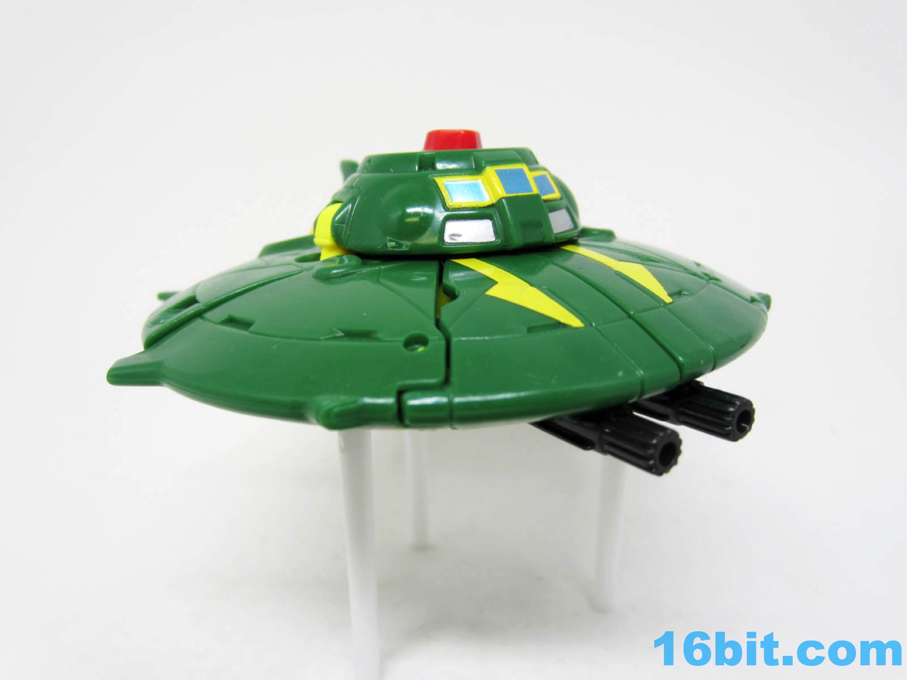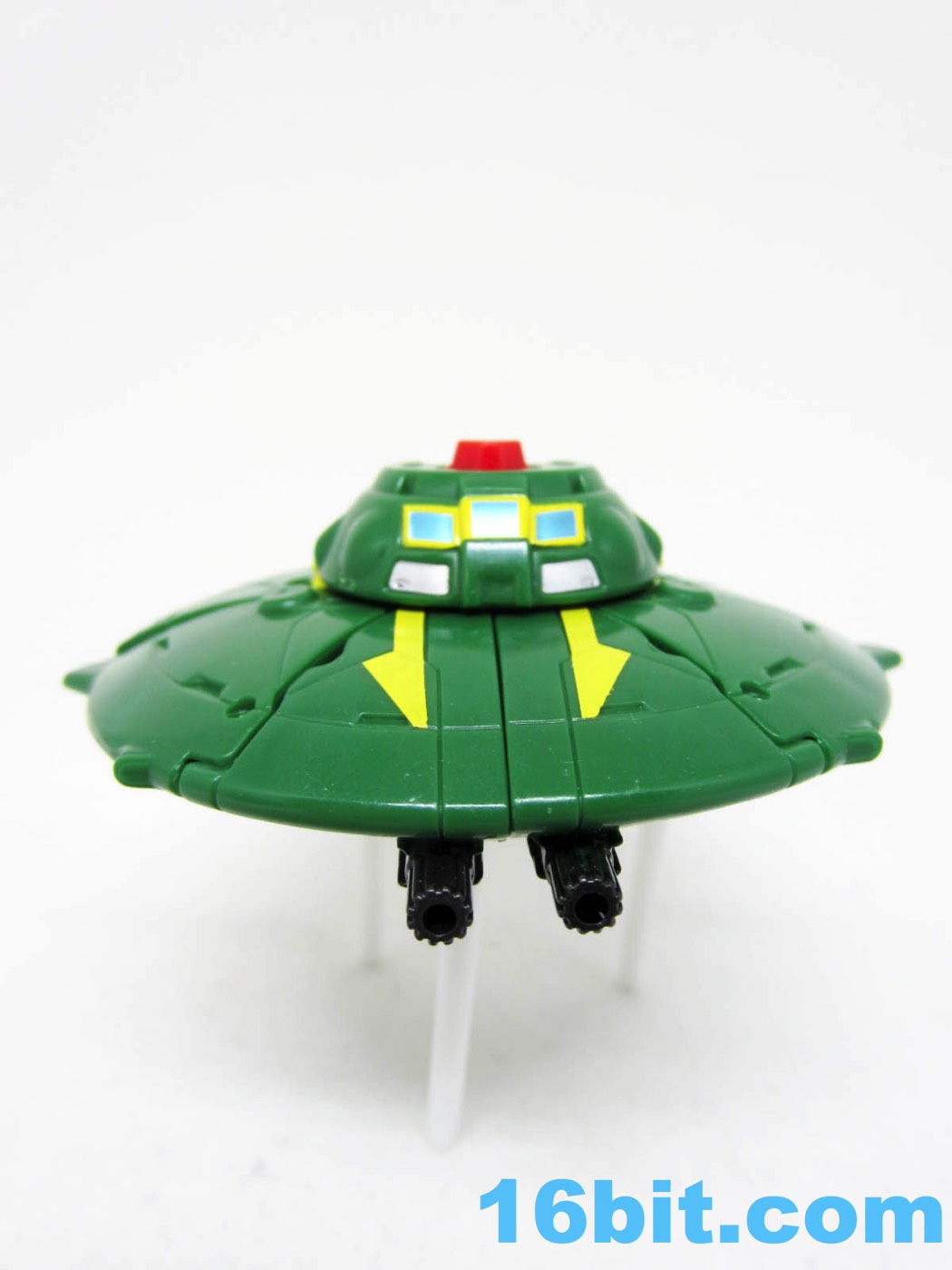 The transformation felt a little trickier to get aligned just correctly, but maybe it's just me. I had to fiddle with it to get it to the flying saucer form, which looks a lot like the previous one save for the green color. The only physical difference I could notice was that the head goes up and down a lot easier, which probably would have prevented paint scrapes the last time too.