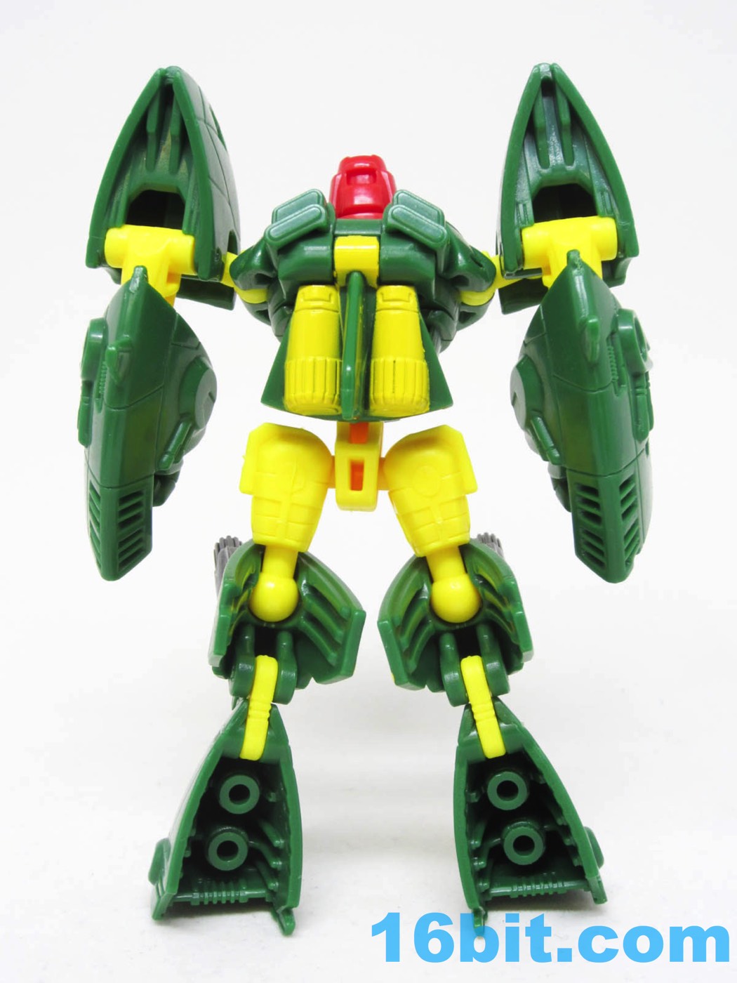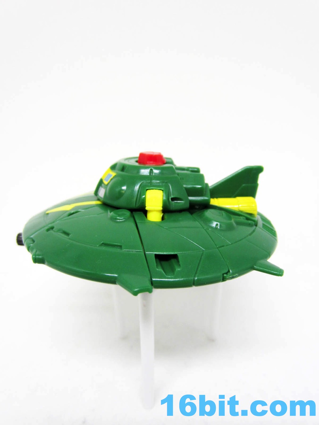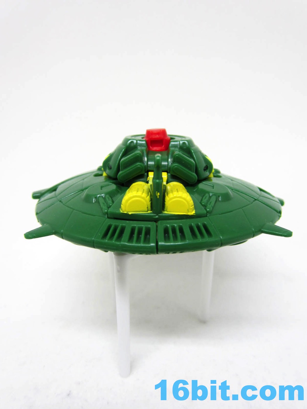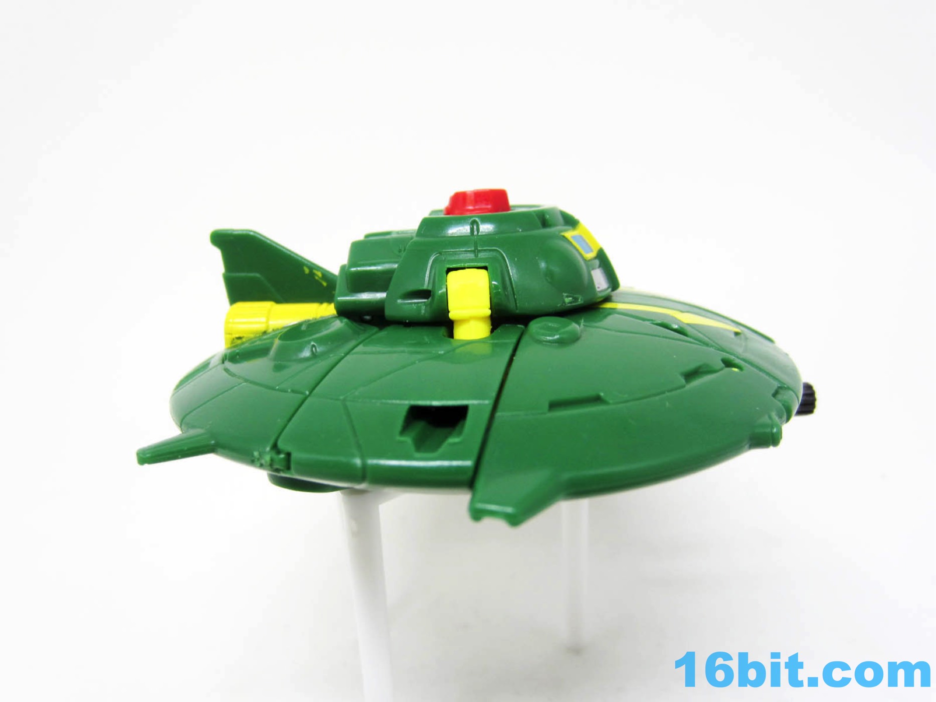The transformation felt a little trickier to get aligned just correctly, but maybe it's just me. I had to fiddle with it to get it to the flying saucer form, which looks a lot like the previous one save for the green color. The only physical difference I could notice was that the head goes up and down a lot easier, which probably would have prevented paint scrapes the last time too.