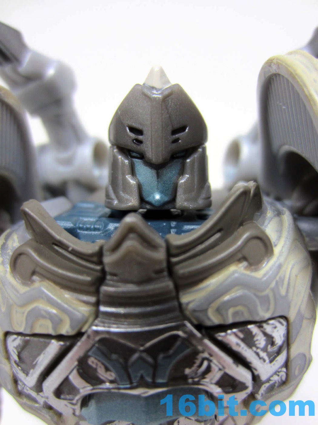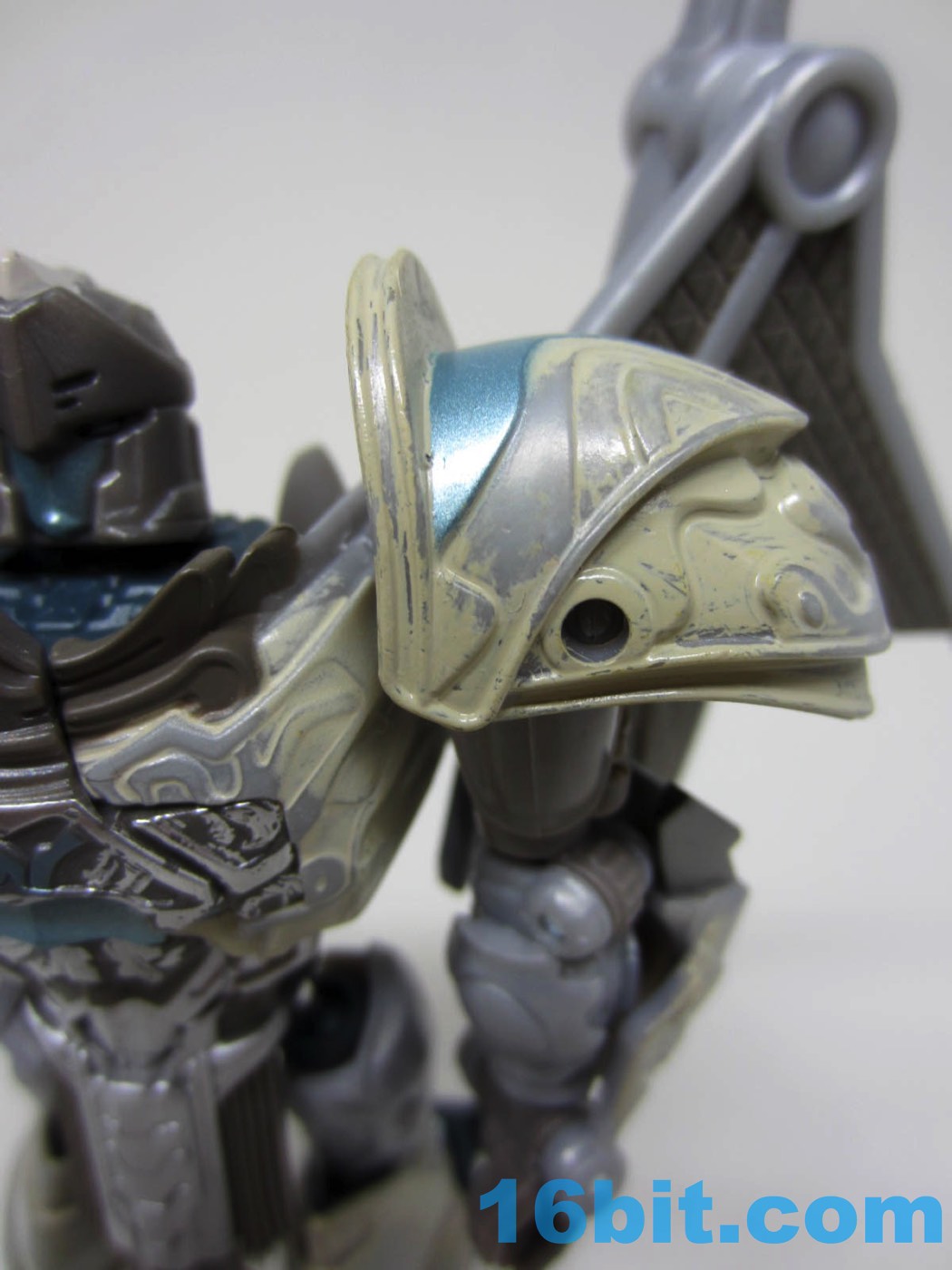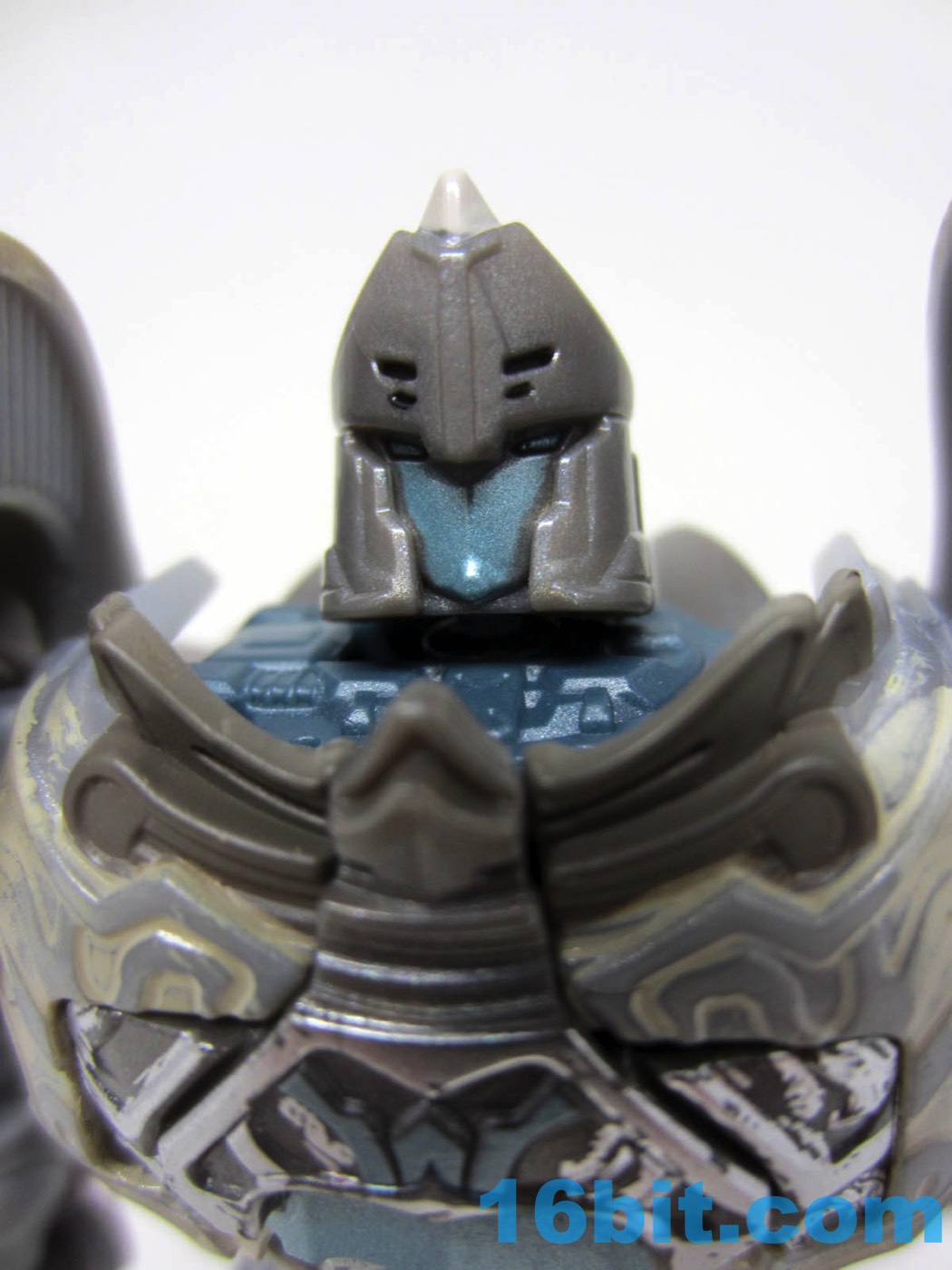 The deco is good, a radical departure from other figures in Transformers. Some nifty swirly plastic was introduced in Beast Hunters, but this time it looks like there was a decision to use paint to replicate the look of an aging, dusty suit of old armor. The deco actually seems to help a lot - the grey plastic underneath looks a little ghosty, so the pigment gives it a look of added value. The toy isn't expensive, but the paint gives it the illusion of costing more. With the price increase, that helps.