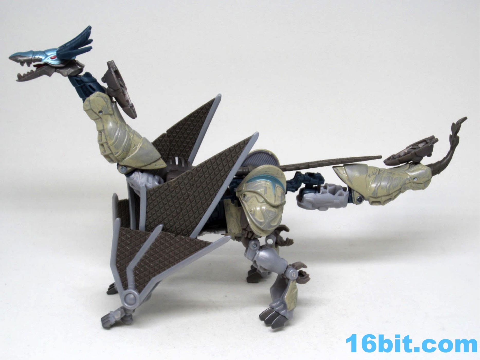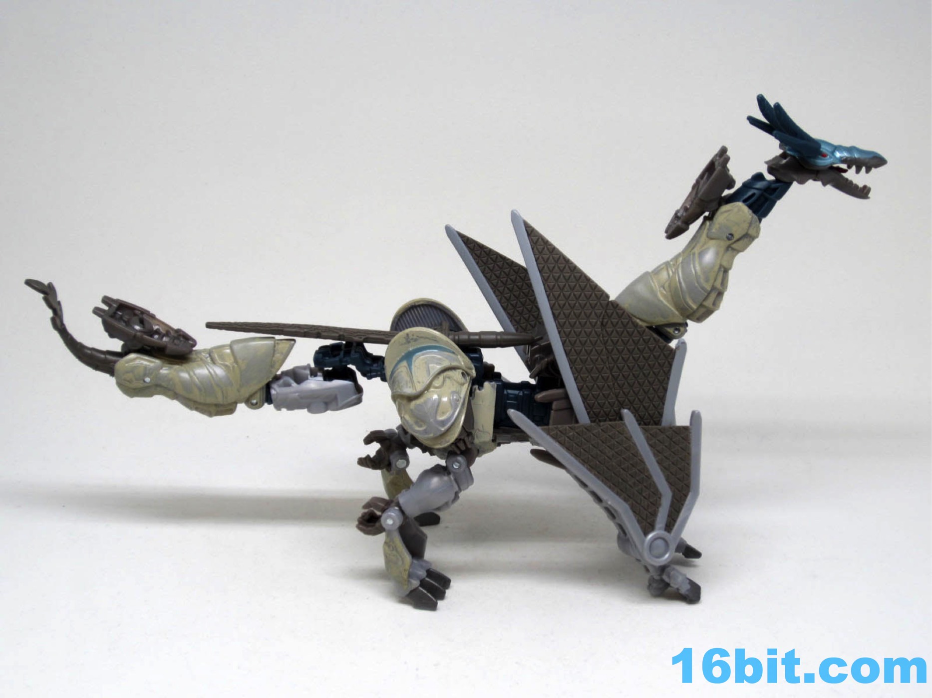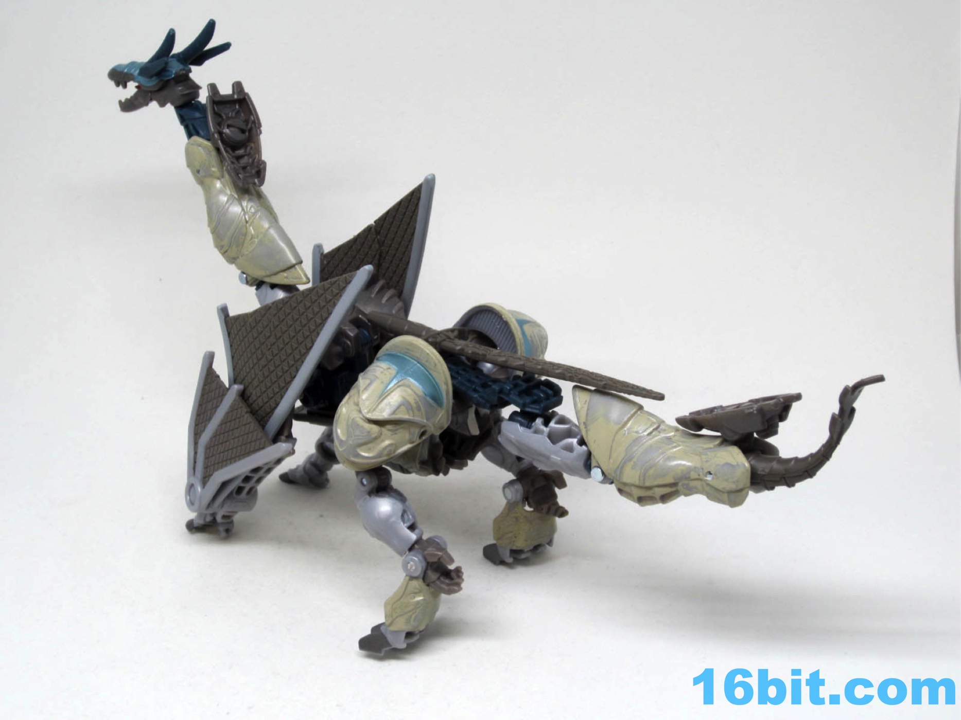 Transformation is weird - you basically have to explode it all over the place and swing things around to get a weird dragon-like creature made out of armored limbs. I would suggest looking at the instructions, but you can probably do without it. The robot feet just hang off the head and tail, so knowing that the kibble should be there is important to getting it together correctly. It's a little irritating, but not one of the worse toys.
