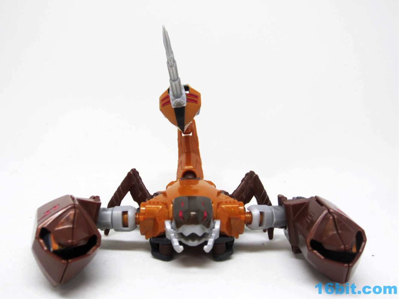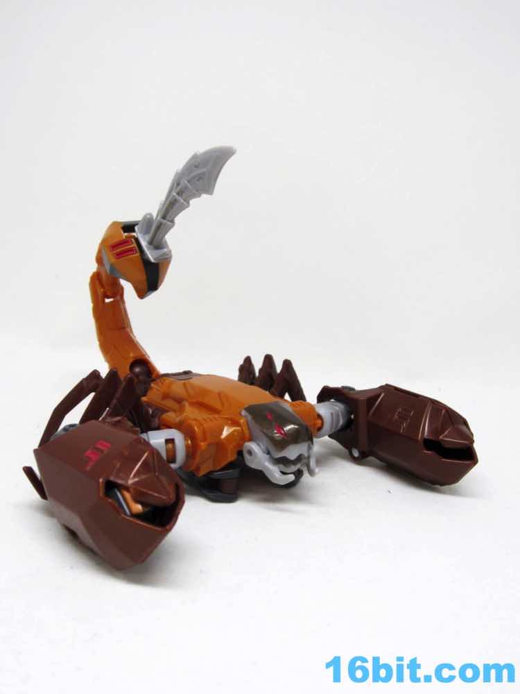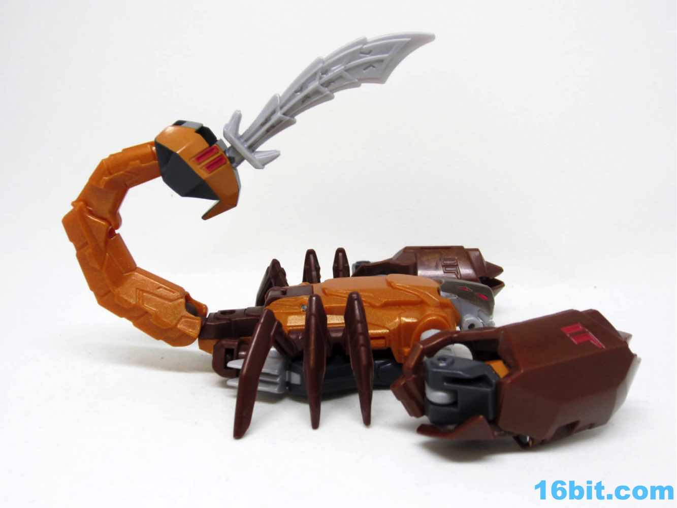 Basically the same size as a deluxe, Scorponok stands about 4-inches tall at the head, with giant shoulders bringing him up to about 6-inches. 17 points of articulation await you, most of which are in the legs. Oh, and there's a jointed tail too - you can move that a bit too. It can be folded up, or used to prop him up if you're worried about him toppling over.