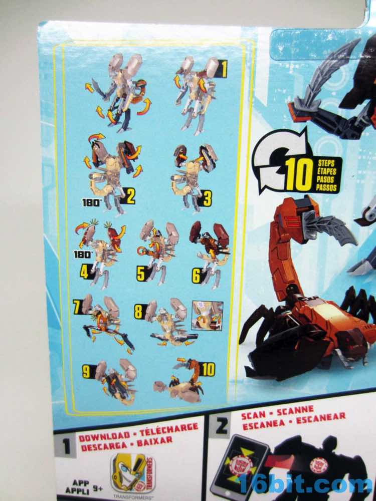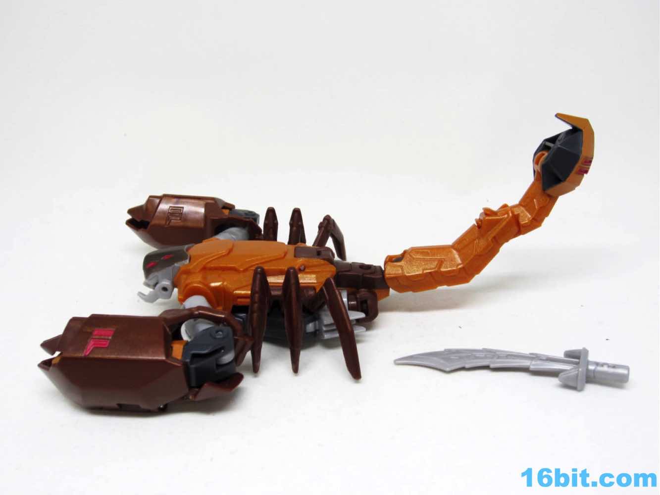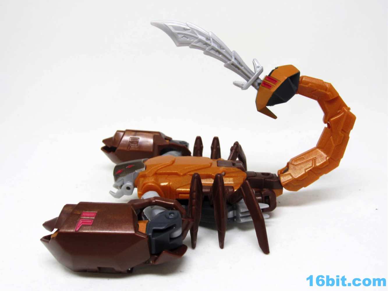 Basically the same size as a deluxe, Scorponok stands about 4-inches tall at the head, with giant shoulders bringing him up to about 6-inches. 17 points of articulation await you, most of which are in the legs. Oh, and there's a jointed tail too - you can move that a bit too. It can be folded up, or used to prop him up if you're worried about him toppling over.