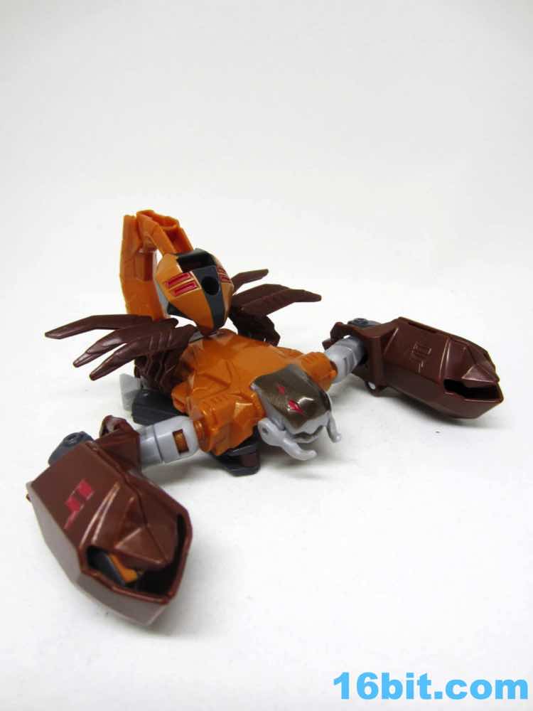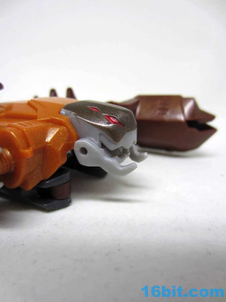 A robotic bug turned out nicely. It doesn't glow under black light like the real thing, but it looks cool - the tail moves, the claws move a bit, but they can't pinch anything. You can plug the sword in to the tail, which is a great idea. It's not as cool as the cobra-headed Quickstrike tail, but it's plenty neat with a good color scheme and a nasty looking head in both modes with lots of eyes to go around. I'm appreciative that the tail and limbs can move around, giving the toy more personality than a scorpion-shaped brick.