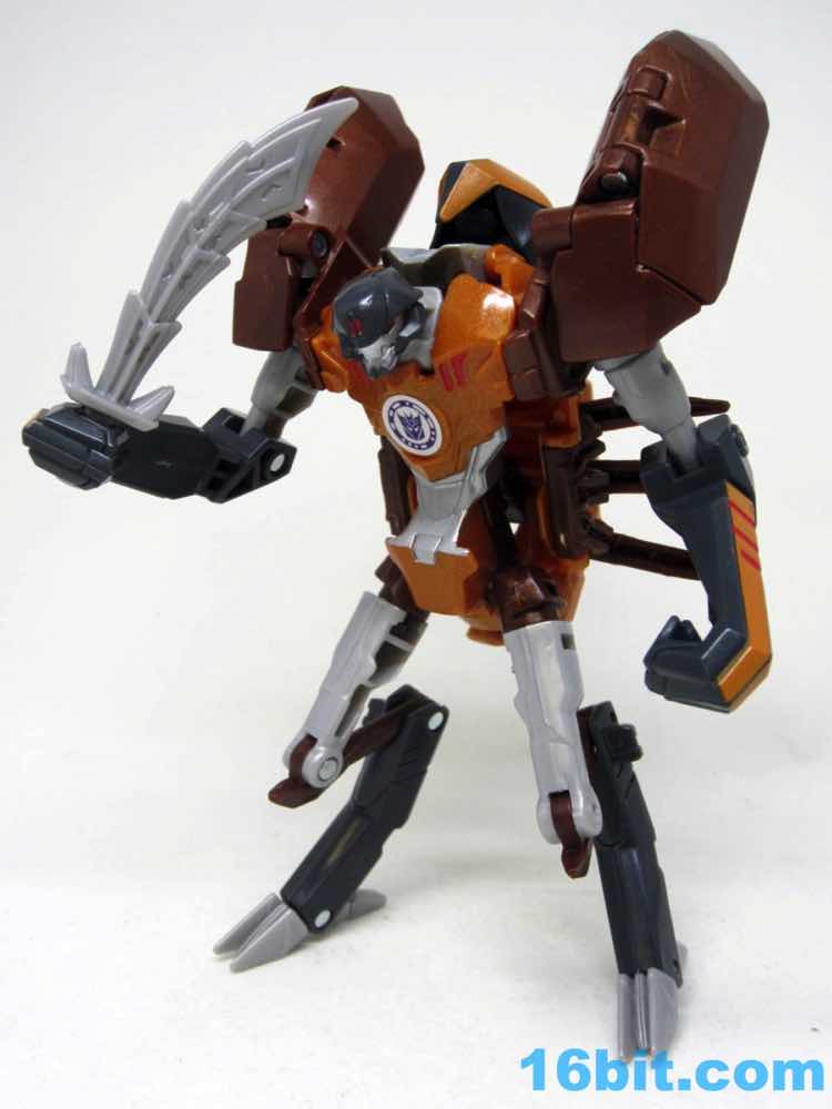 His legs are skinny, so I don't know if you'll be able to consistently get action poses out of this guy. As Decepticons go, he's pretty sharp - I could see him working in other continuities thanks to his more alien, creature-like design. He has no problems holding his nifty sword, or pretty much anything. I had him holding a BMOG Mantax, which is great.