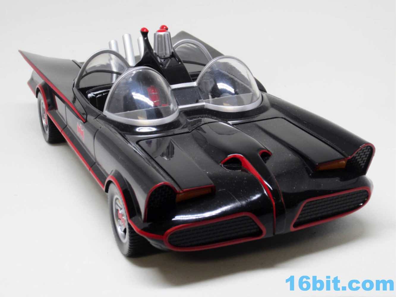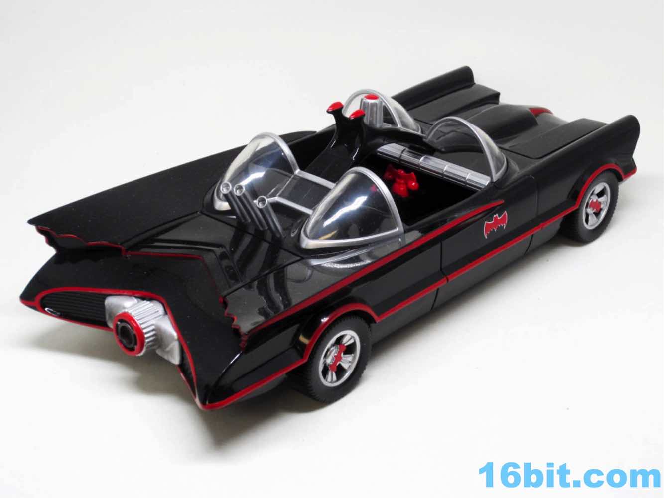 The Batmobile is very much what you see being what you get. It's a toy car with rolling wheels and no special gimmicks. It's gorgeous, shiny black plastic with red striping and silver in all the right places. The whole Barris Kustoms thing has been replicated nicely with the mutant Lincoln Futura turning into a great toy. As a cheap, roughly 1:18 scale car it's just superb. It feels pretty sturdy, and it looks great. I'm sure there's a missing detail or two, but compared to other Batmobiles I've bought I find it satisfying for the asking price.
