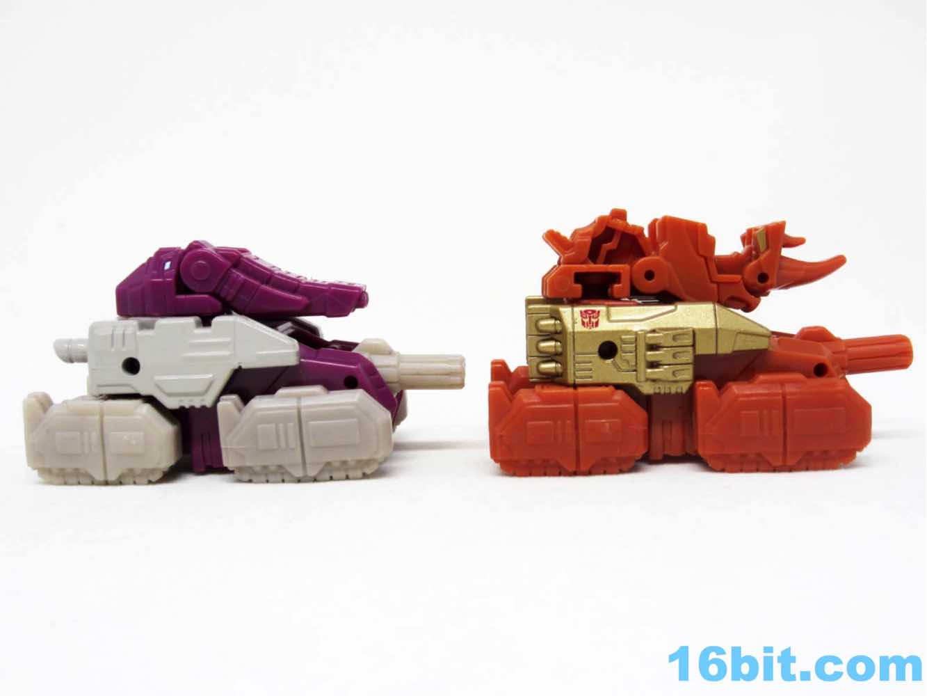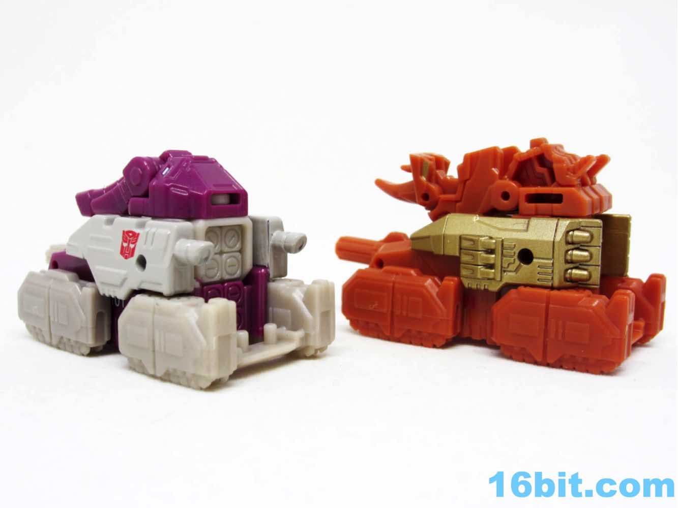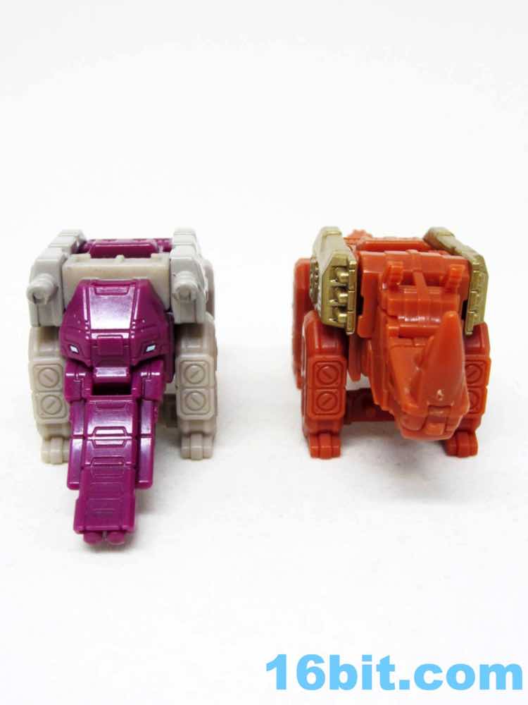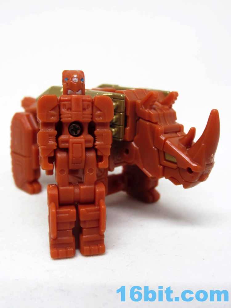 This 1.5-inch robot is actually the very best one of these. I can say that without hyperbole - Hasbro did a great job here. The robot actually has a different head sculpt from Shuffler, with rhino-like details and painted eyes, nose horn, and chin. It's all one color other than that, so it wouldn't surprise me if Hasbro opted for paint out of necessity simply because it would look too plain otherwise. As is, it's pretty fantastic - it has the same articulation you know, love, and/or tolerate. I also found out mine has backwards thighs - it doesn't hurt how the toy plays, and I think I just got lucky. I still love it.
