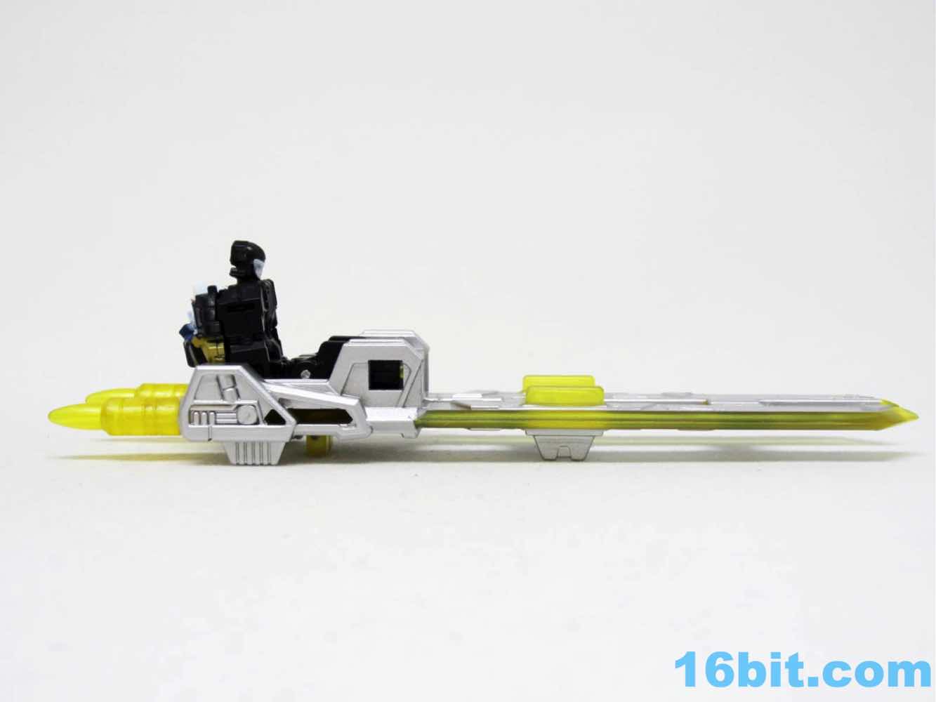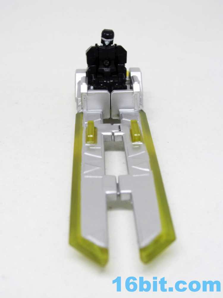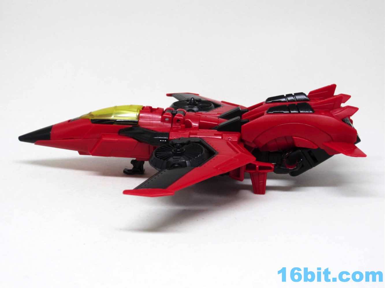 The jet mode is fun, and has a few moving parts. The fans are jointed, but they don't spin. There's a small hole behind the cockpit that looks like an X-Wing's astromech droid socket, but is actually for 5mm weapons to be mounted - fun! Small pegs on the back allow for tiny Titan Master robots to stand safely during flight. And of course, there's a landing skid under the opening cockpit for Scorchfire. Because Hasbro isn't completely sadistic, you also get on-wing storage for her two yellow and silver swords. Since you can actually do a lot of things with the jet, I can say I feel more impressed with it than some other toys. There aren't launching rockets or rear landing gear, but it still does a lot. Heck, it even retains the legs-as-the-back-of-the-jet gimmick as the other toys. I guess you can't win them all, but at least the detail is good and the angled wings look cool.