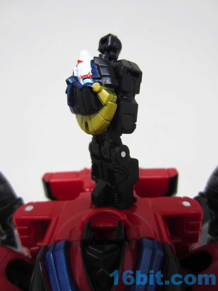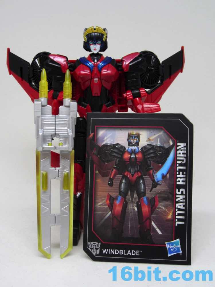 Hasbro loves Windblade. The first fan-built bot, this Transformers mold for Titans Return gives Windblade a mostly new body - she shares some parts with Highbrow/Scourge, but is mostly her own bot. In the USA alone, I can count at least 5 other Windblade figures in roughly this size with varying levels of complexity since the first one in 2014. They're all good for different reasons - the original mold is pretty complex and has a removable hair fan hat, plus was redecorated for Comic-Con two years ago. The second one was greatly simplified and sold in three flavors. This new one has two totally new swords that don't look like her usual weapons, but gains the Headmaster gimmick. It mostly works.