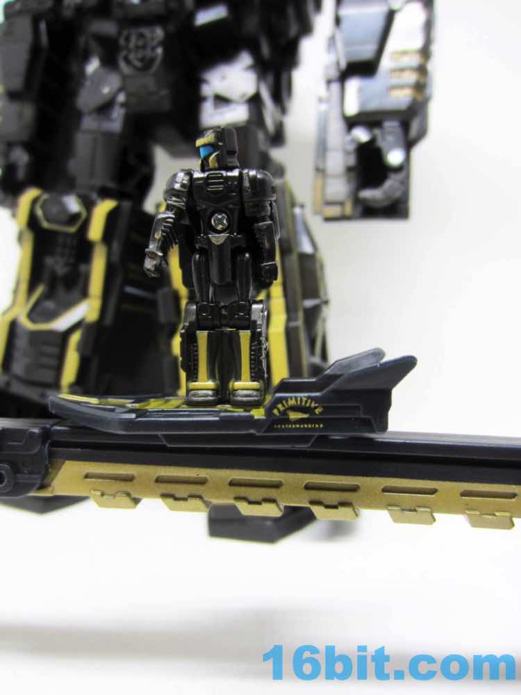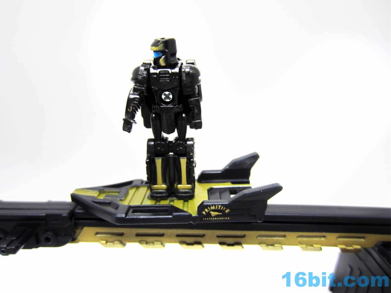 You can make it a battle station if you wish, but the new pieces can serve multiple purposes - you can plug them in the battle station mode, or make a ramp, or make them a big giant blaster. The plastic is softer than the other pieces, presumably for safety or manufacturing costs reasons, but they match nicely and look just as slick as everything else. The silver weapons seem to be molded in a very hard silver plastic, so be careful with these over time. The board itself clips on the rail, which is nice for posing and stunt purposes.