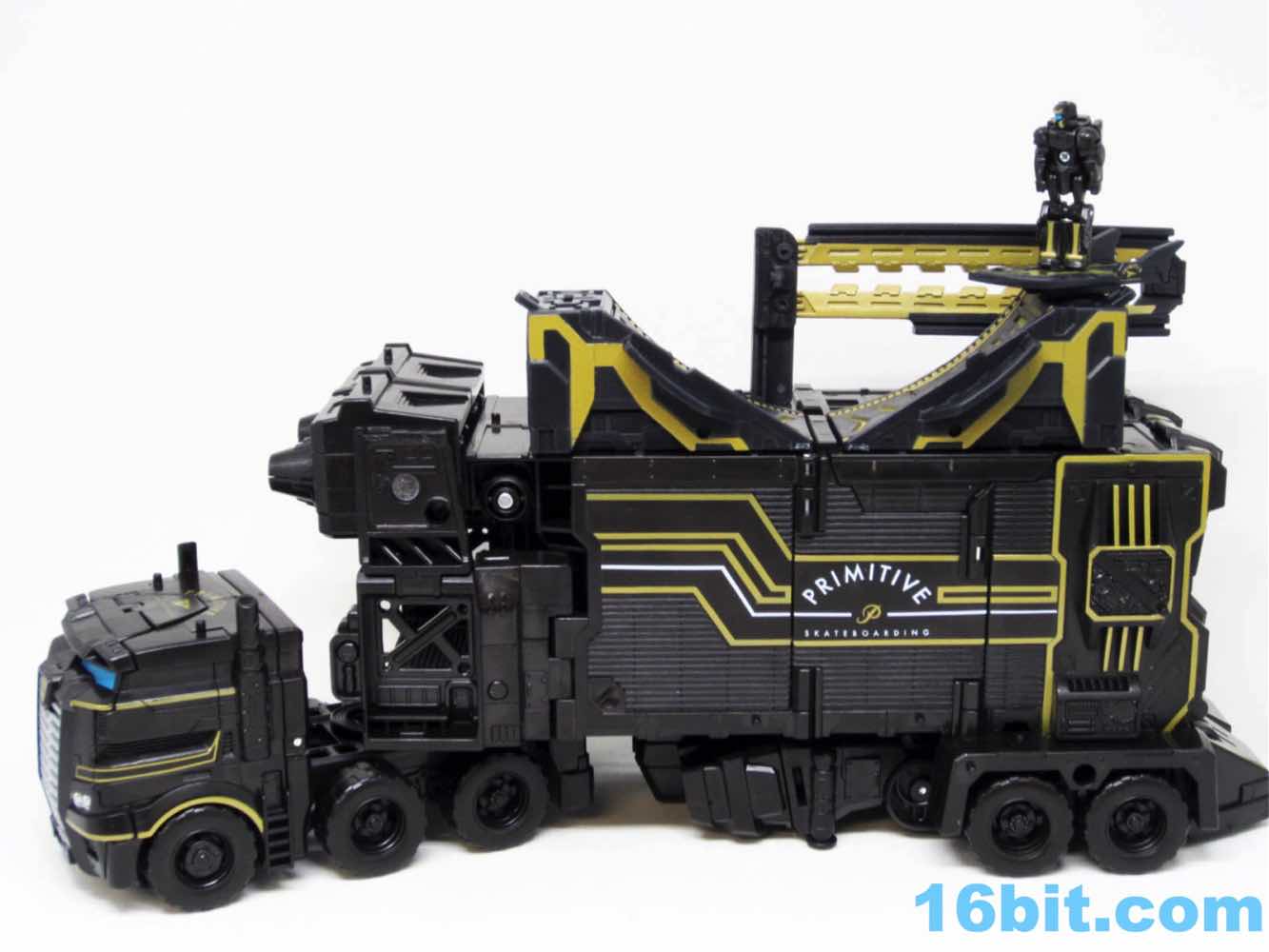 On almost every level, this is the perfect convention exclusive because it's cool, but not something you may miss had you not known it existed. It's not like Optimus has appeared in these colors on TV or in an ad, and the bonus accessories aren't a part of the lore. This makes it a unique addition and a welcome take on a character that has had his share of black repaints over the years. The silver and gold striping are really nice additions that highlight a mold we've seen a few times already, giving it a retro quality that recalls other, older decades. Functionally it's just as good as the previous toys, but now the base mode is a skate park.