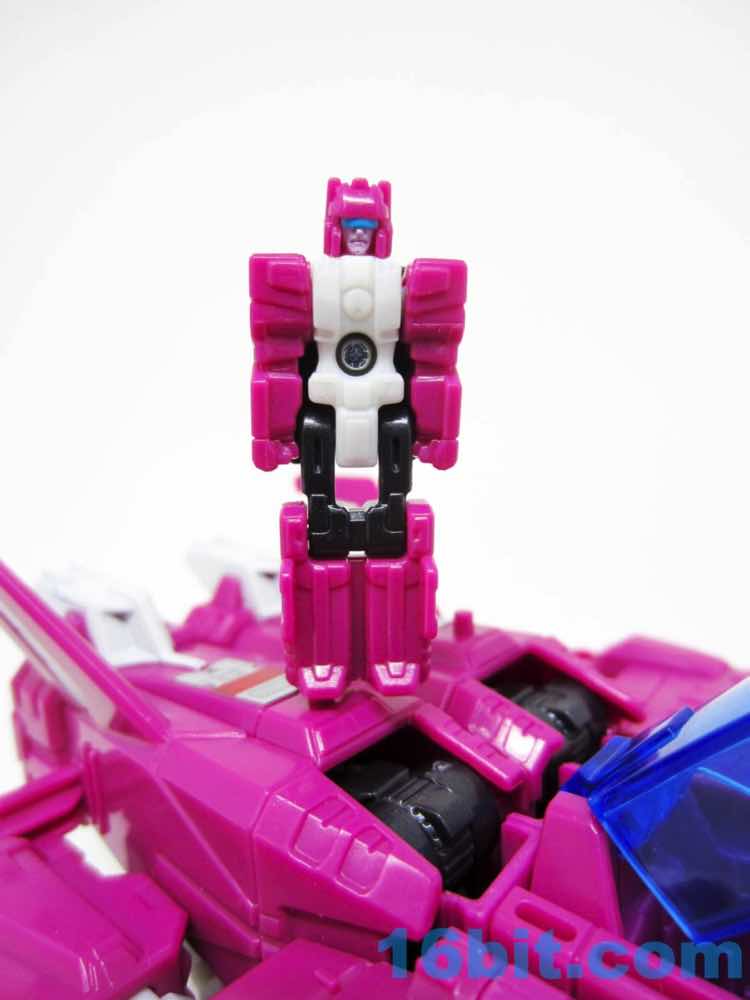 The tiny head robot is a lot like Blowpipe - 1.5-inches tall, same mold, but Aimless has a painted face and visor. A little paint goes a long way, and this 5-jointed figure fits nicely in the spacecraft's cockpit. The sculpting is pretty good and this form factor, it turns out, will continue in Power of the Primes - if you like it you'll get more. I like the face plate on the back, but I'm a sucker for a big, bright visor across a face.