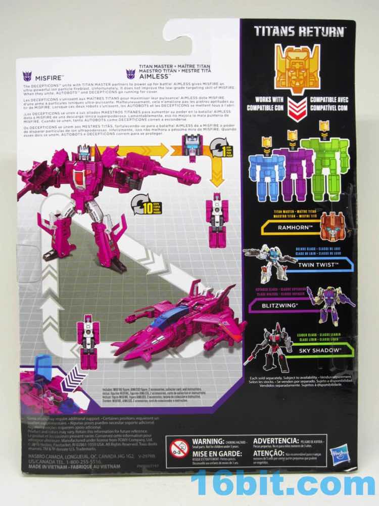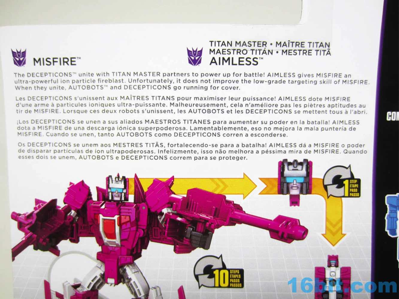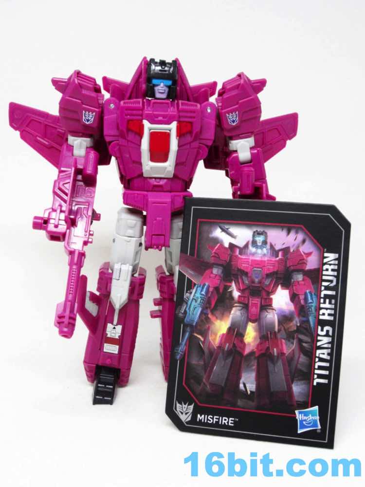 As a buddy of mine said, Titans ReturnMisfire is so good you'll hate the stickers on your other toys. The coloring is great, the deco does a nice job matching the original toy with a blue visor and a purple face - he's generally grey faced and red visored in the media (and Takara-Tomy's version of this toy.) The Japanese version also has a Targetmaster buddy, which this one does not. I still love it.