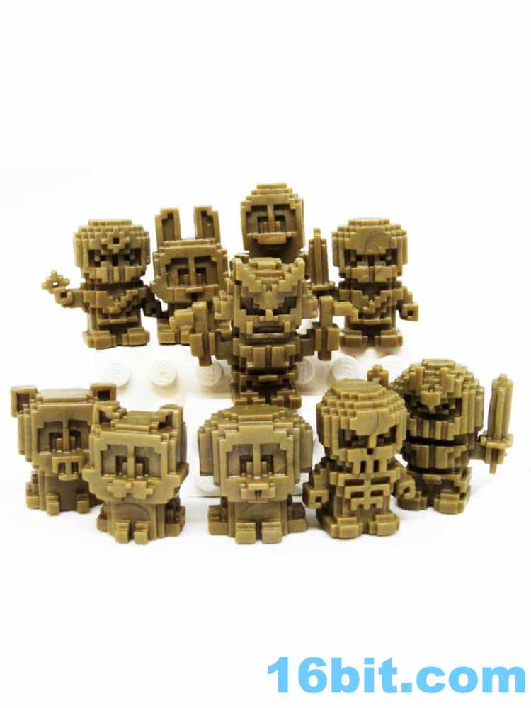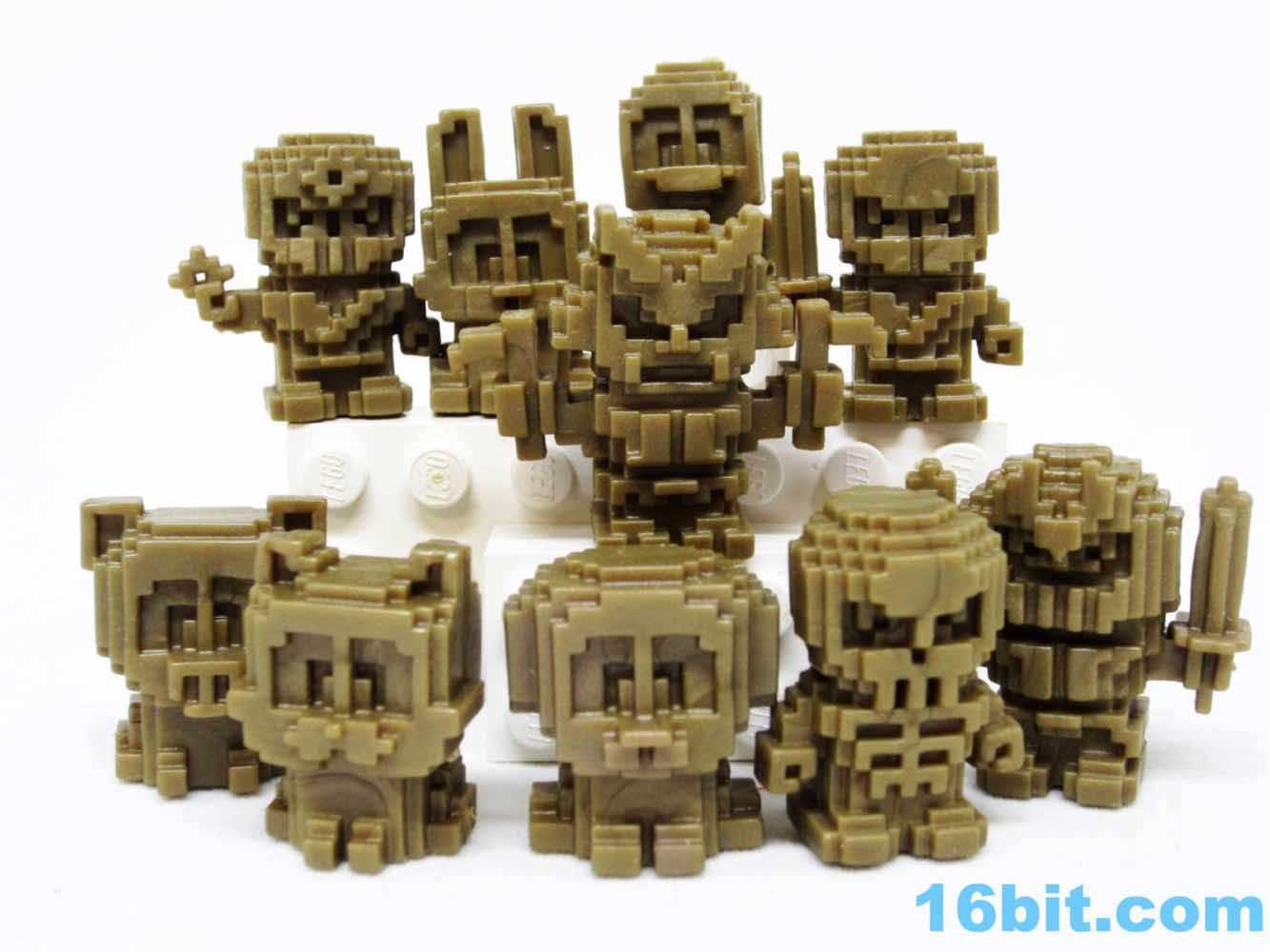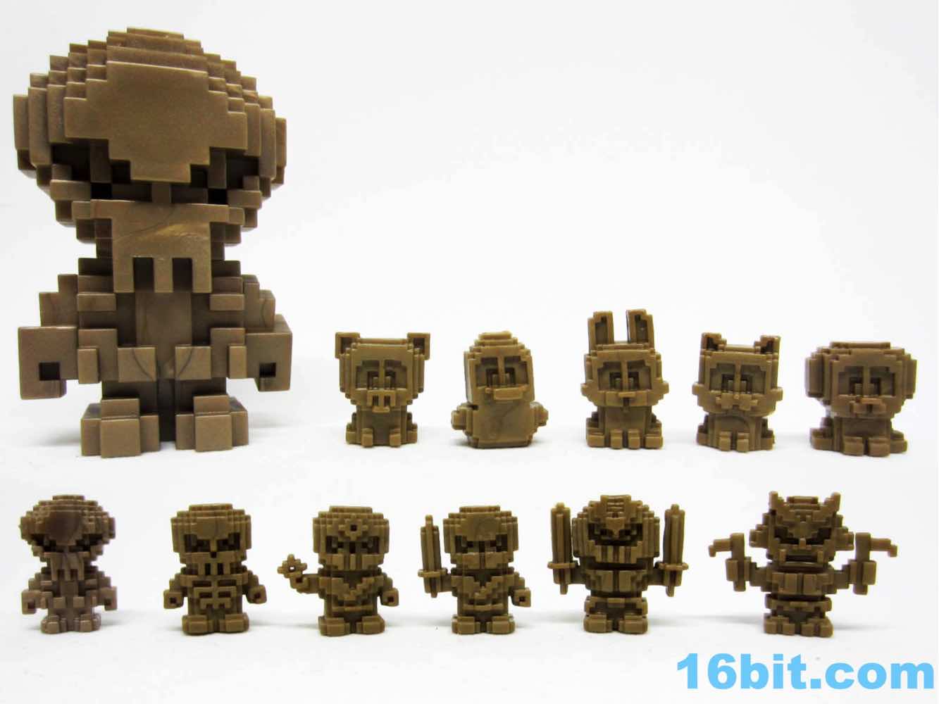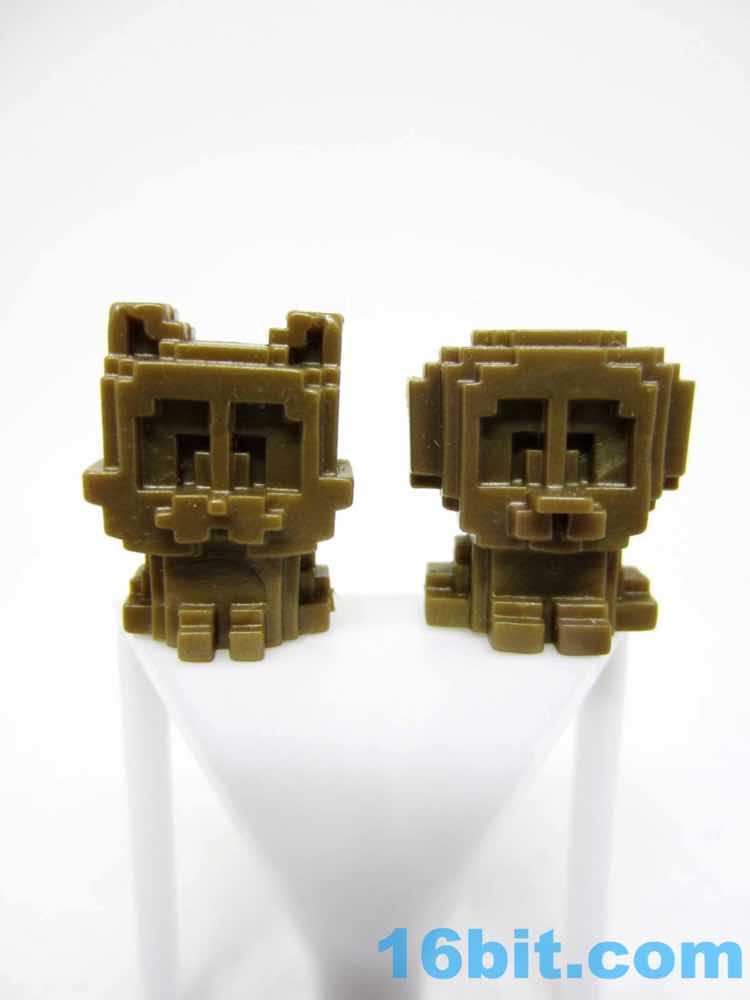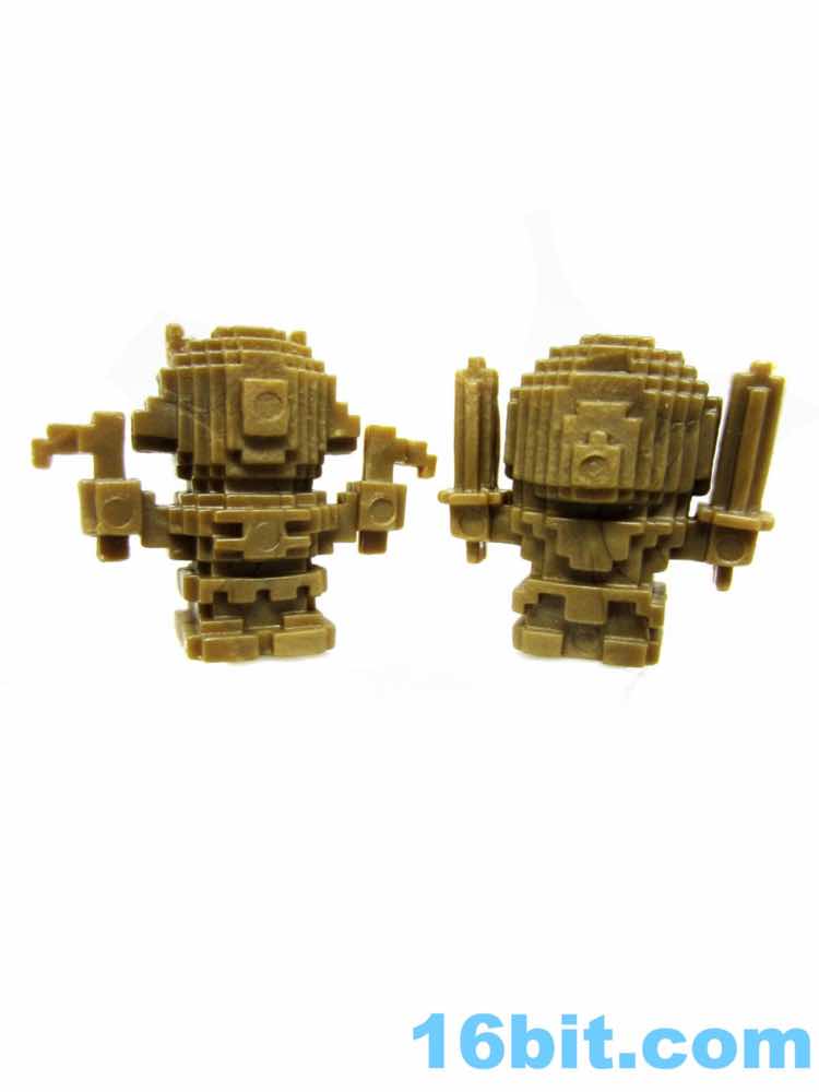 Onell Design, Culture Pirates, and SSM Vending created something that should be historically significant to future toy dorks, because you can look at these and see where all the wheels were spinning to create a toy line that's inspired. And you can see the inspiration. The pixel figure designs are very similar to the marketing graphics on the Onell Design blog. Vending machine toys love little plastic ninjas and animals - you can see them in the big red machines across the USA. Minecraft was and still is pretty big - and those figures are expensive at $3-$5 for a tiny piece of plastic. Onell Design worked with the Four Horsemen to create The Outer Space Men, one of the first and most famous "plays-with" lines. So here, these people got together to make a Minecraft-compatible series of toys at a fraction of the price that has the potential to appeal to non-players of the game like me. I'm not going to buy a Creeper for four bucks, but I'll throw some quarters in a machine for skeletons, ninjas, sea life, or a small pig. Thankfully for this set, I didn't have to - I just got one of each for ten bucks.